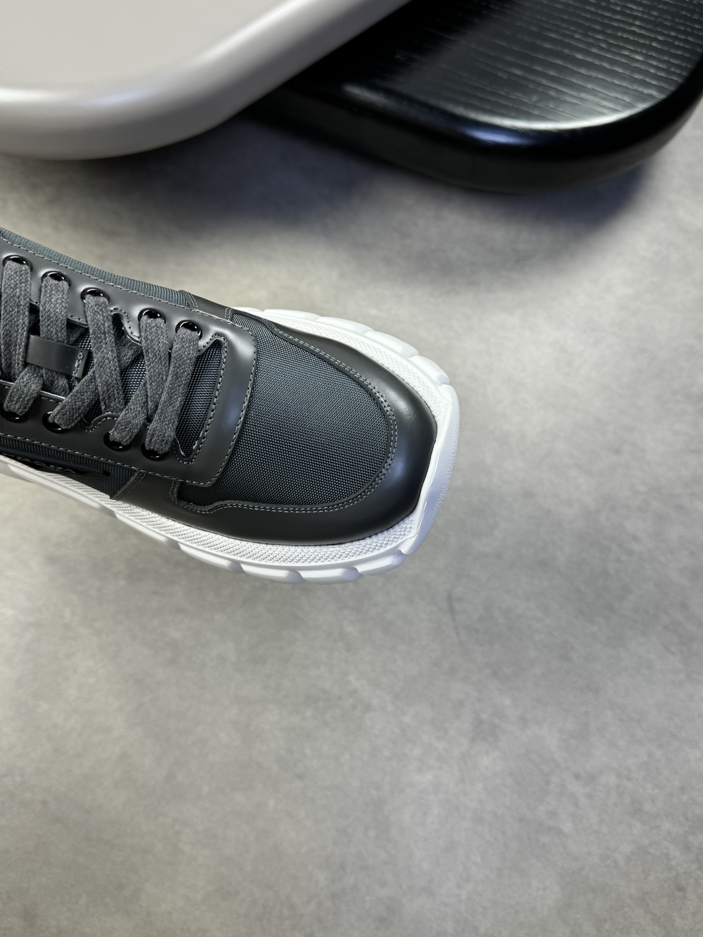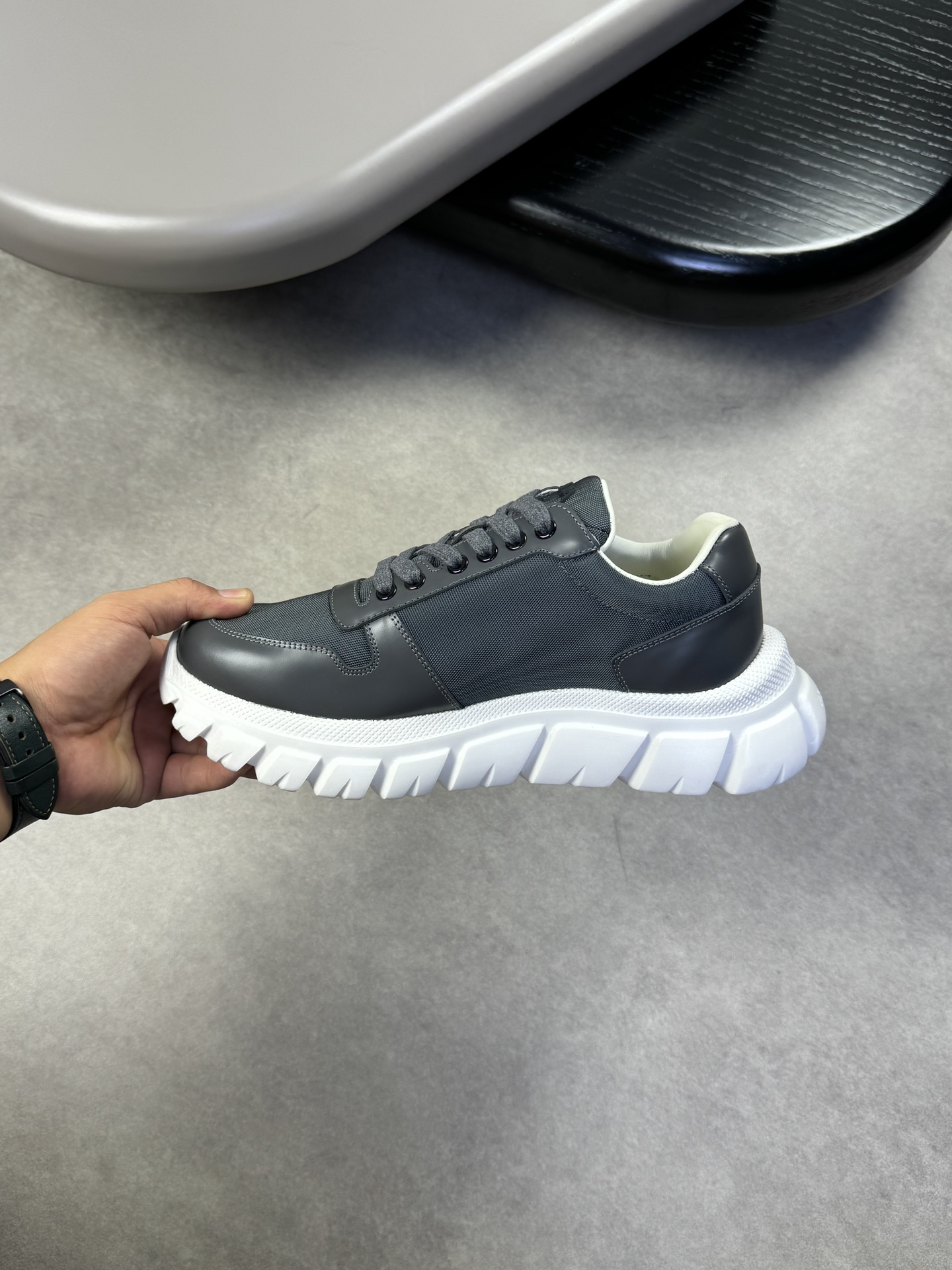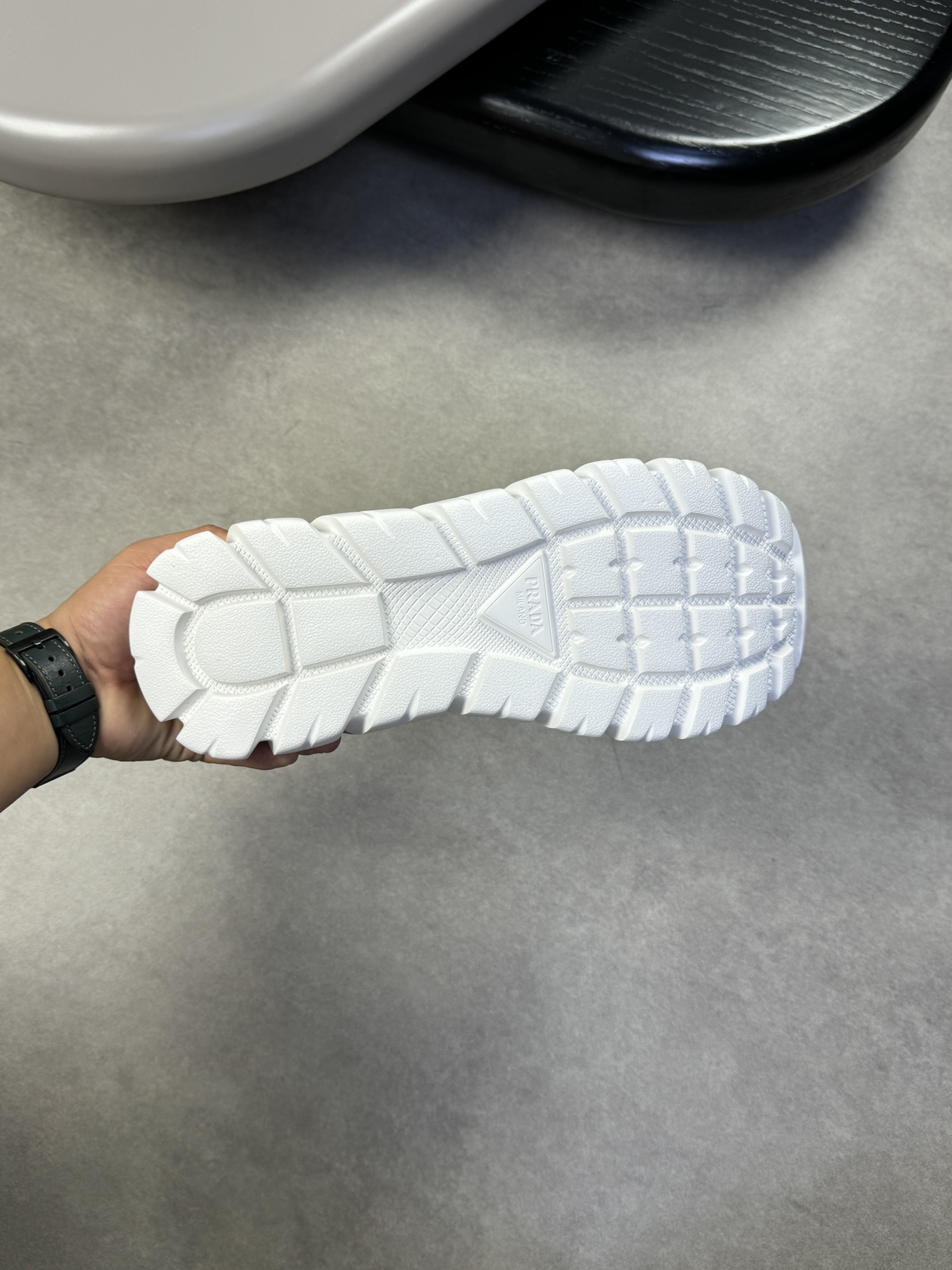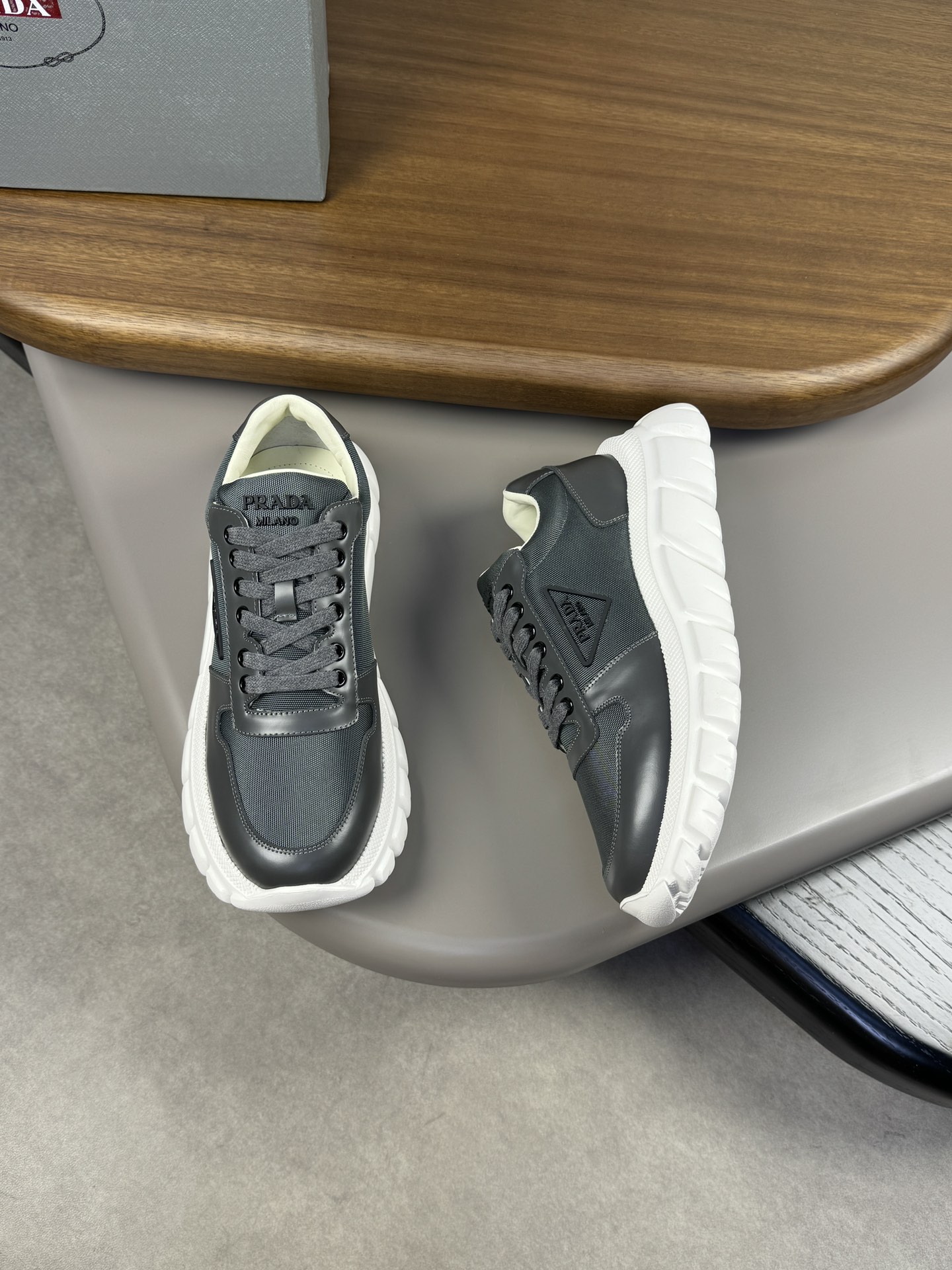 这款鞋子是AAAAA 1:1 质量 (非常棒). 使用了和原版一模一样的材料. 商标部分也保持了和普拉达/Prada一样. 图片拍摄是实物鞋子拍摄, 您所收到的实物保证和我们图片一模一样.