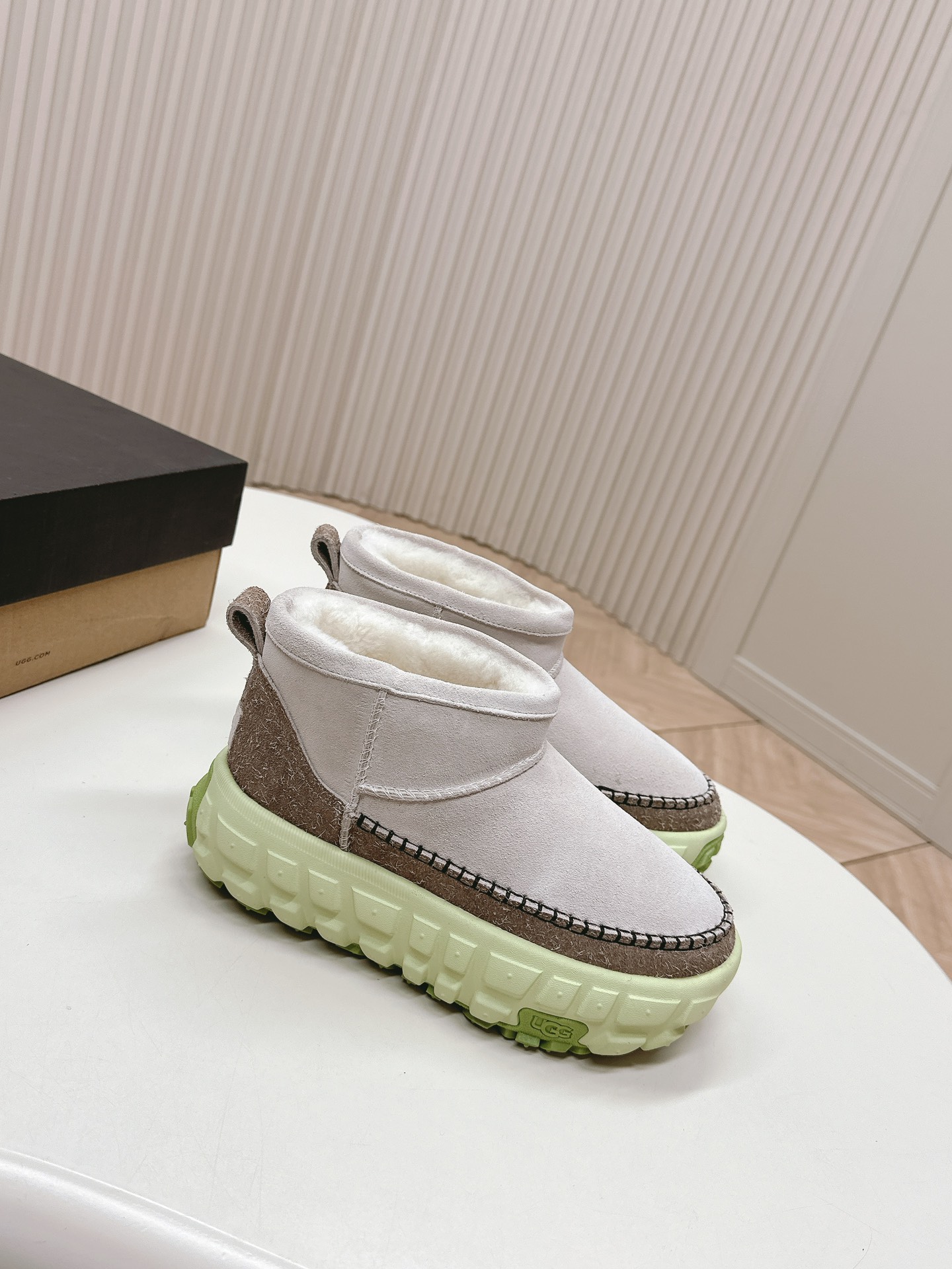 这款鞋子是AAAAA 1:1 质量 (非常棒). 使用了和原版一模一样的材料. 商标部分也保持了和UGG雪地靴一样. 图片拍摄是实物鞋子拍摄, 您所收到的实物保证和我们图片一模一样.