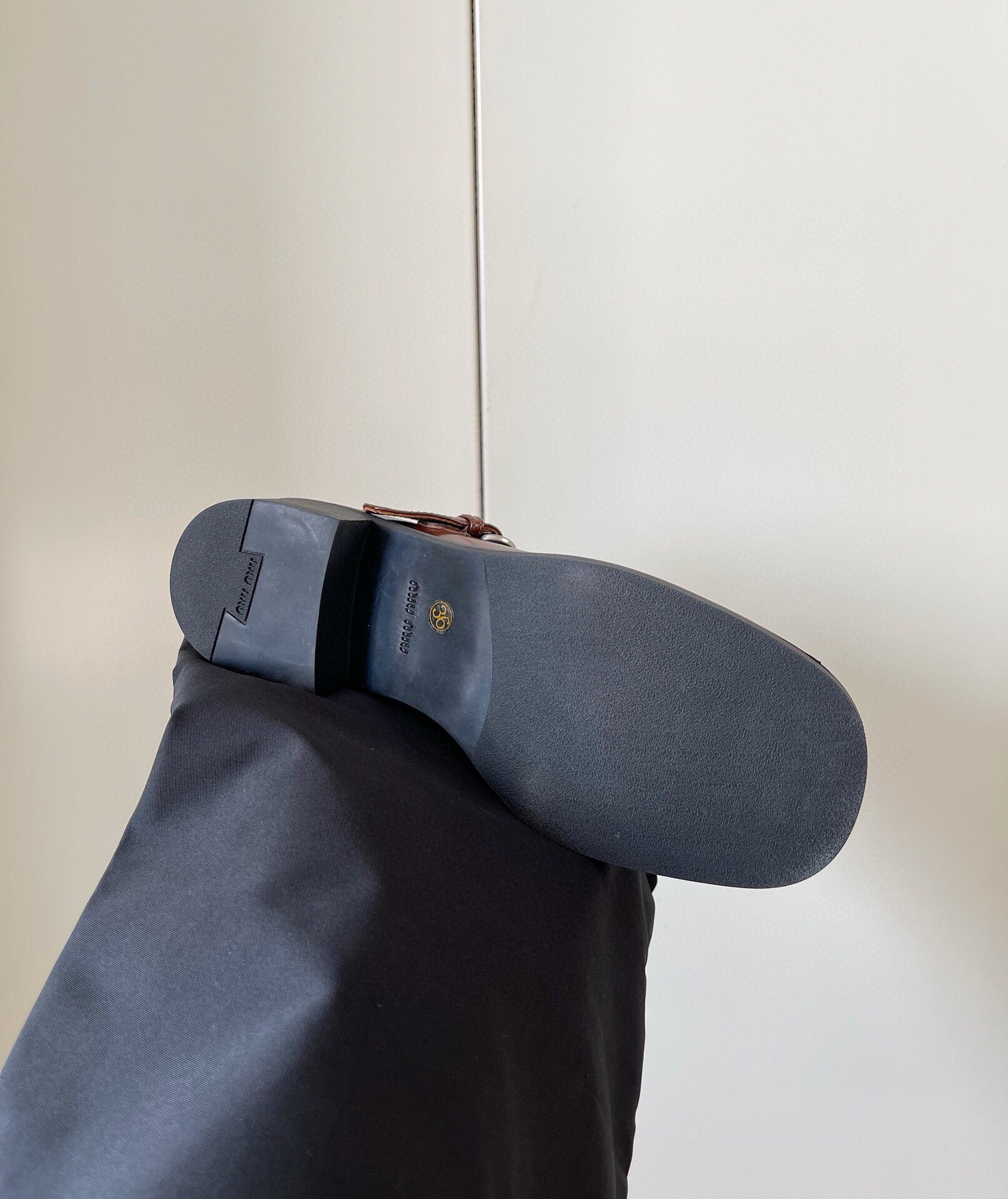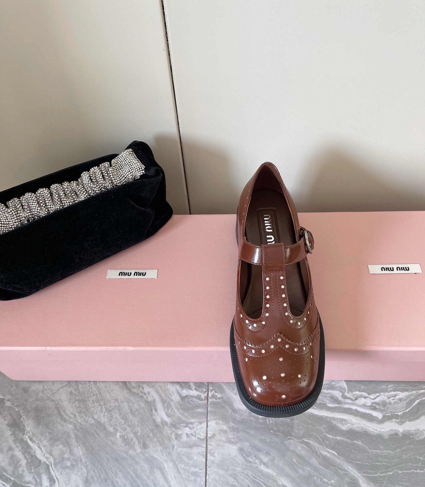 这款鞋子是AAAAA 1:1 质量 (非常棒). 使用了和原版一模一样的材料. 商标部分也保持了和缪缪/Miu Miu一样. 图片拍摄是实物鞋子拍摄, 您所收到的实物保证和我们图片一模一样.