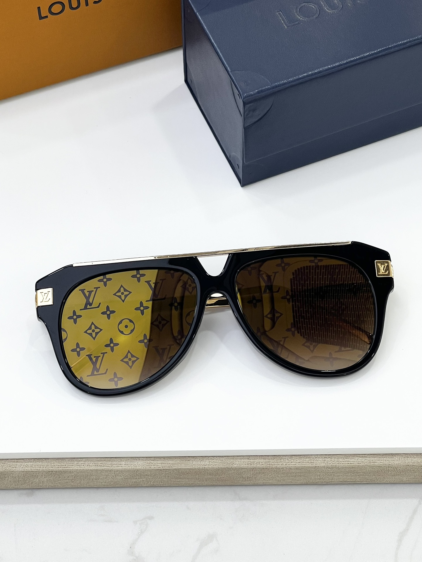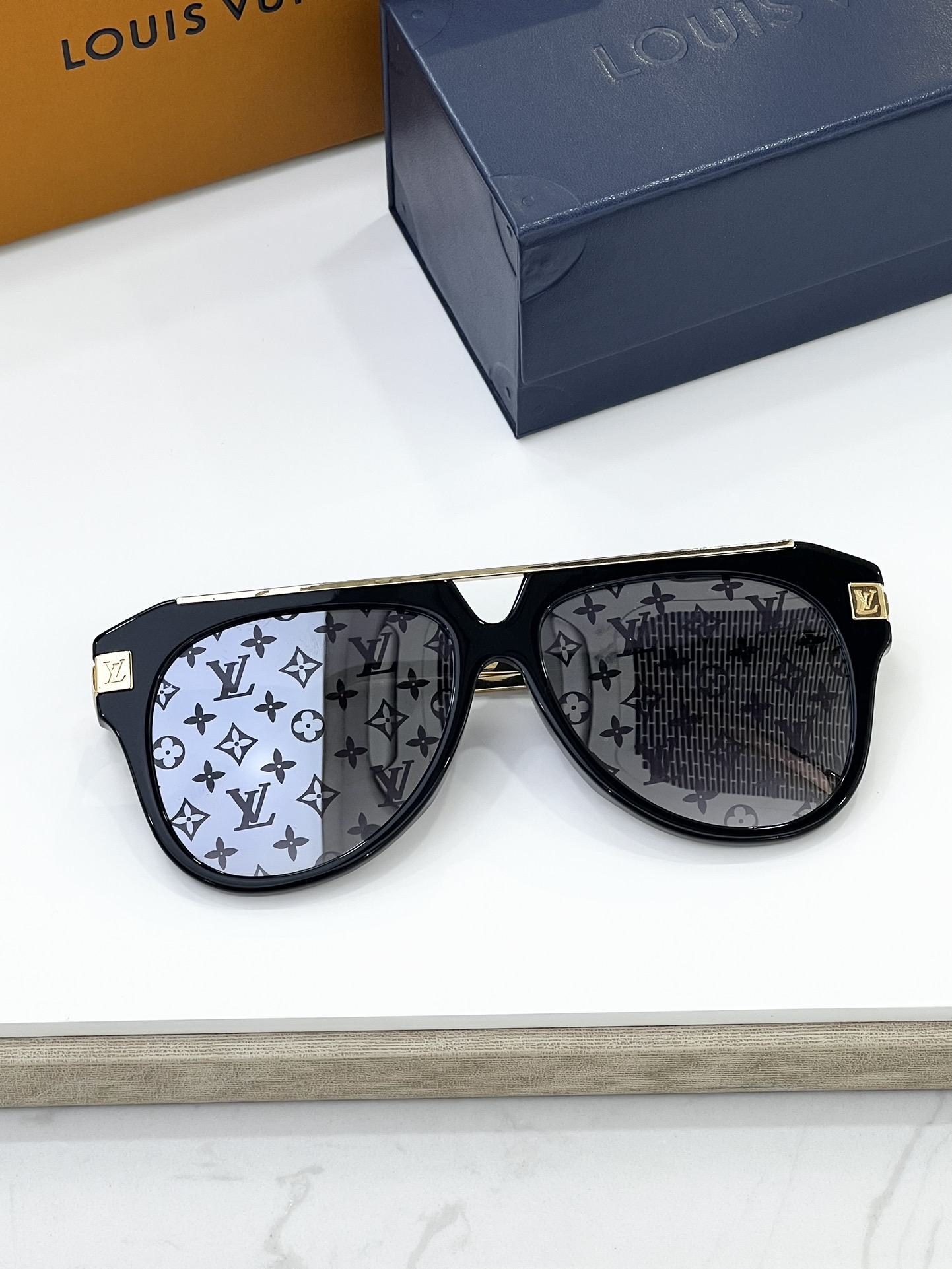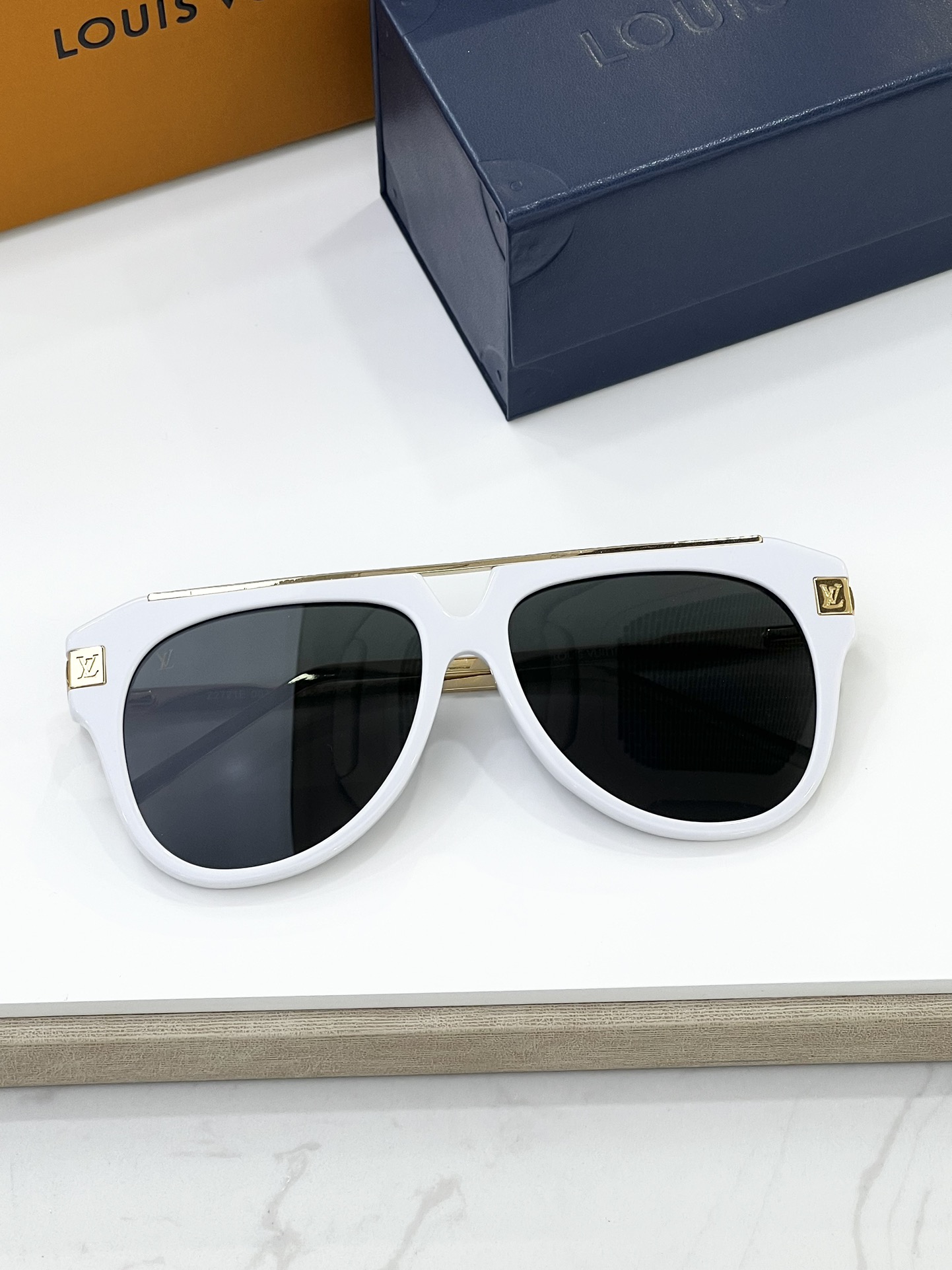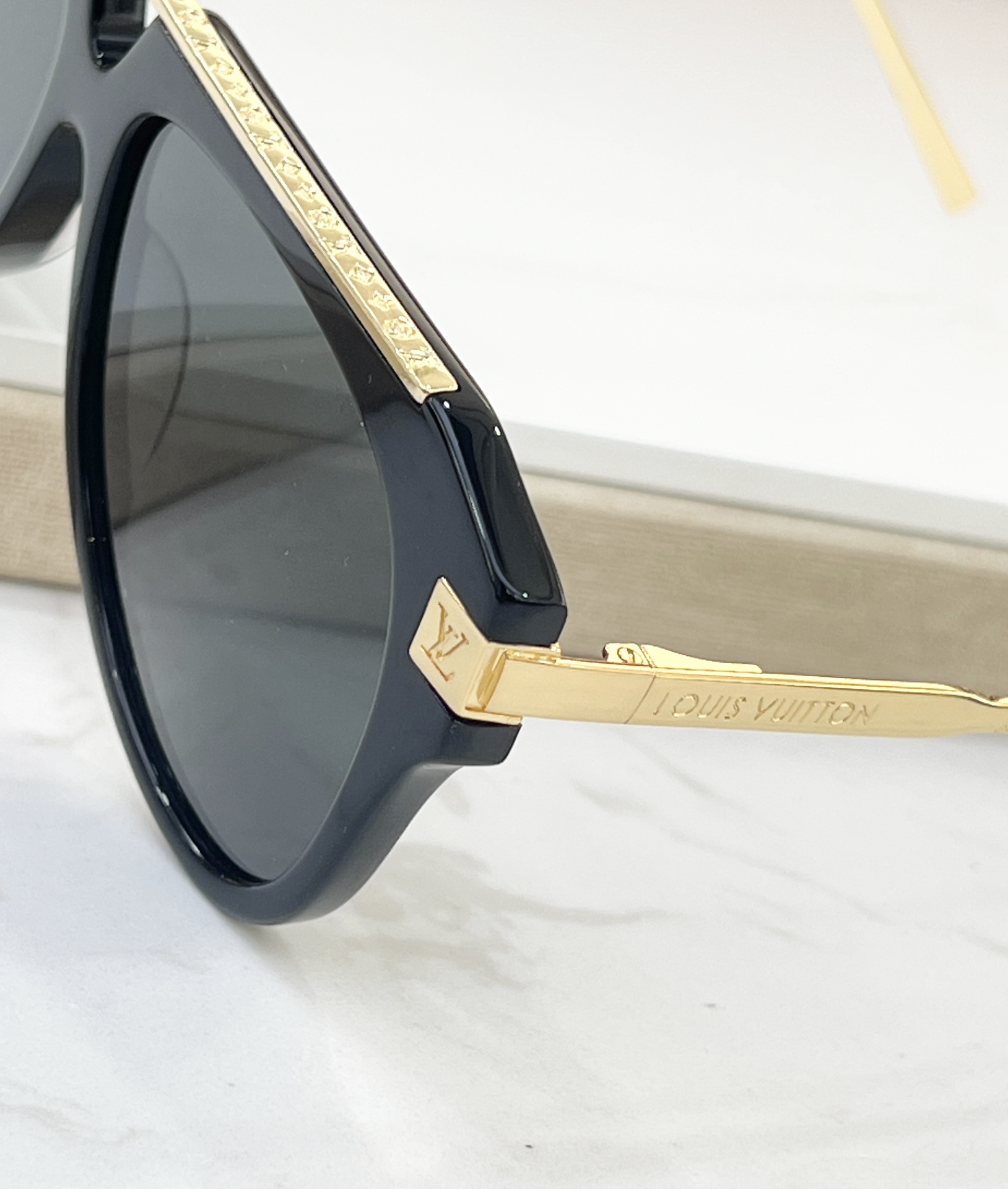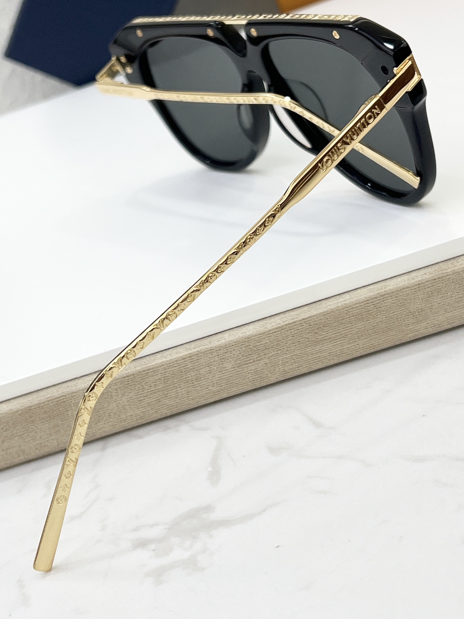 这款太阳眼镜是AAAAA 1:1 质量 (非常棒). 使用了和原版一模一样的材料. 商标部分也保持了和路易威登/Louis Vuitton一样. 图片拍摄是实物太阳眼镜拍摄, 您所收到的实物保证和我们图片一模一样.