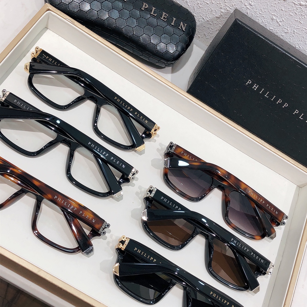 这款太阳眼镜是AAAAA 1:1 质量 (非常棒). 使用了和原版一模一样的材料. 商标部分也保持了和菲利普·普林/Philipp Plein一样. 图片拍摄是实物太阳眼镜拍摄, 您所收到的实物保证和我们图片一模一样.