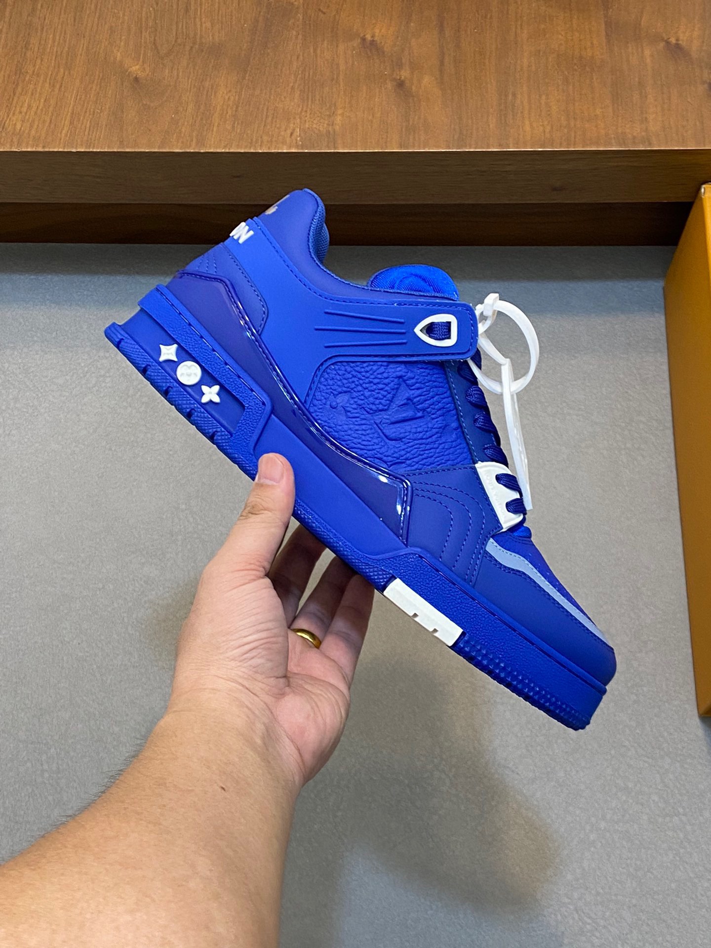 这款鞋子是AAAAA 1:1 质量 (非常棒). 使用了和原版一模一样的材料. 商标部分也保持了和路易威登/Louis Vuitton一样. 图片拍摄是实物鞋子拍摄, 您所收到的实物保证和我们图片一模一样.