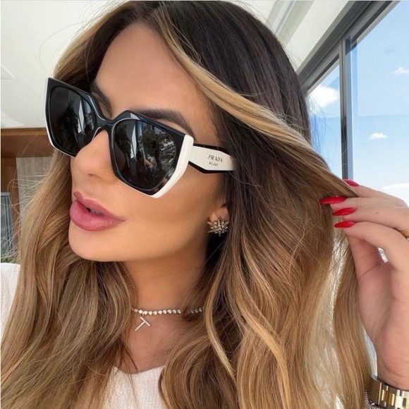 这款太阳眼镜是AAAAA 1:1 质量 (非常棒). 使用了和原版一模一样的材料. 商标部分也保持了和普拉达/Prada一样. 图片拍摄是实物太阳眼镜拍摄, 您所收到的实物保证和我们图片一模一样.