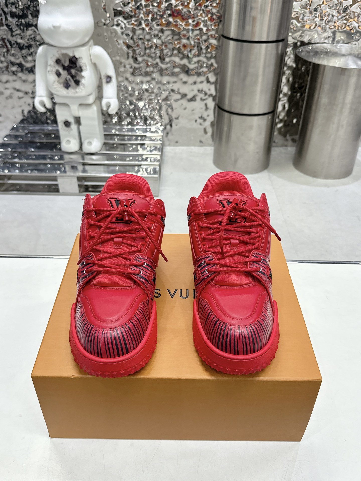 这款鞋子是AAAAA 1:1 质量 (非常棒). 使用了和原版一模一样的材料. 商标部分也保持了和路易威登/Louis Vuitton一样. 图片拍摄是实物鞋子拍摄, 您所收到的实物保证和我们图片一模一样.