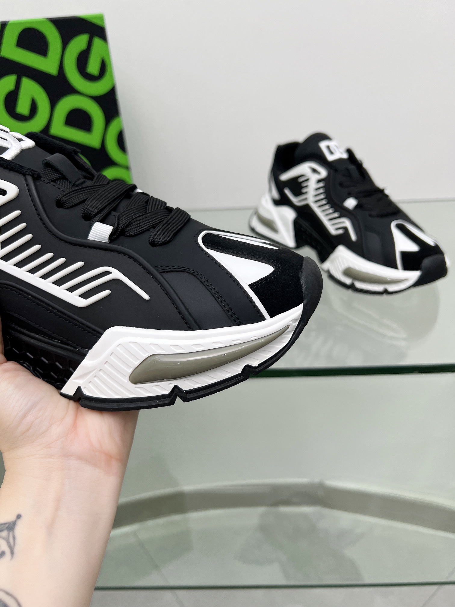 这款鞋子是AAAAA 1:1 质量 (非常棒). 使用了和原版一模一样的材料. 商标部分也保持了和杜嘉班纳/Dolce&Gabbana一样. 图片拍摄是实物鞋子拍摄, 您所收到的实物保证和我们图片一模一样.
