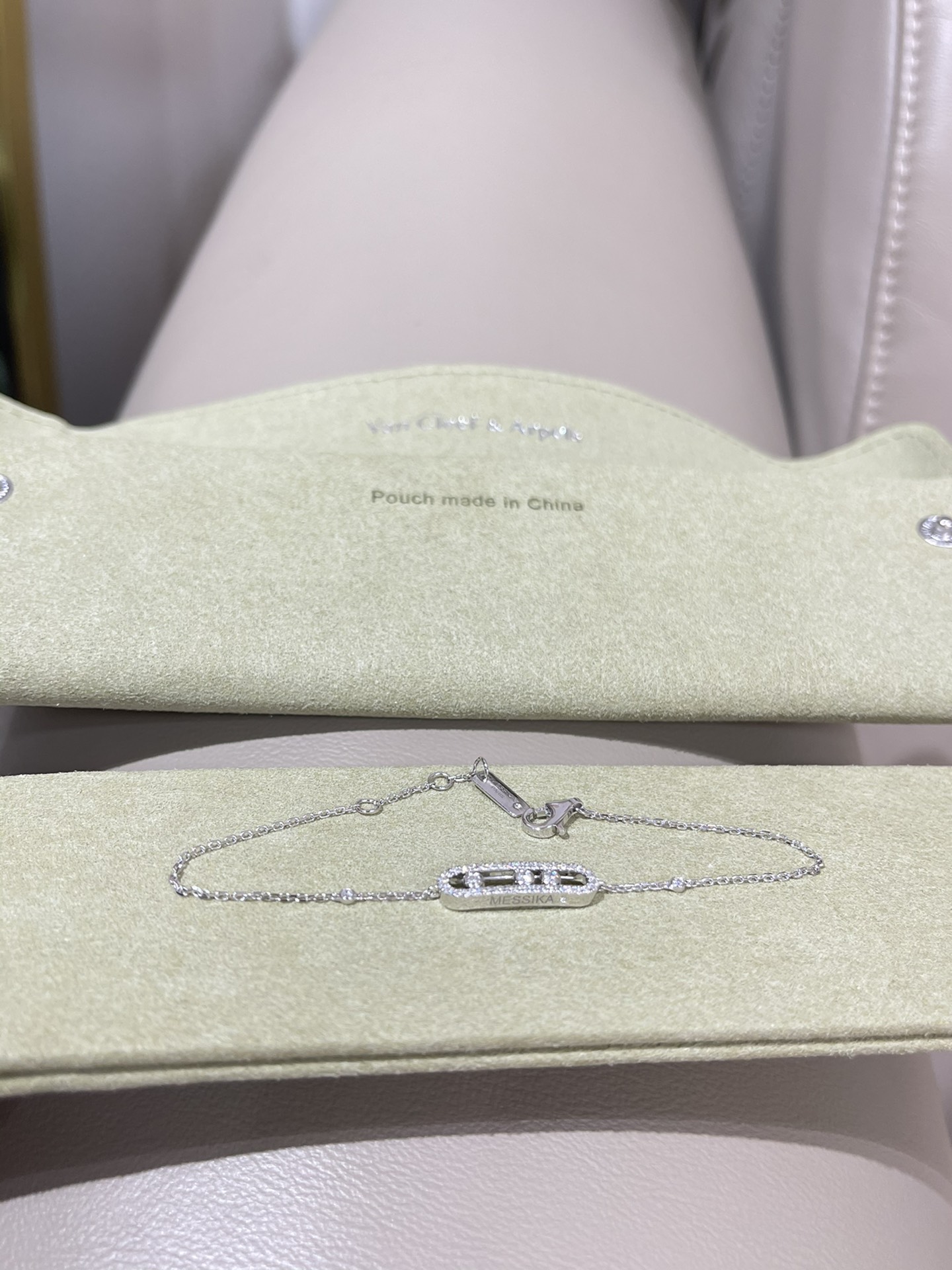 这款首饰是AAAAA 1:1 质量 (非常棒). 使用了和原版一模一样的材料. 商标部分也保持了和梅西卡/Messika一样. 图片拍摄是实物首饰拍摄, 您所收到的实物保证和我们图片一模一样.