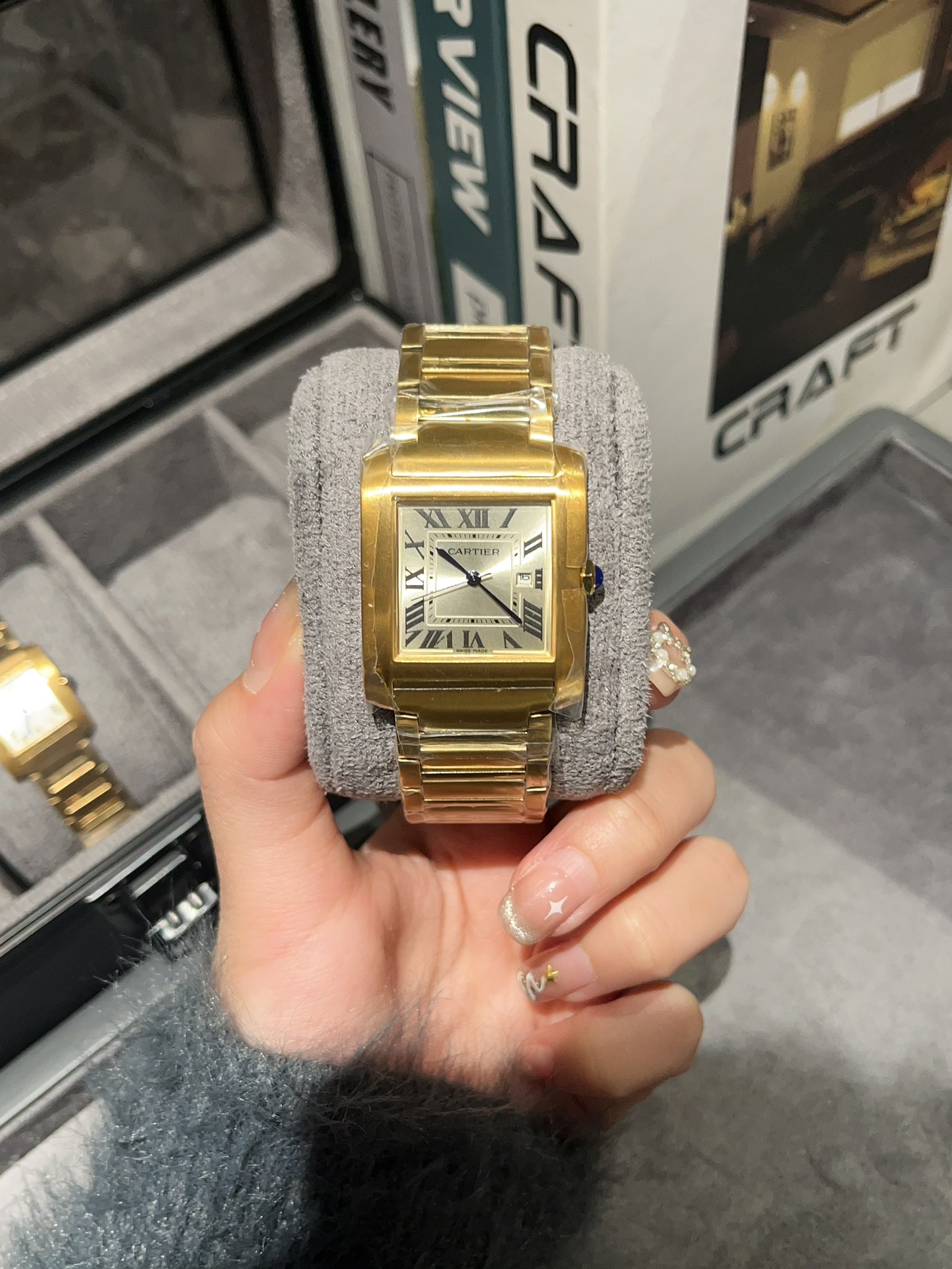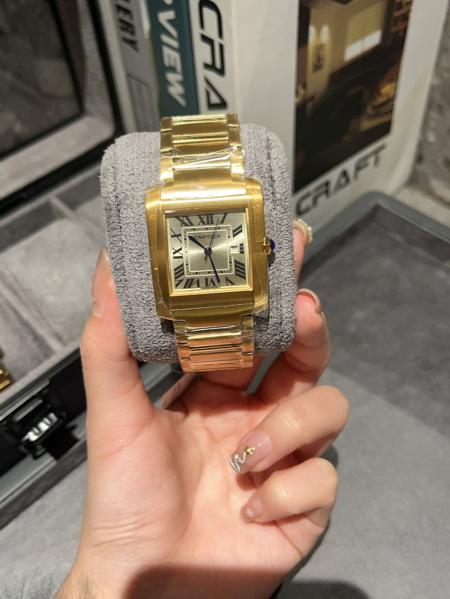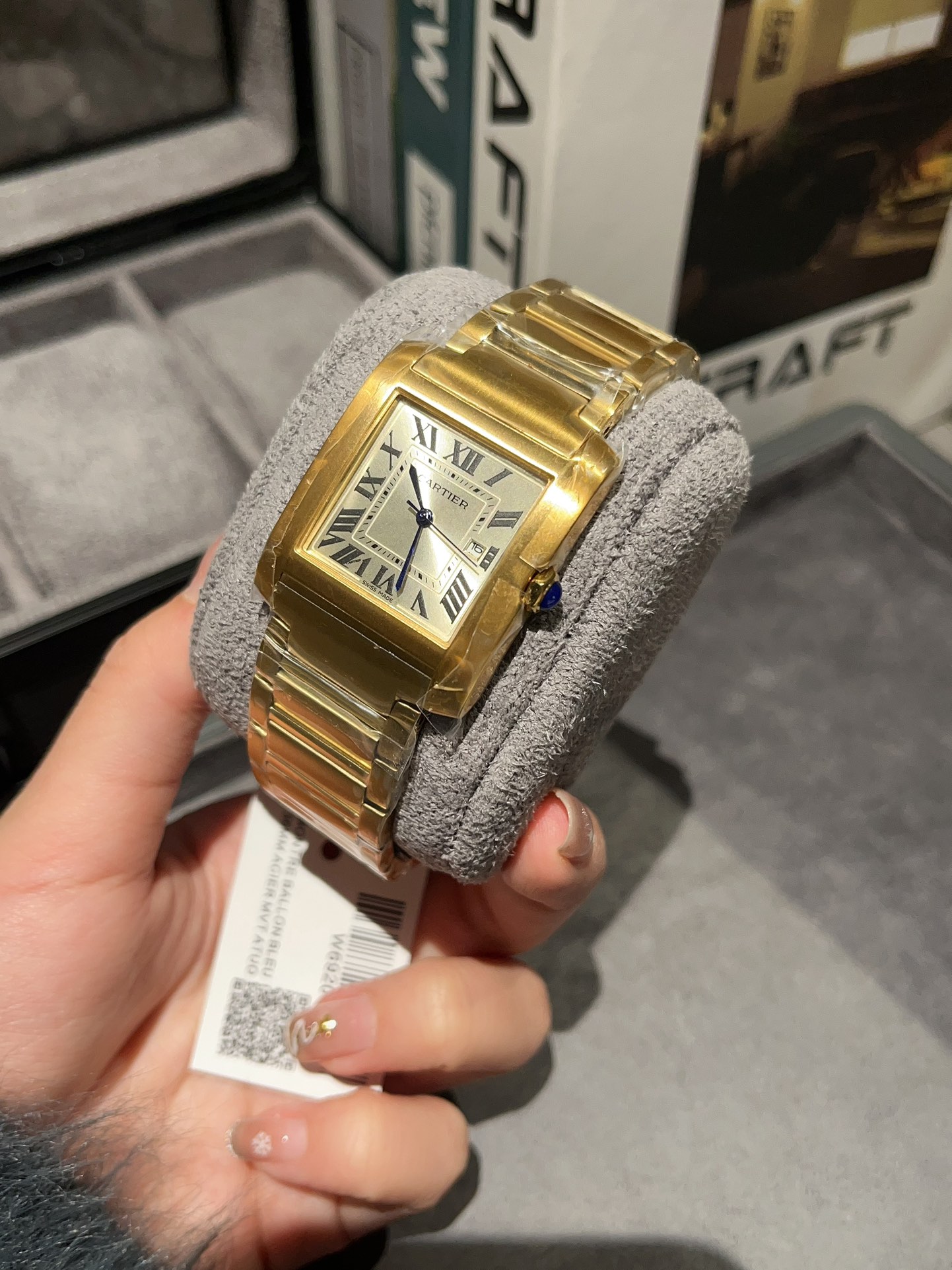 这款手表是AAAAA 1:1 质量 (非常棒). 使用了和原版一模一样的材料. 商标部分也保持了和卡地亚/Cartier一样. 图片拍摄是实物手表拍摄, 您所收到的实物保证和我们图片一模一样.