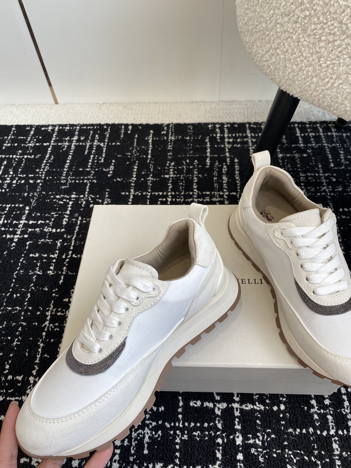这款鞋子是AAAAA 1:1 质量 (非常棒). 使用了和原版一模一样的材料. 商标部分也保持了和Brunello Cucinelli一样. 图片拍摄是实物鞋子拍摄, 您所收到的实物保证和我们图片一模一样.