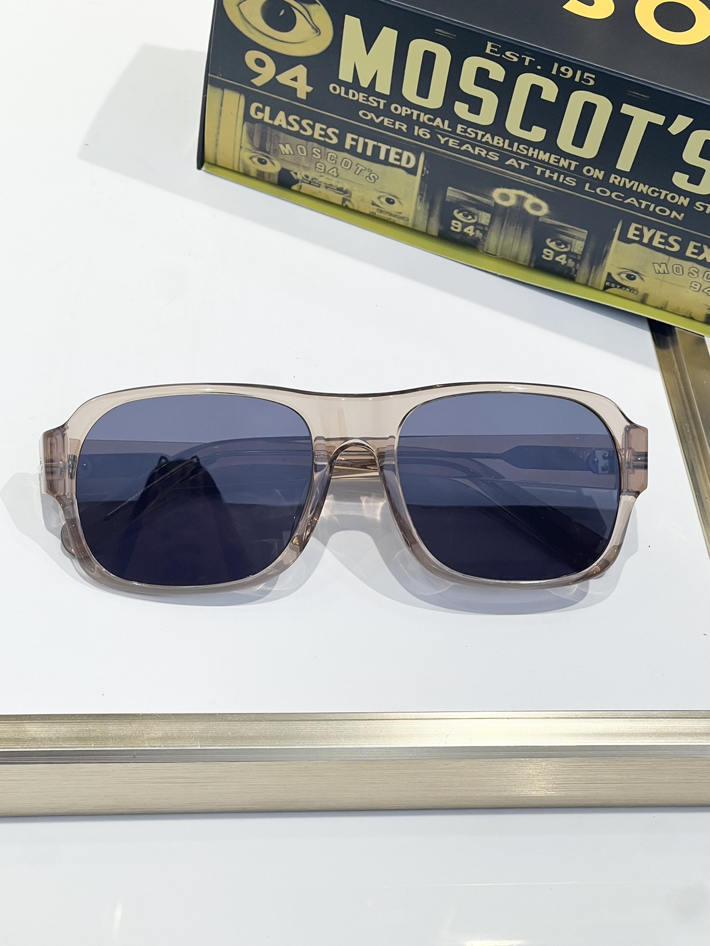 这款太阳眼镜是AAAAA 1:1 质量 (非常棒). 使用了和原版一模一样的材料. 商标部分也保持了和MOSCOT一样. 图片拍摄是实物太阳眼镜拍摄, 您所收到的实物保证和我们图片一模一样.