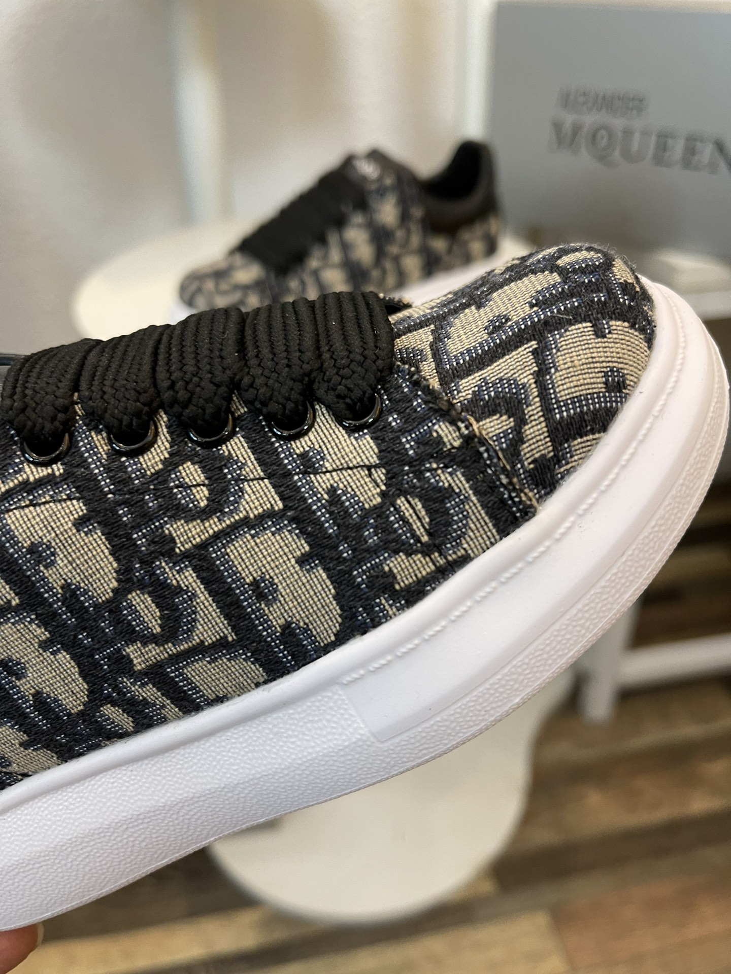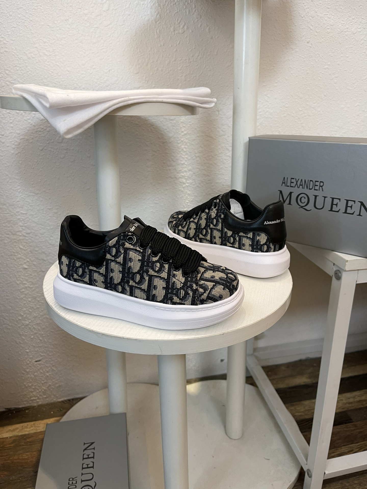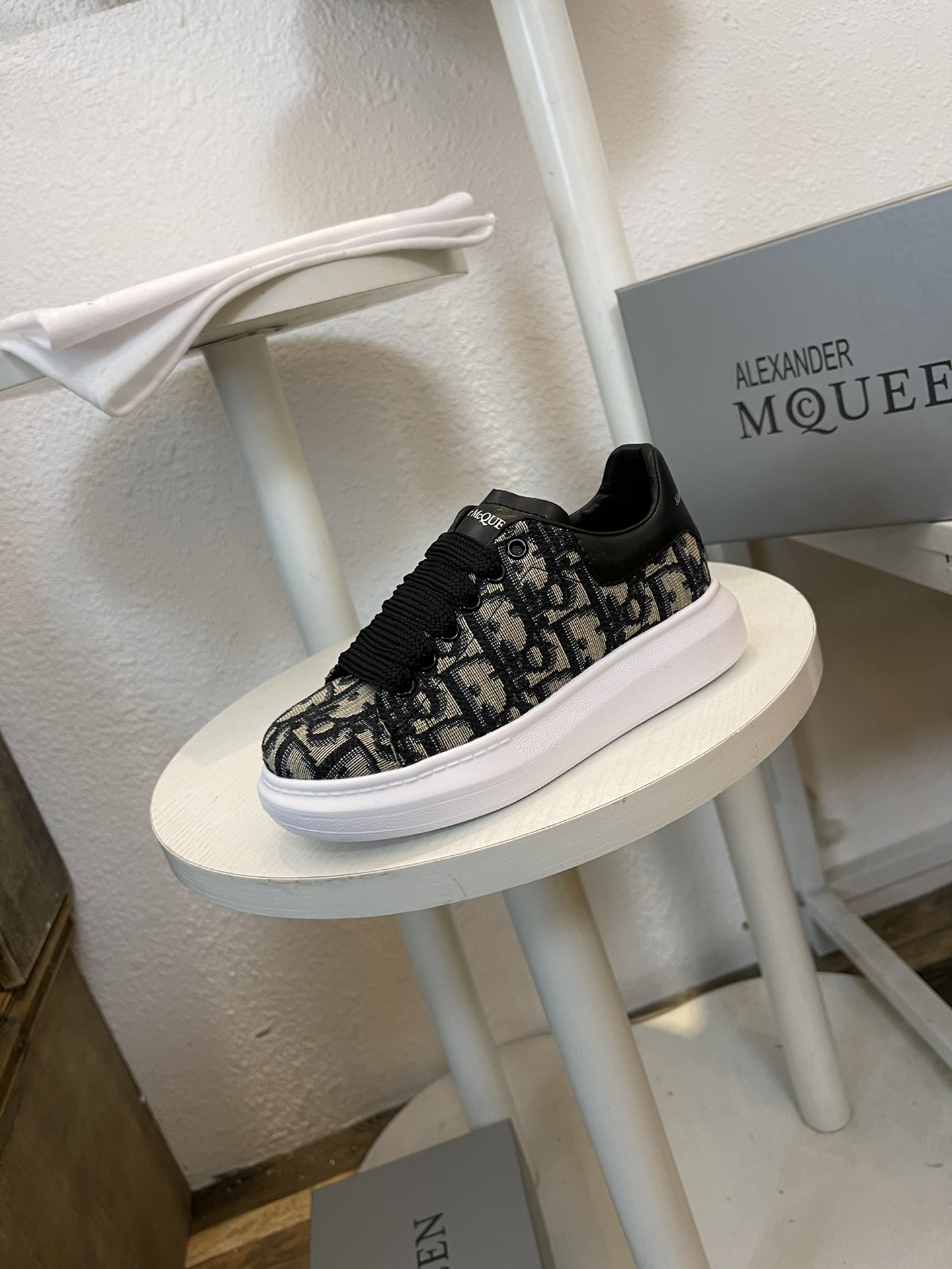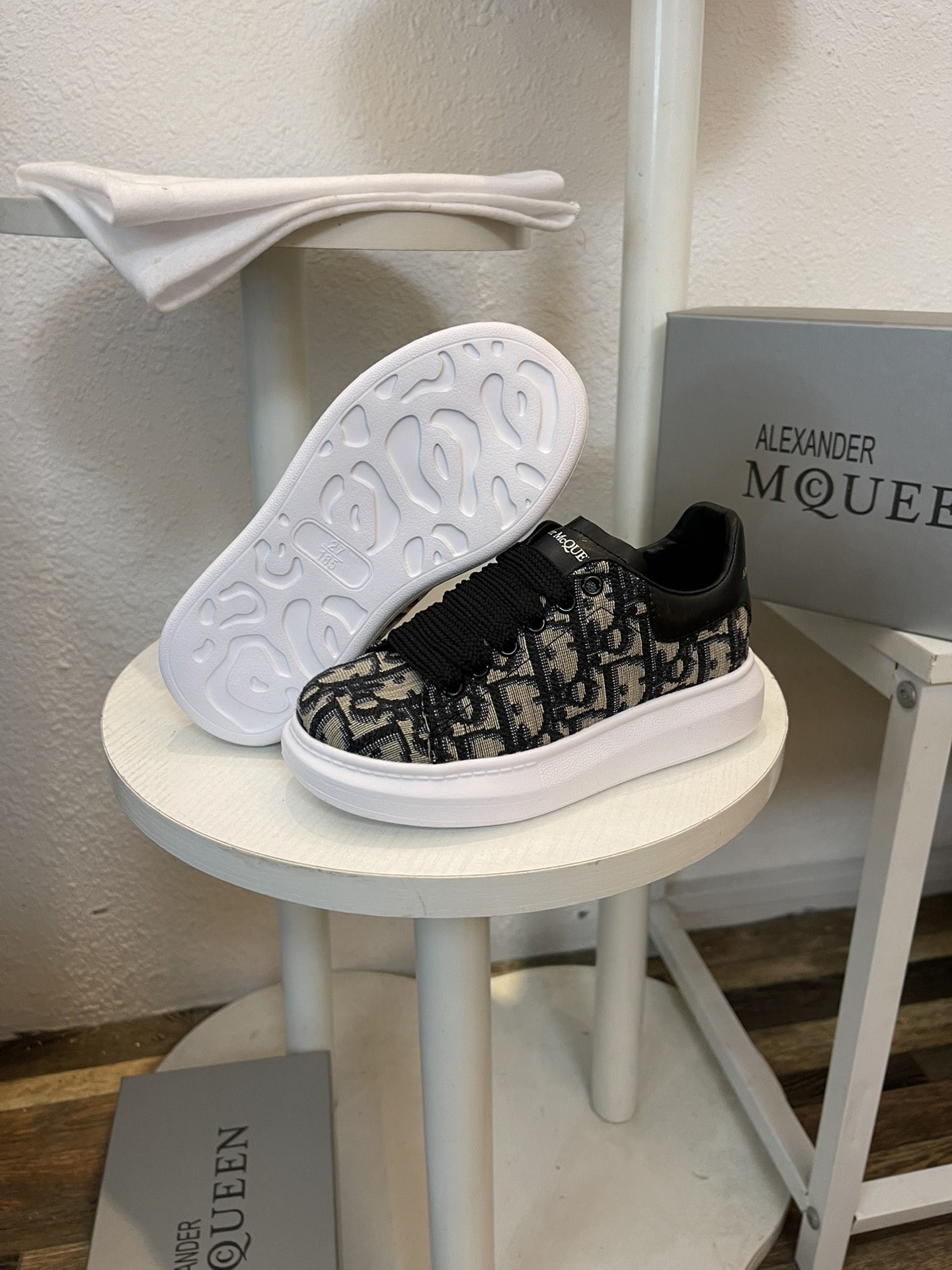 这款兒童鞋是AAAAA 1:1 质量 (非常棒). 使用了和原版一模一样的材料. 商标部分也保持了和亚历山大·麦昆/McQueen一样. 图片拍摄是实物兒童鞋拍摄, 您所收到的实物保证和我们图片一模一样.