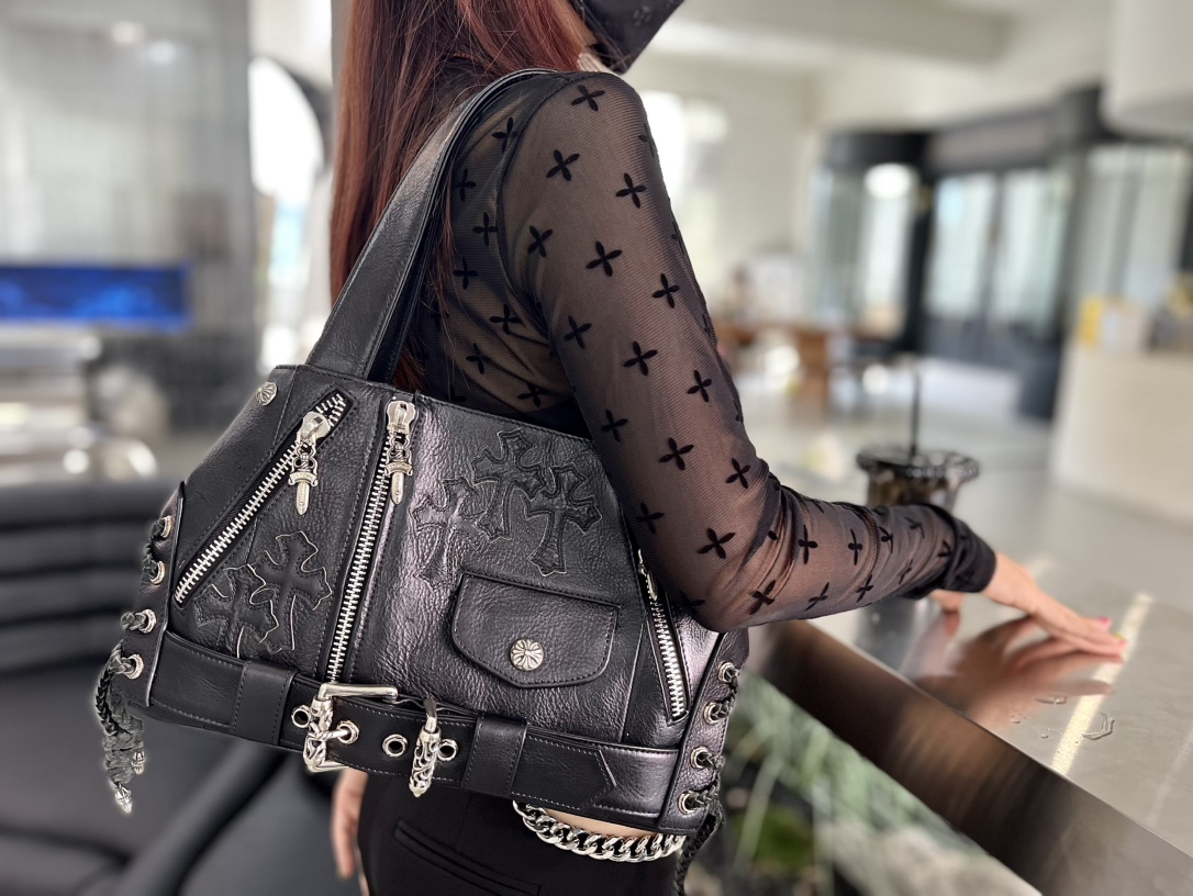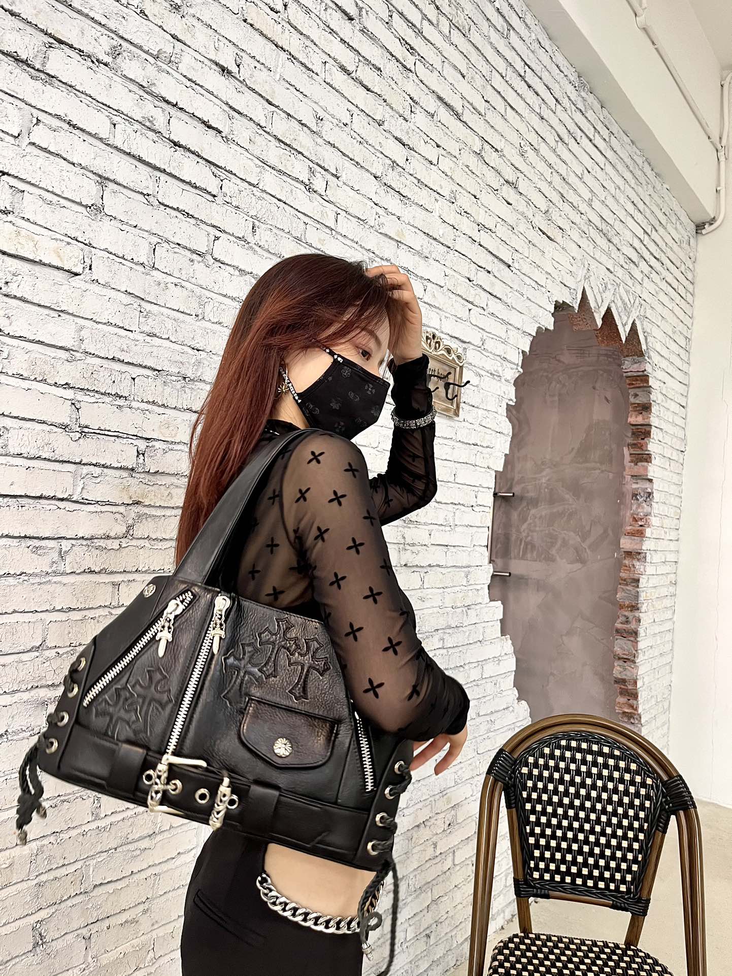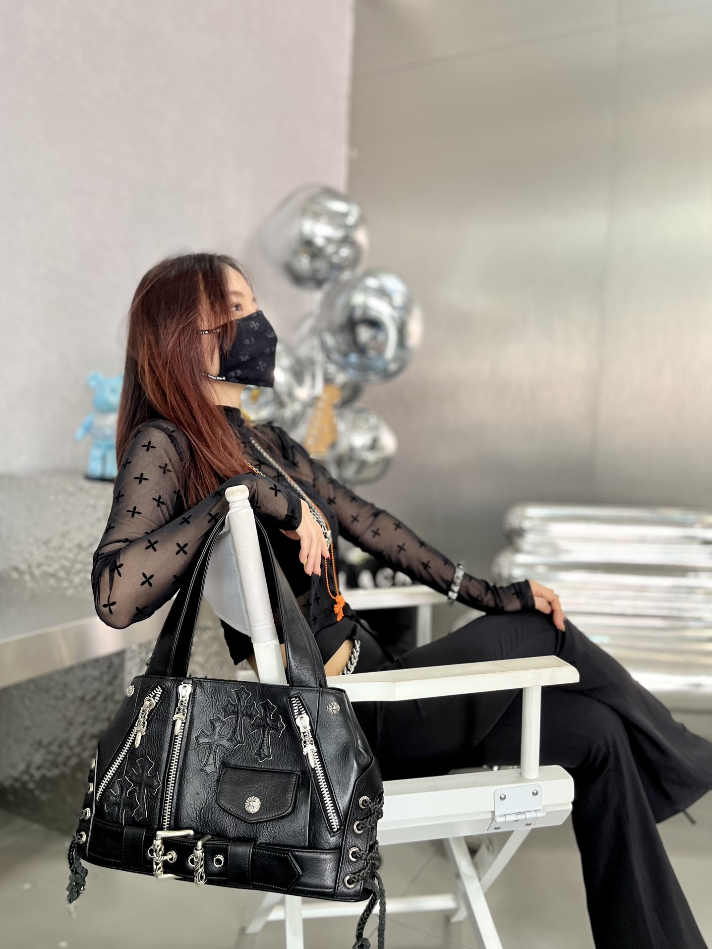 这款包包是AAAAA 1:1 质量 (非常棒). 使用了和原版一模一样的材料. 商标部分也保持了和克罗心/Chrome Hearts一样. 图片拍摄是实物包包拍摄, 您所收到的实物保证和我们图片一模一样.