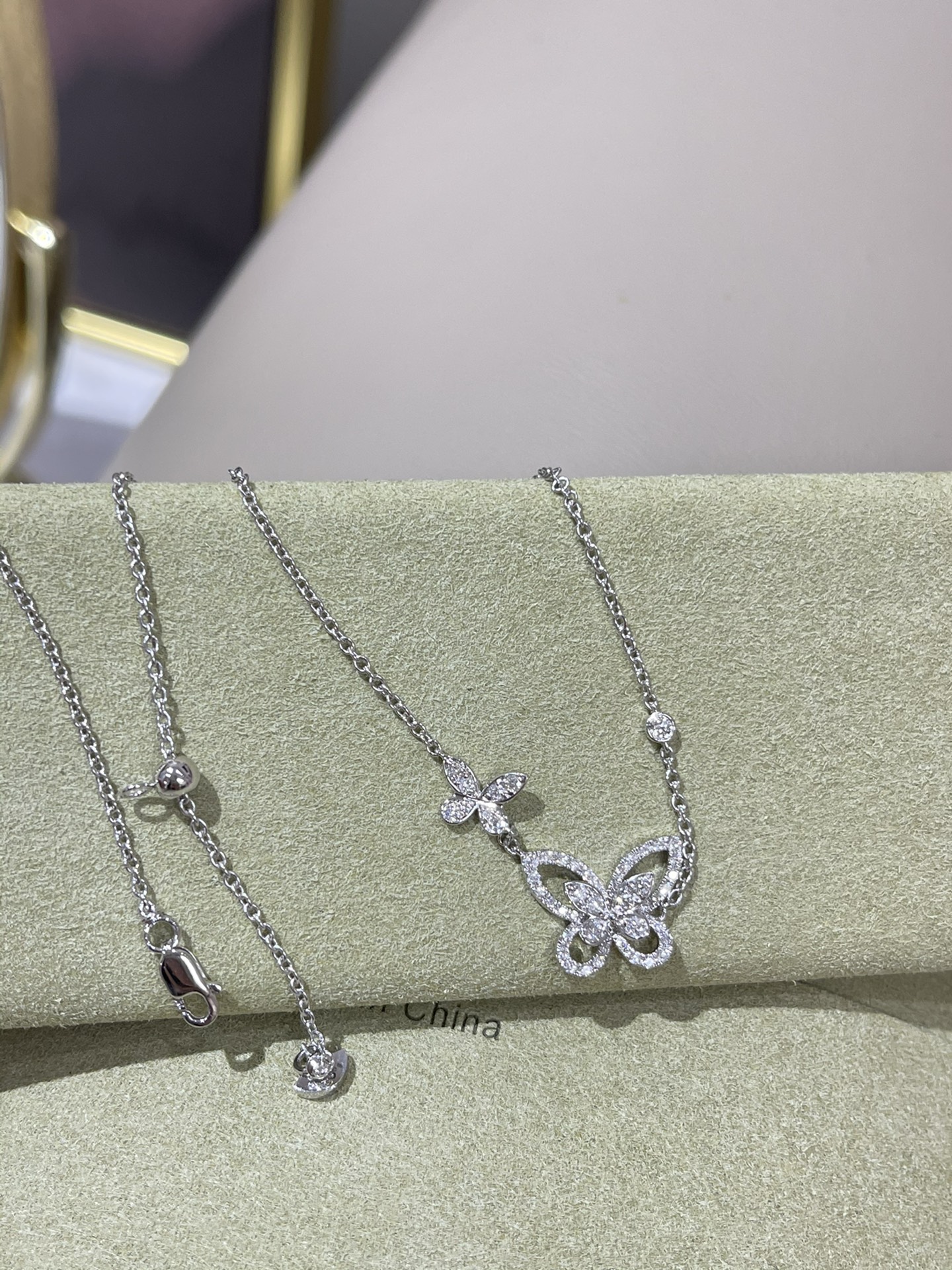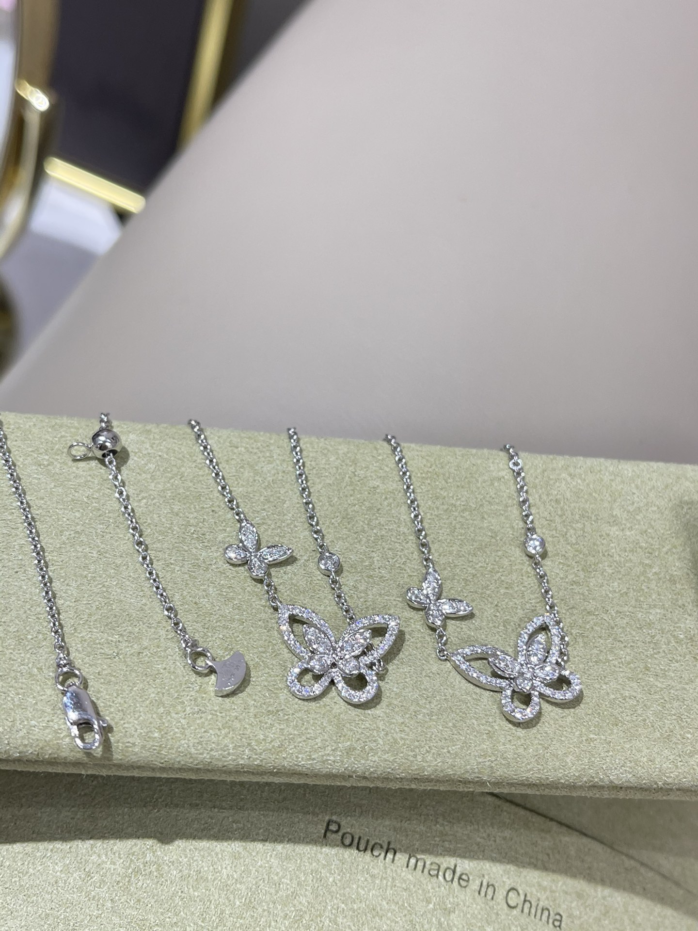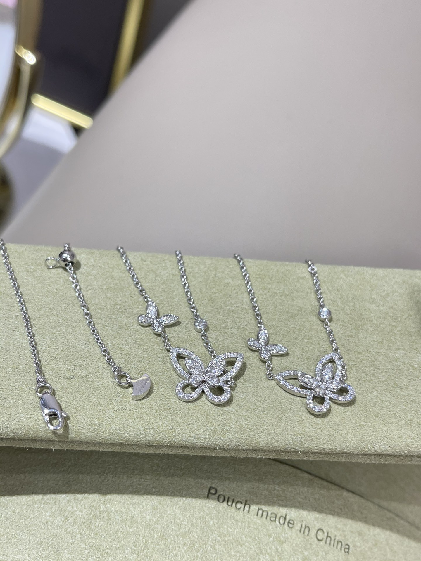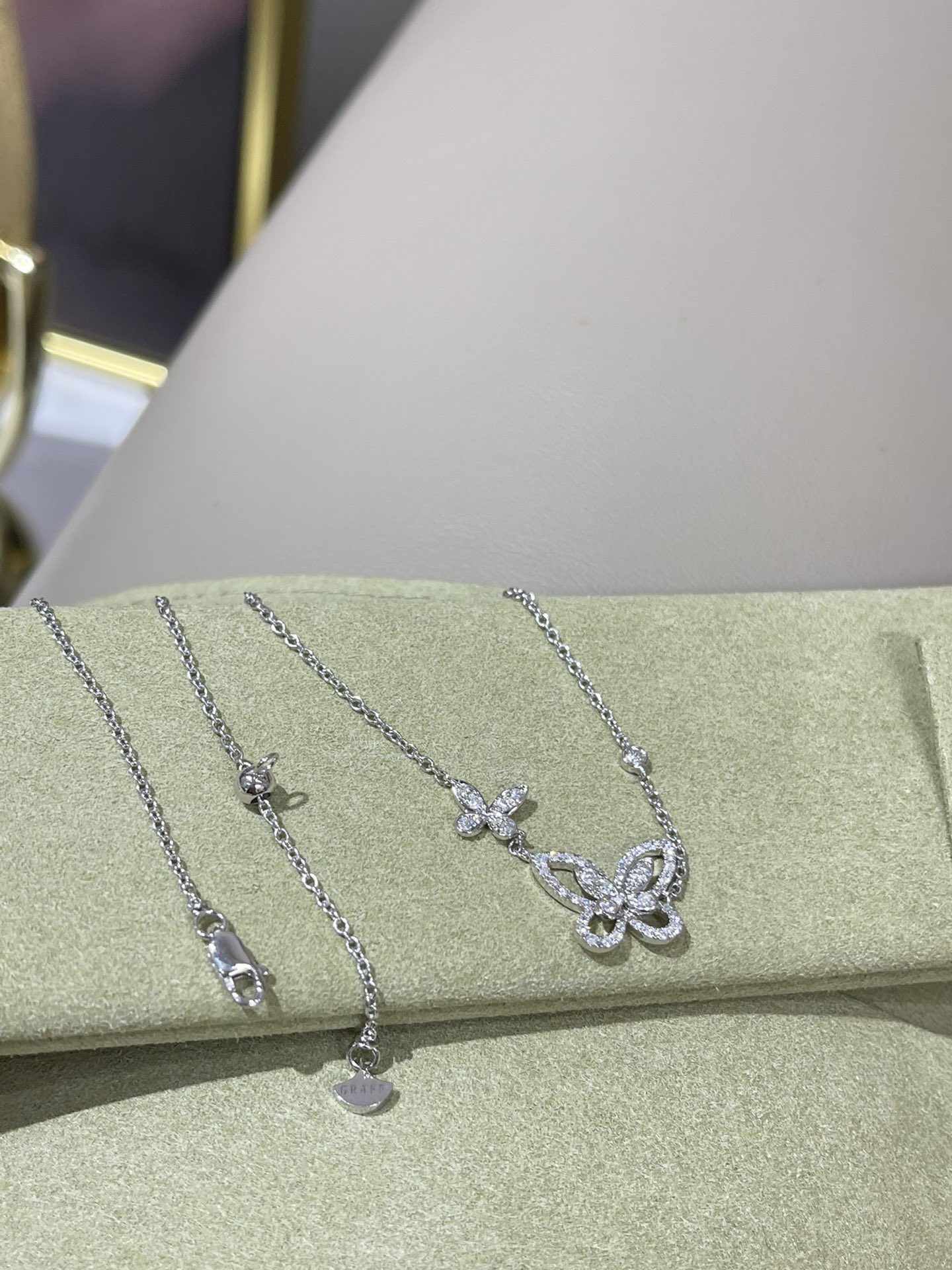 这款首饰是AAAAA 1:1 质量 (非常棒). 使用了和原版一模一样的材料. 商标部分也保持了和GRAFF一样. 图片拍摄是实物首饰拍摄, 您所收到的实物保证和我们图片一模一样.