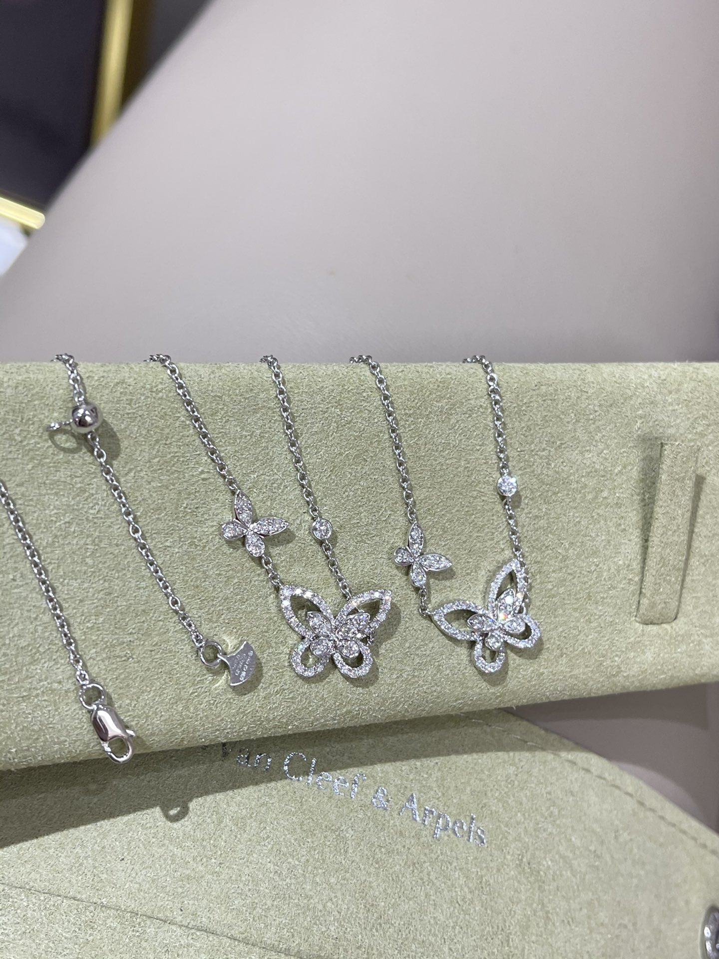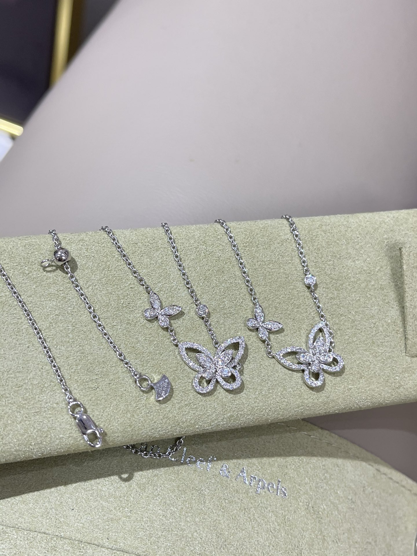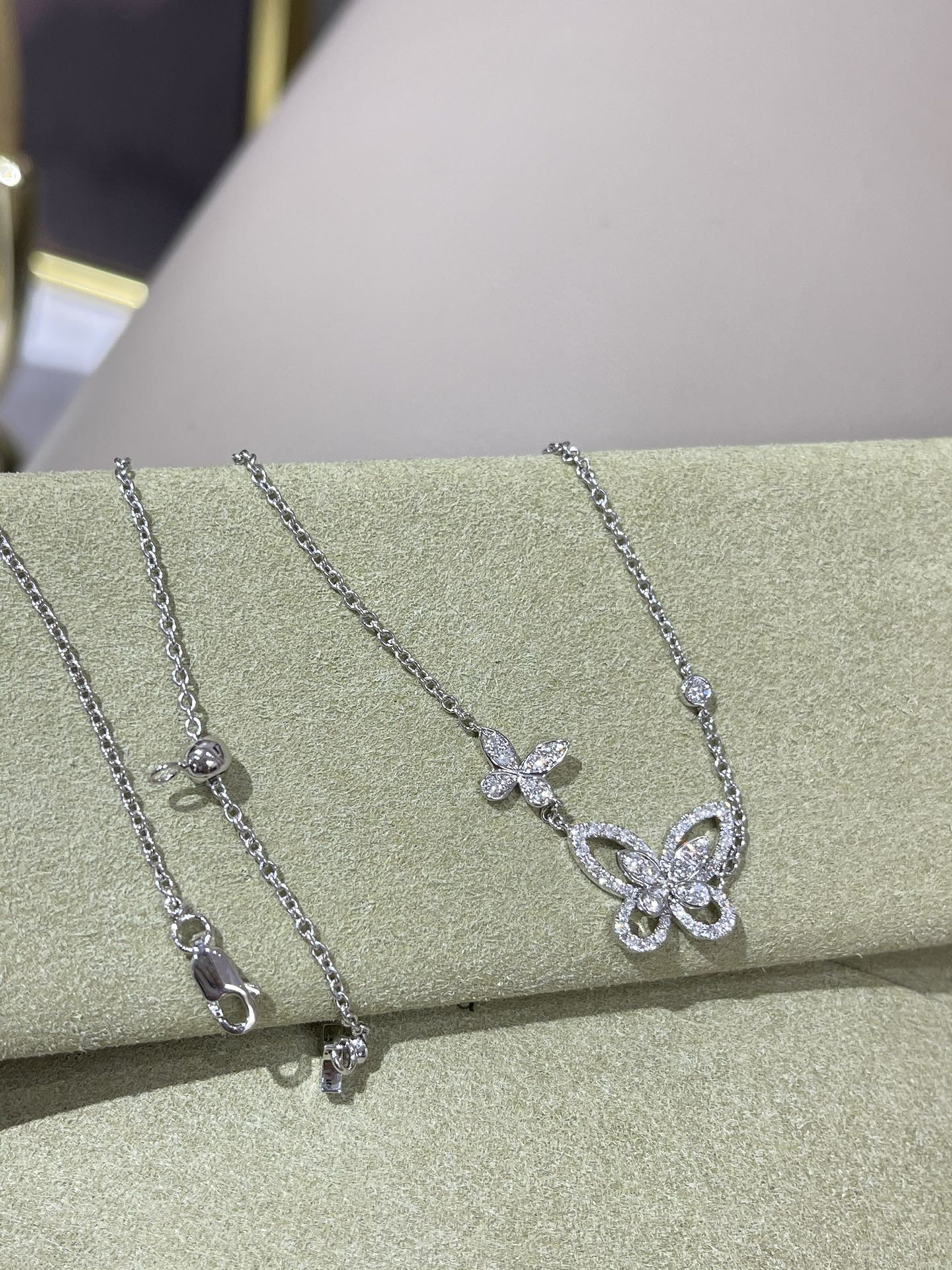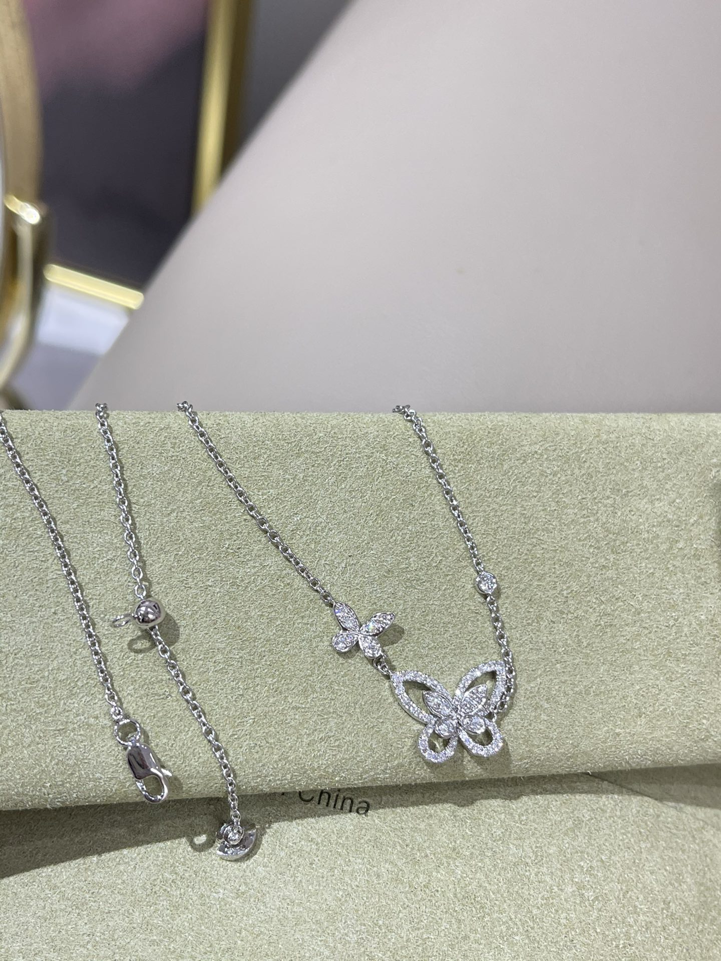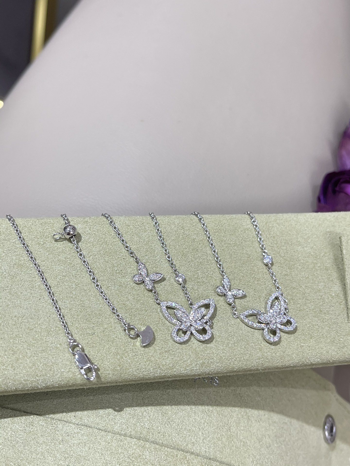 这款首饰是AAAAA 1:1 质量 (非常棒). 使用了和原版一模一样的材料. 商标部分也保持了和GRAFF一样. 图片拍摄是实物首饰拍摄, 您所收到的实物保证和我们图片一模一样.