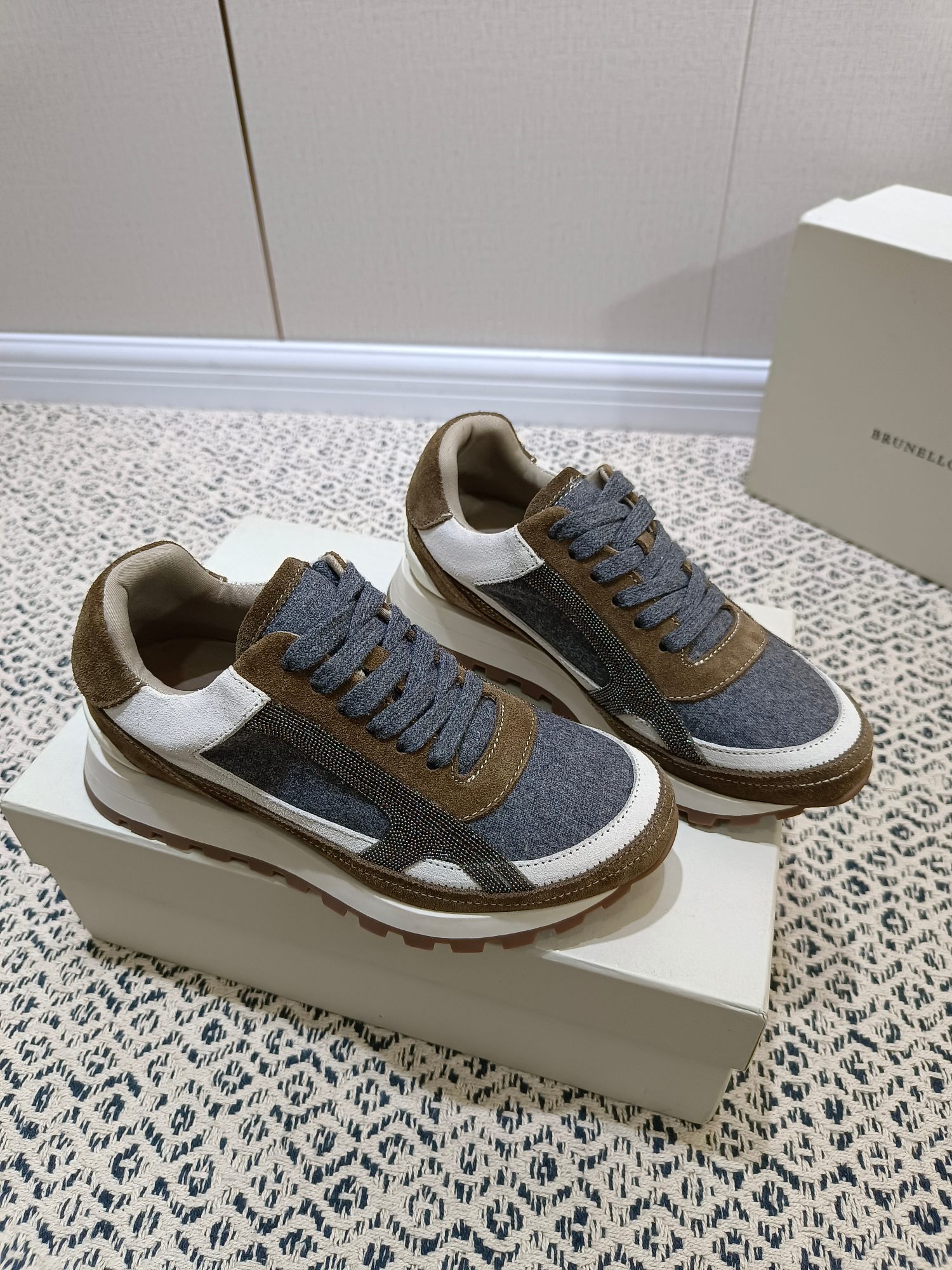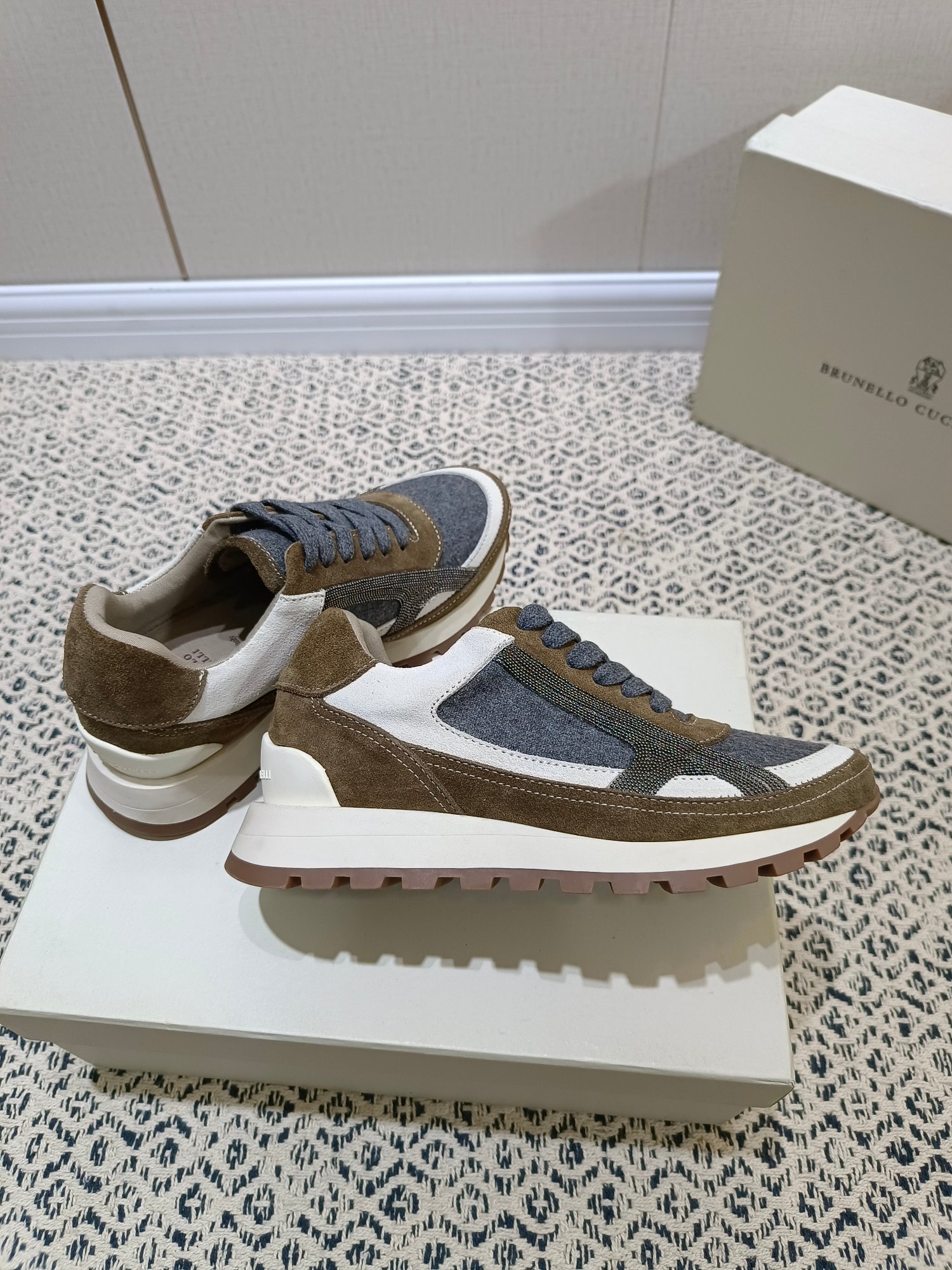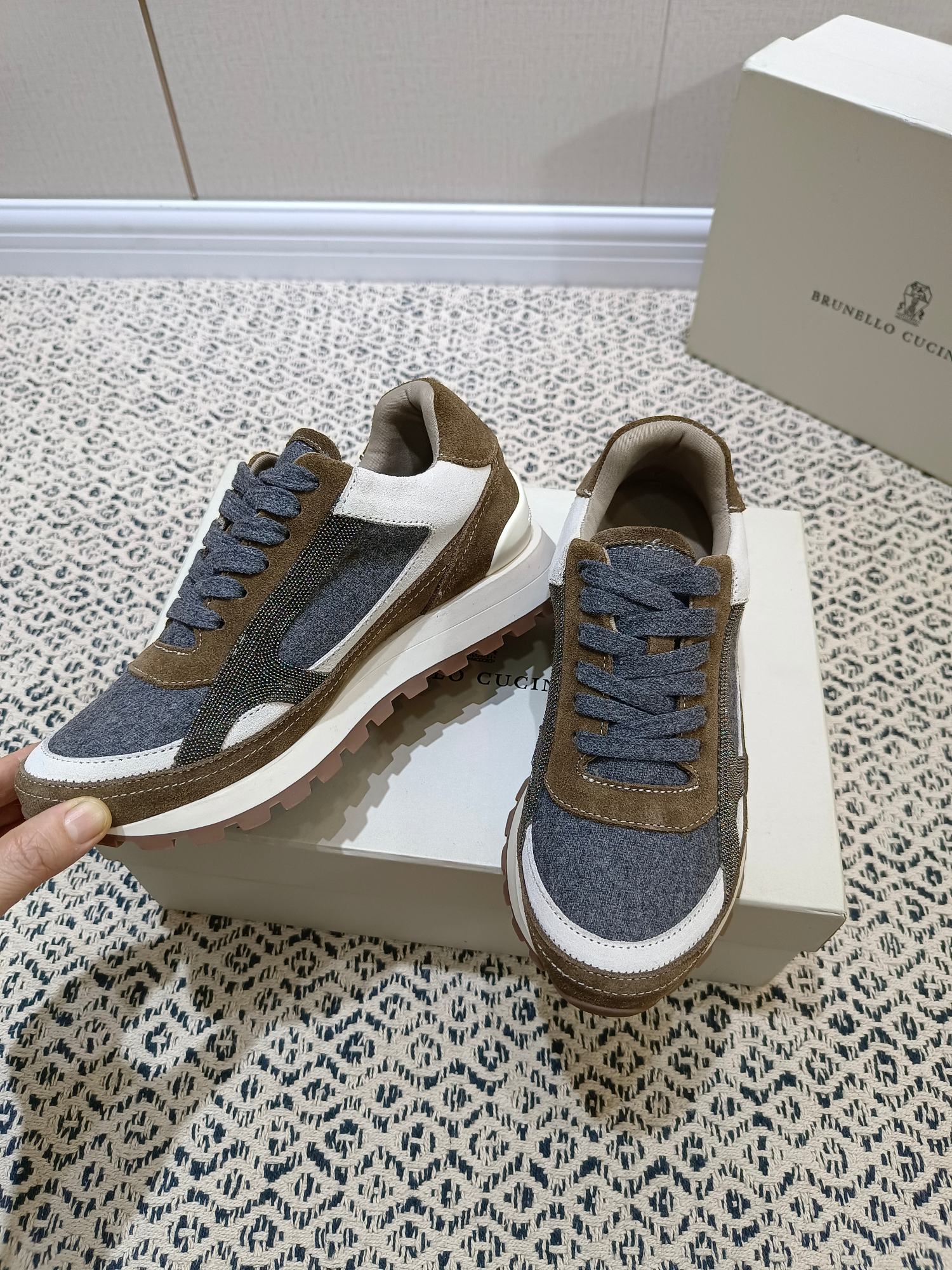 这款鞋子是AAAAA 1:1 质量 (非常棒). 使用了和原版一模一样的材料. 商标部分也保持了和Brunello Cucinelli一样. 图片拍摄是实物鞋子拍摄, 您所收到的实物保证和我们图片一模一样.