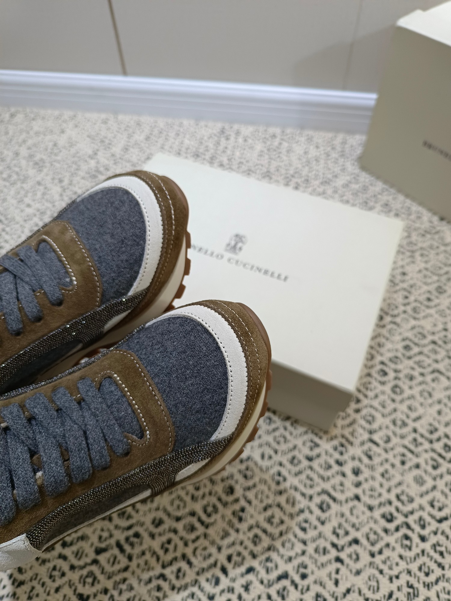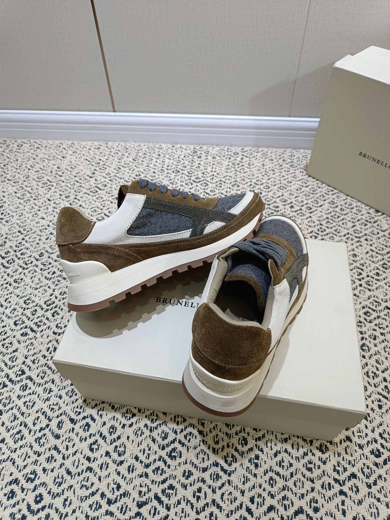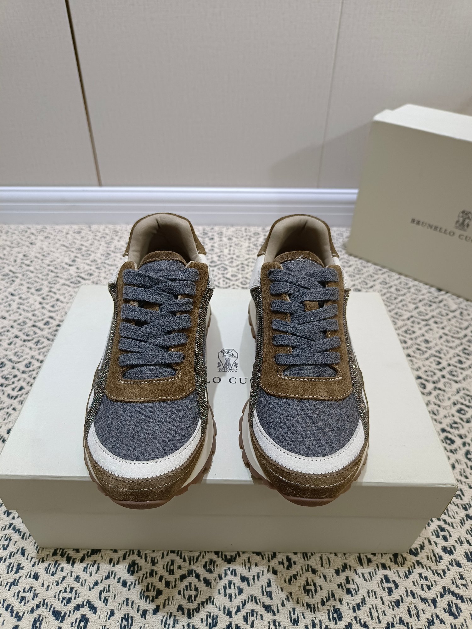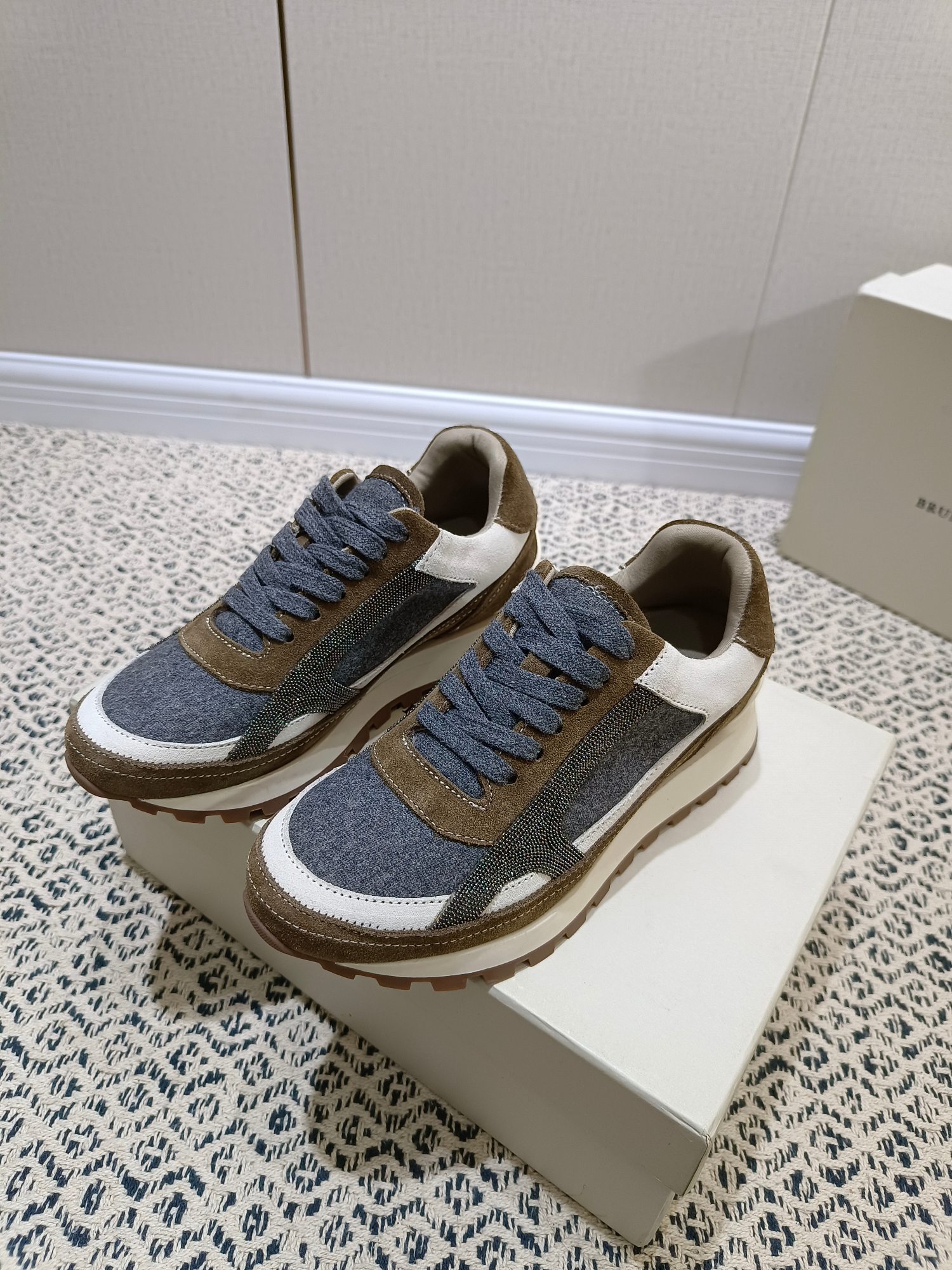 这款鞋子是AAAAA 1:1 质量 (非常棒). 使用了和原版一模一样的材料. 商标部分也保持了和Brunello Cucinelli一样. 图片拍摄是实物鞋子拍摄, 您所收到的实物保证和我们图片一模一样.