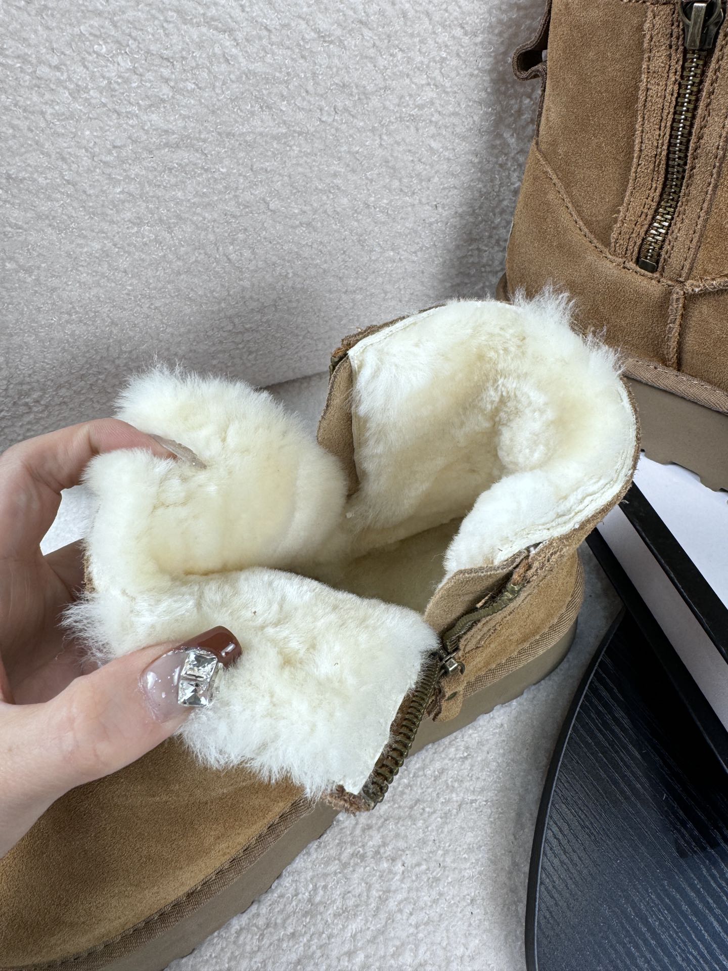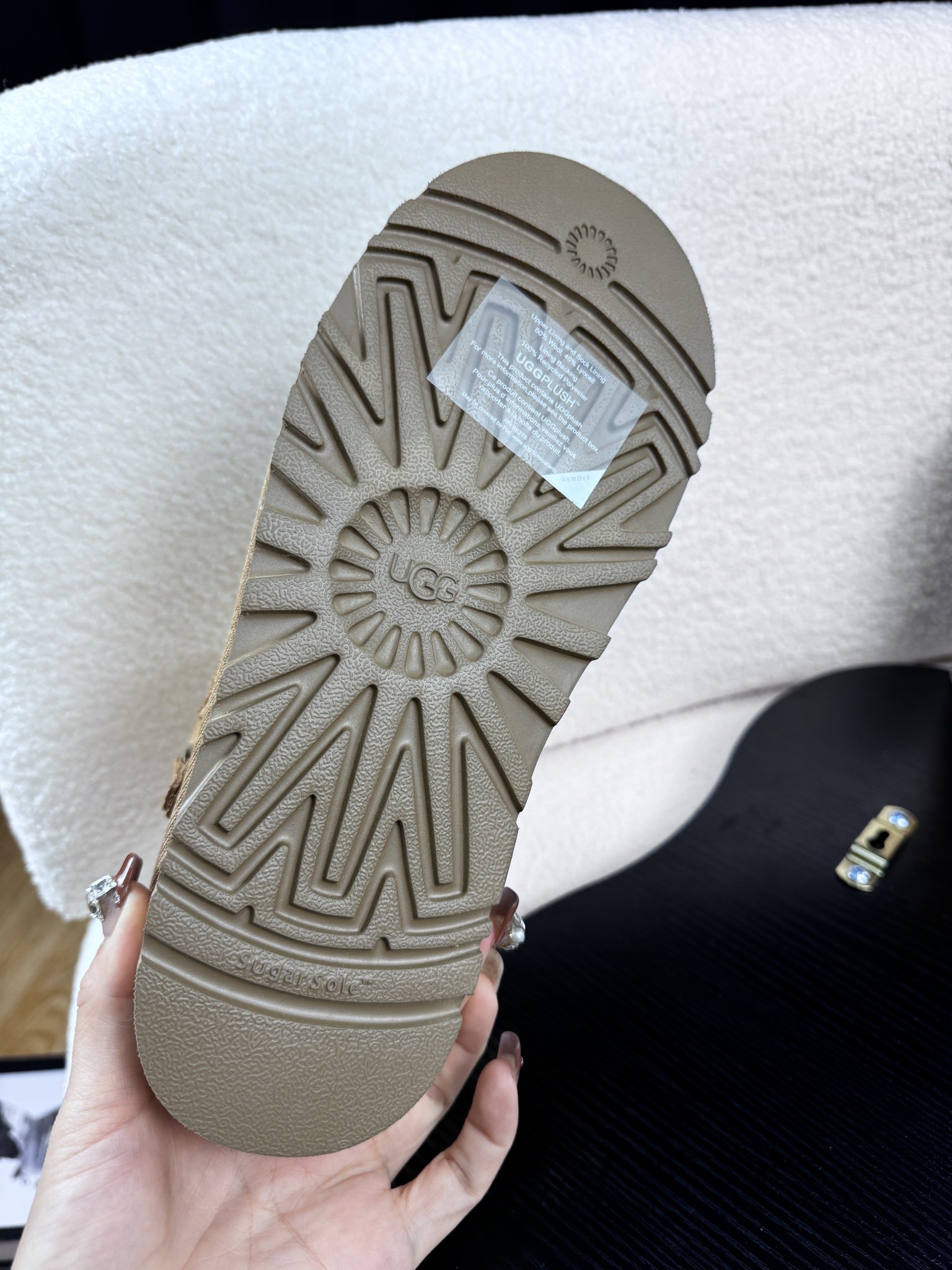 这款鞋子是AAAAA 1:1 质量 (非常棒). 使用了和原版一模一样的材料. 商标部分也保持了和UGG雪地靴一样. 图片拍摄是实物鞋子拍摄, 您所收到的实物保证和我们图片一模一样.