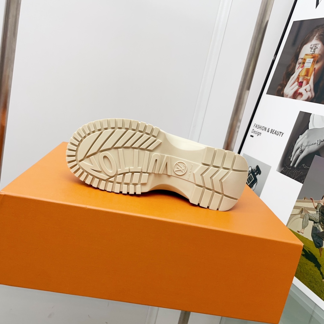 这款鞋子是AAAAA 1:1 质量 (非常棒). 使用了和原版一模一样的材料. 商标部分也保持了和路易威登/Louis Vuitton一样. 图片拍摄是实物鞋子拍摄, 您所收到的实物保证和我们图片一模一样.