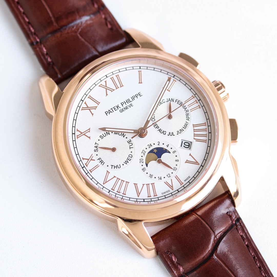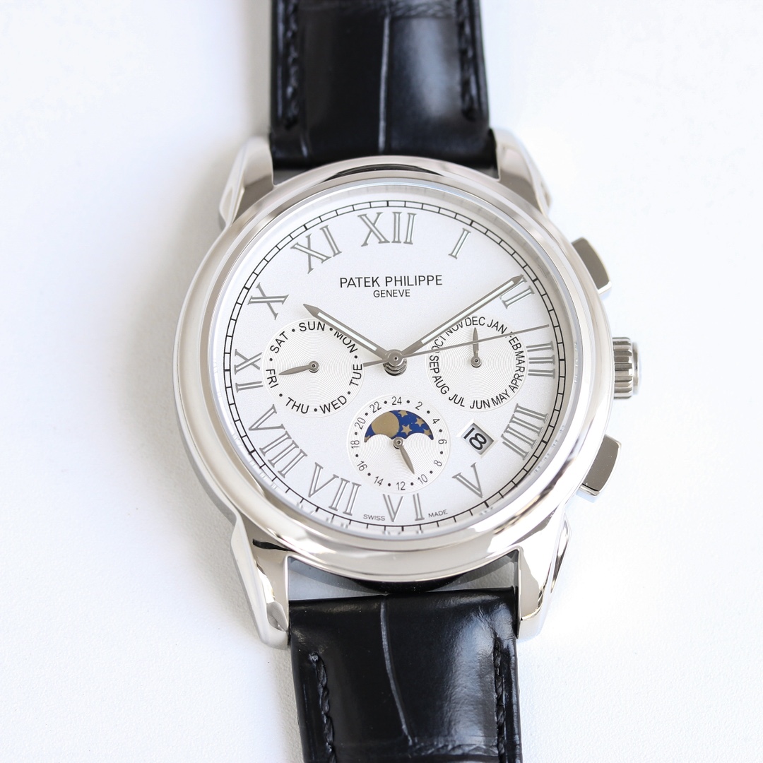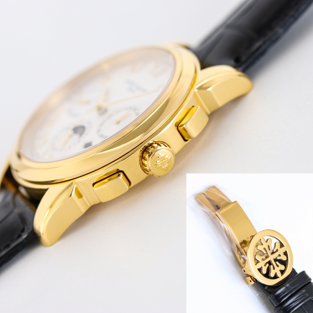 这款手表是AAAAA 1:1 质量 (非常棒). 使用了和原版一模一样的材料. 商标部分也保持了和百达翡丽/Patek Philippe一样. 图片拍摄是实物手表拍摄, 您所收到的实物保证和我们图片一模一样.