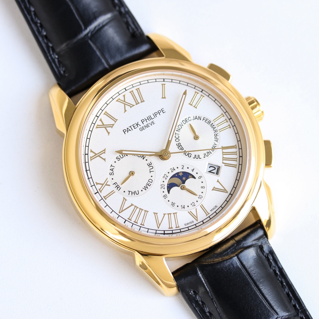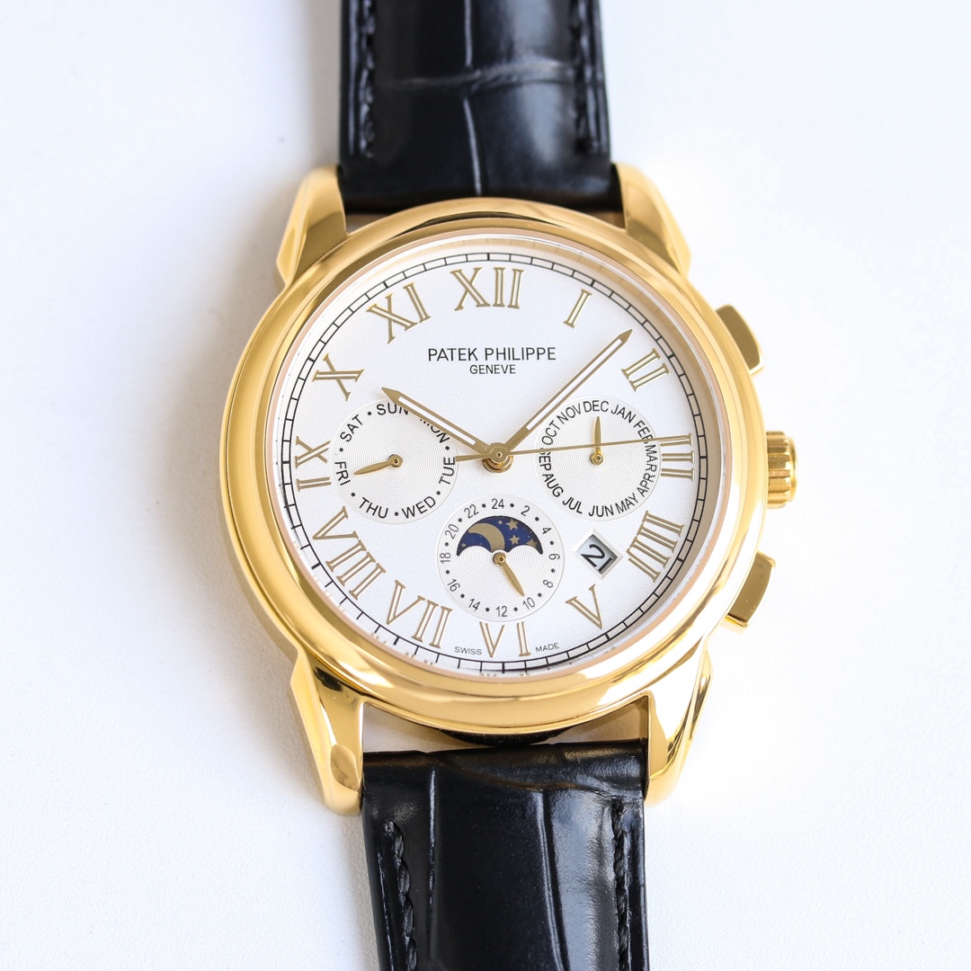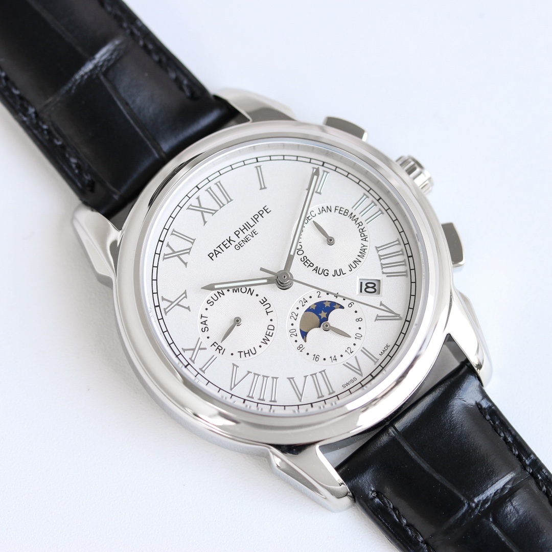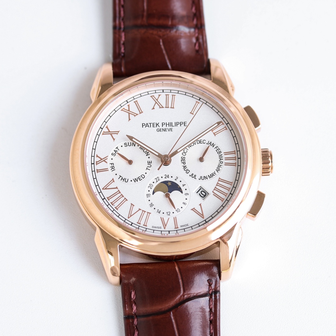 这款手表是AAAAA 1:1 质量 (非常棒). 使用了和原版一模一样的材料. 商标部分也保持了和百达翡丽/Patek Philippe一样. 图片拍摄是实物手表拍摄, 您所收到的实物保证和我们图片一模一样.