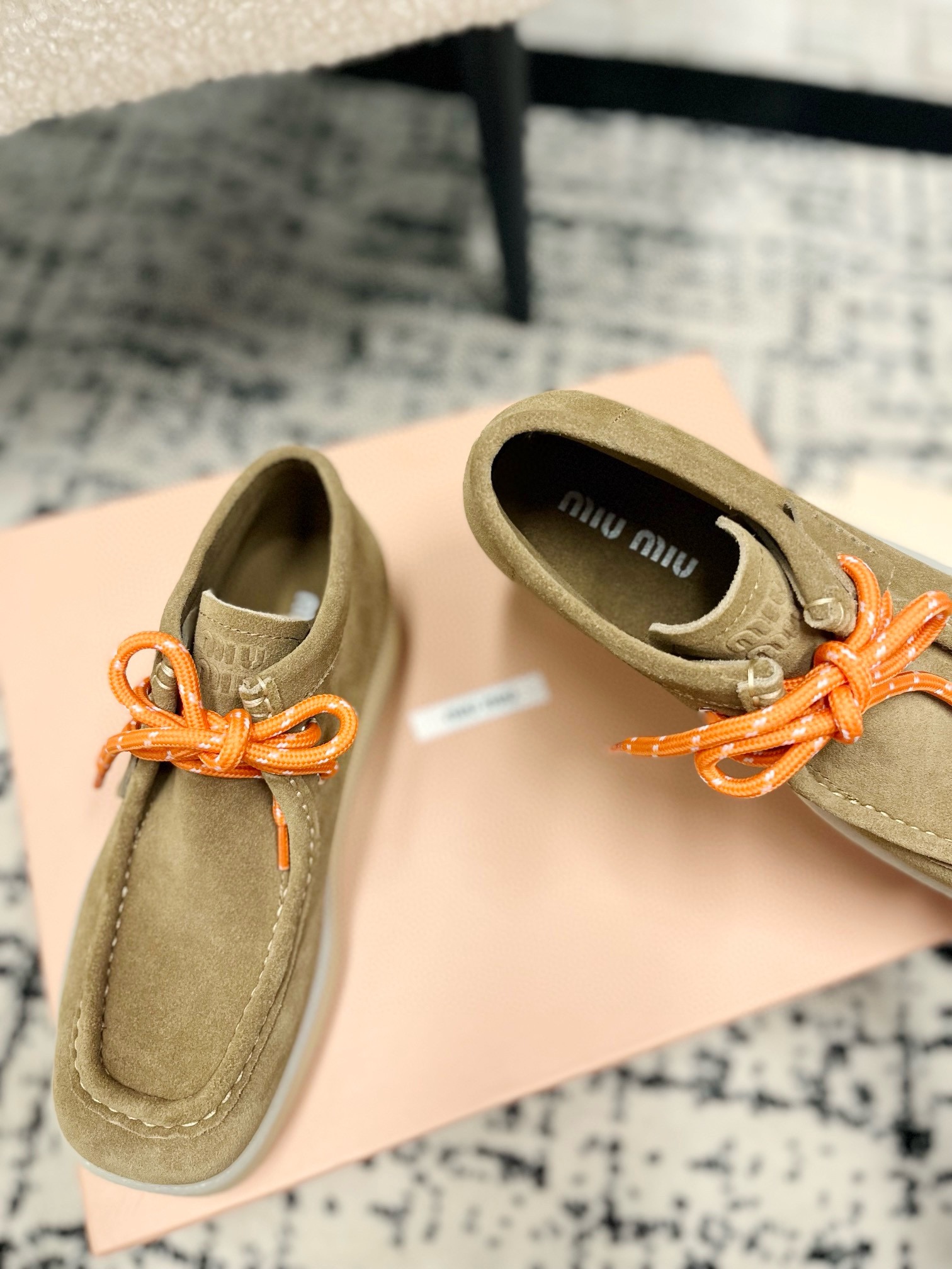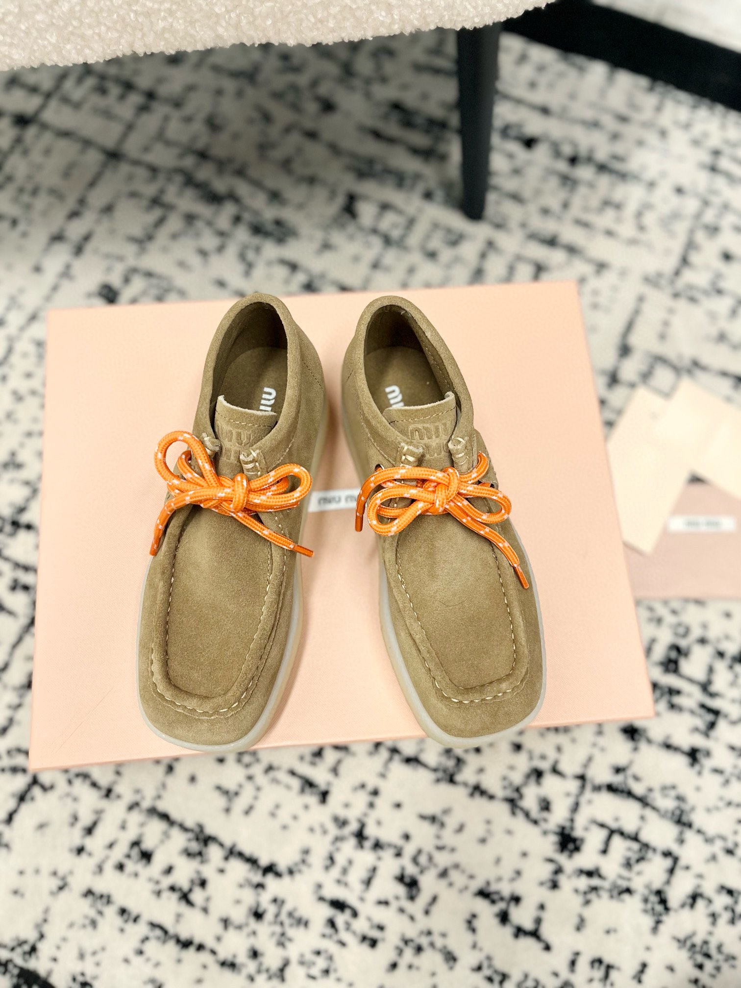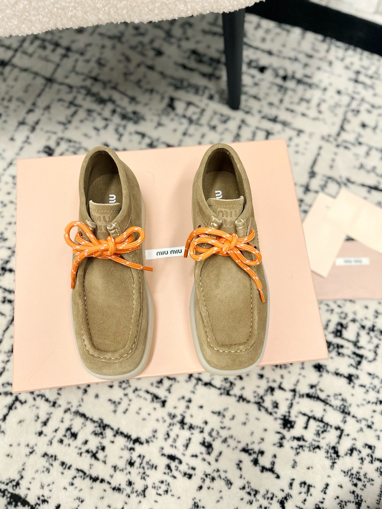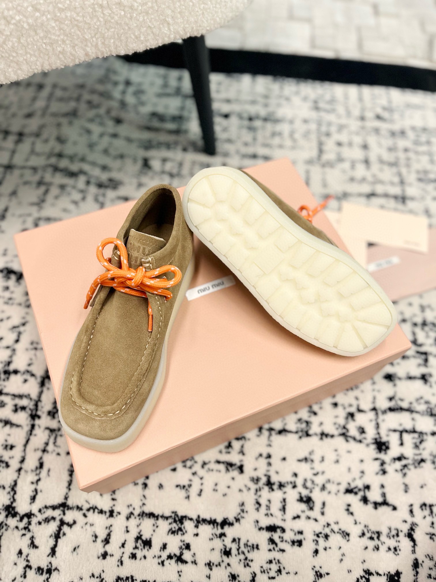 这款鞋子是AAAAA 1:1 质量 (非常棒). 使用了和原版一模一样的材料. 商标部分也保持了和缪缪/Miu Miu一样. 图片拍摄是实物鞋子拍摄, 您所收到的实物保证和我们图片一模一样.