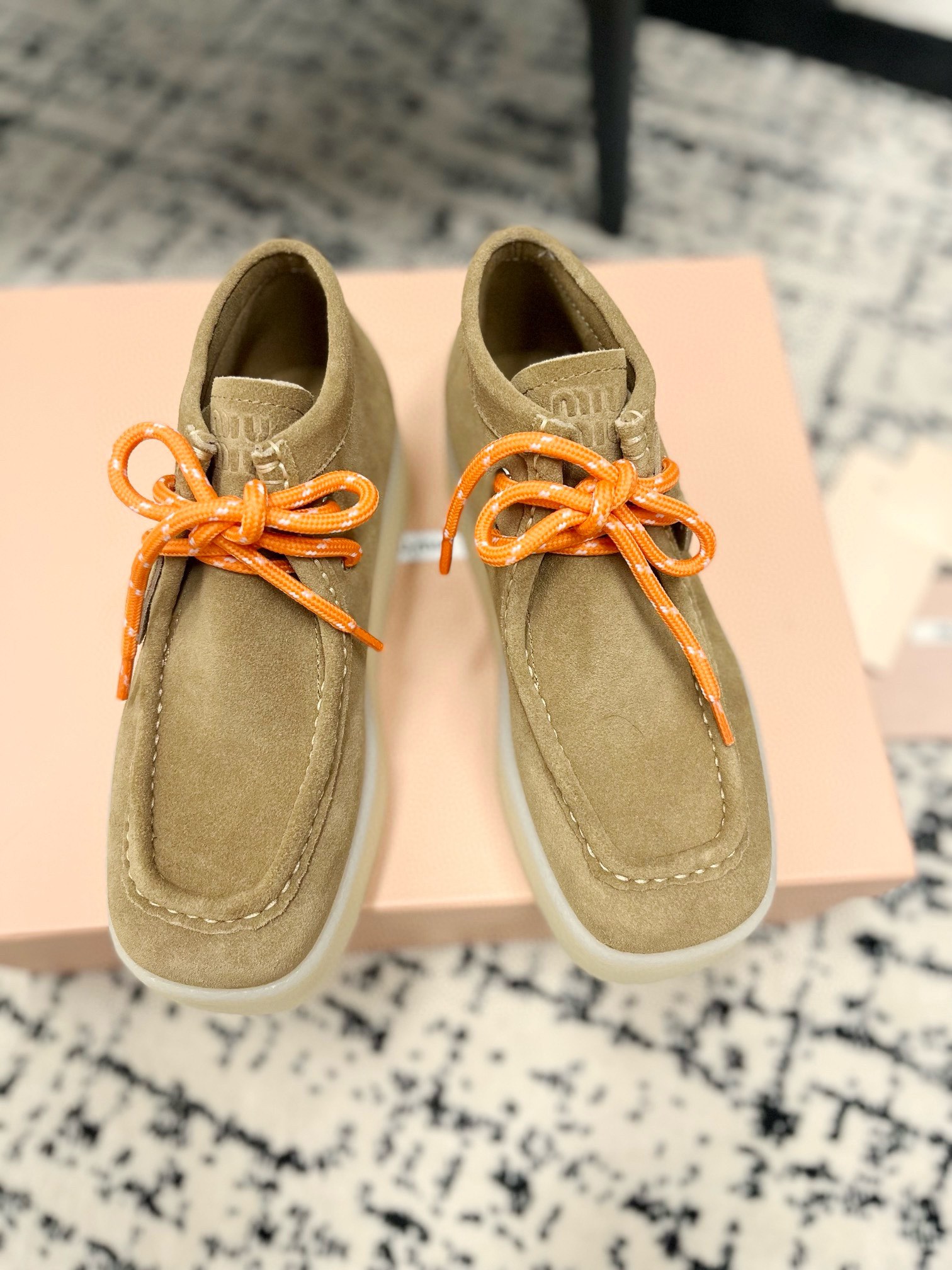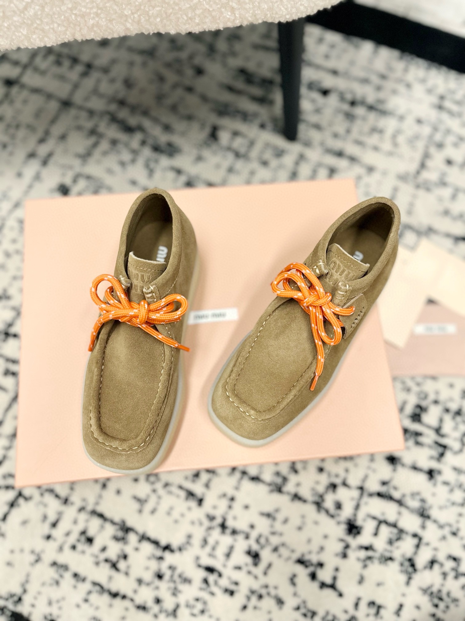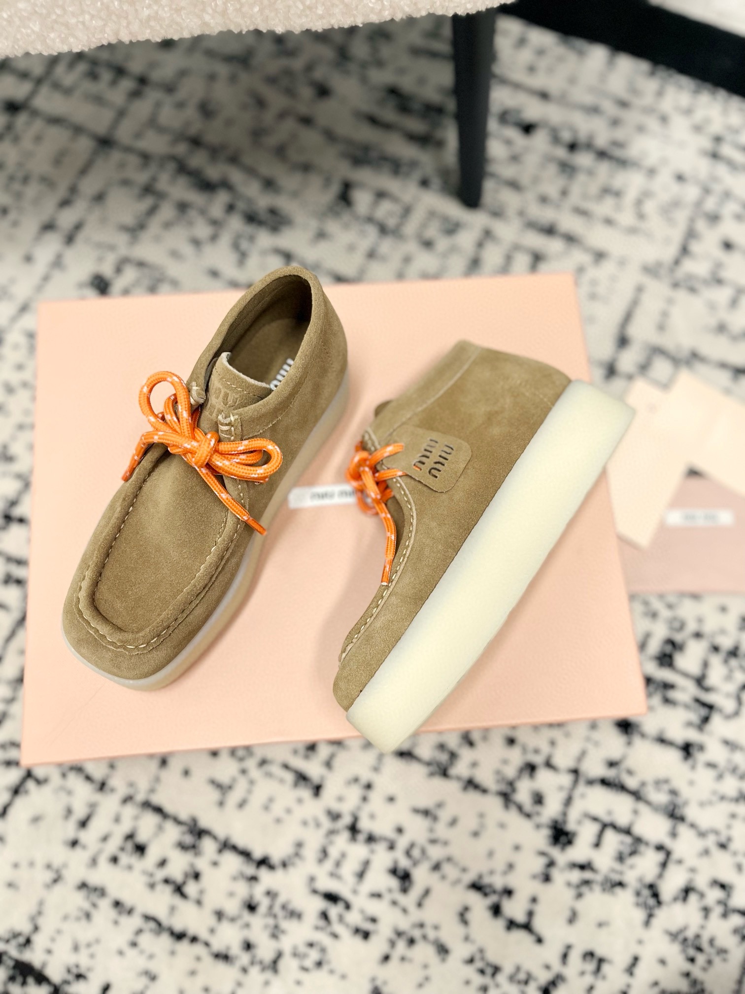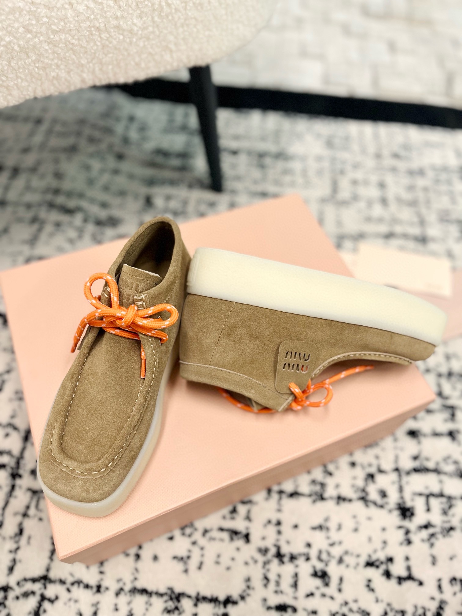 这款鞋子是AAAAA 1:1 质量 (非常棒). 使用了和原版一模一样的材料. 商标部分也保持了和缪缪/Miu Miu一样. 图片拍摄是实物鞋子拍摄, 您所收到的实物保证和我们图片一模一样.