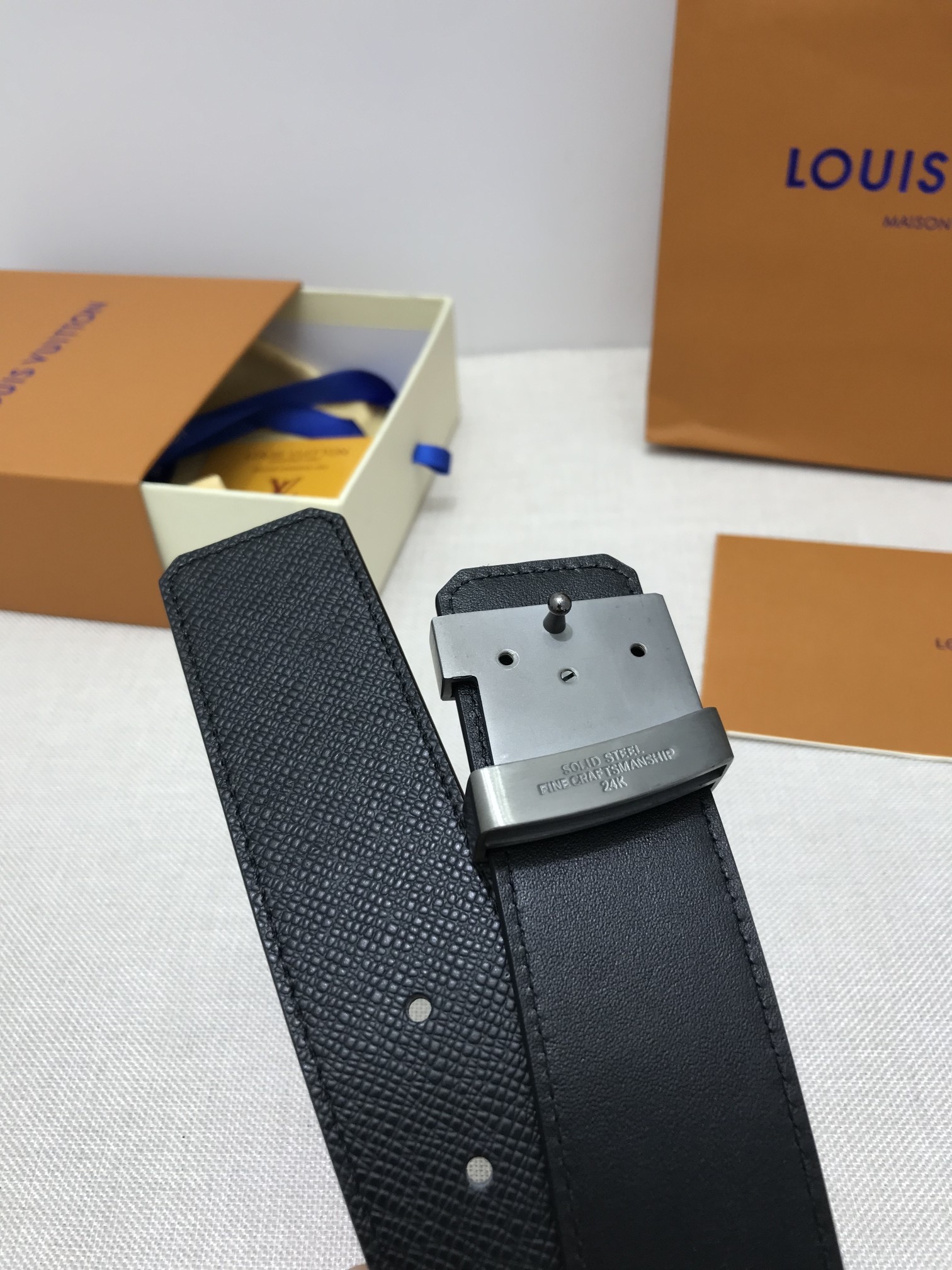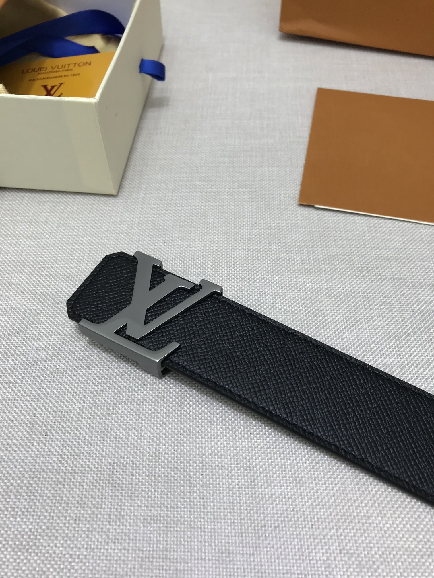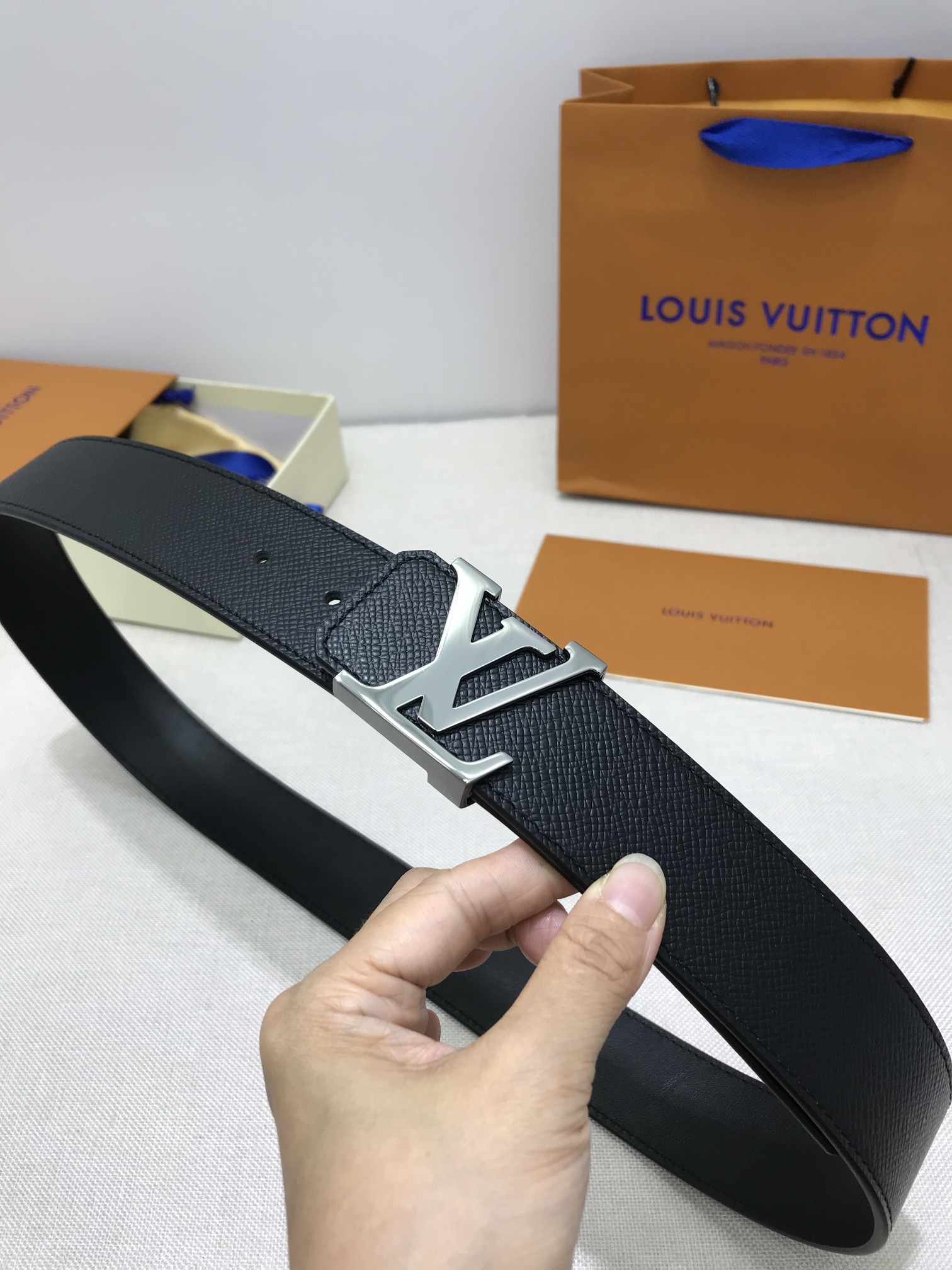 这款皮带是AAAAA 1:1 质量 (非常棒). 使用了和原版一模一样的材料. 商标部分也保持了和路易威登/Louis Vuitton一样. 图片拍摄是实物皮带拍摄, 您所收到的实物保证和我们图片一模一样.