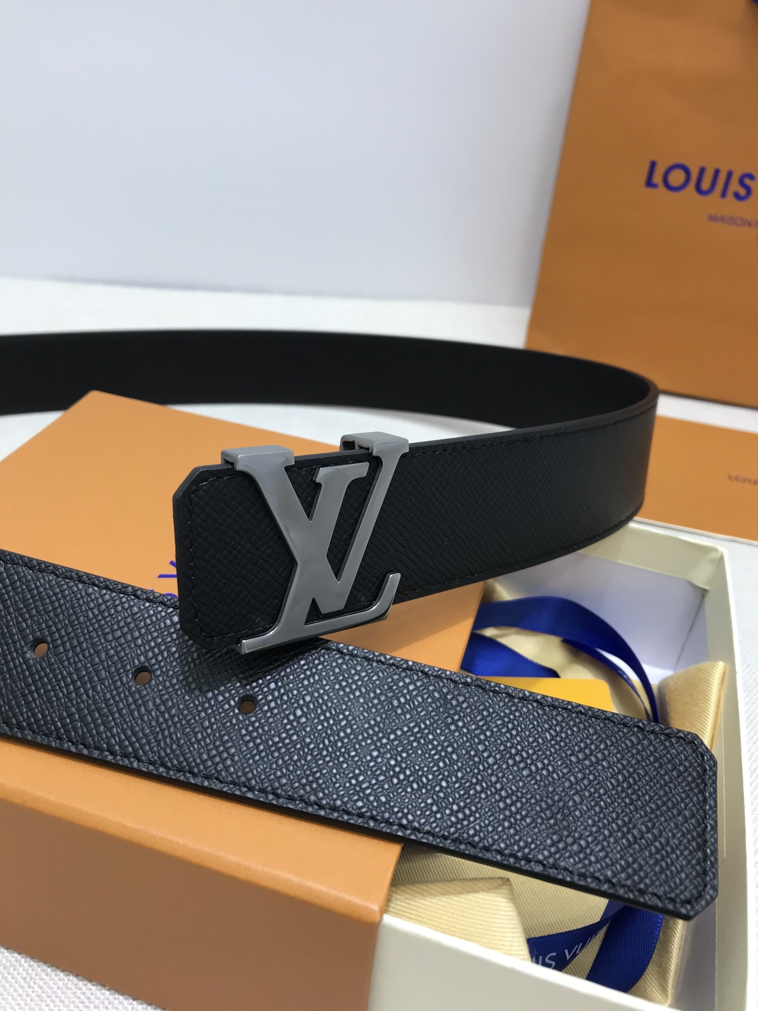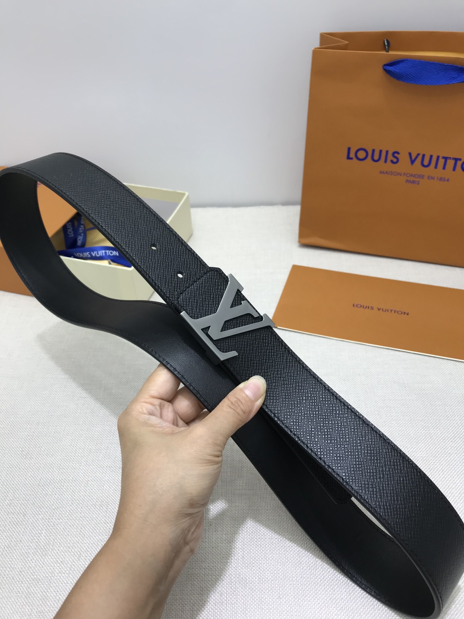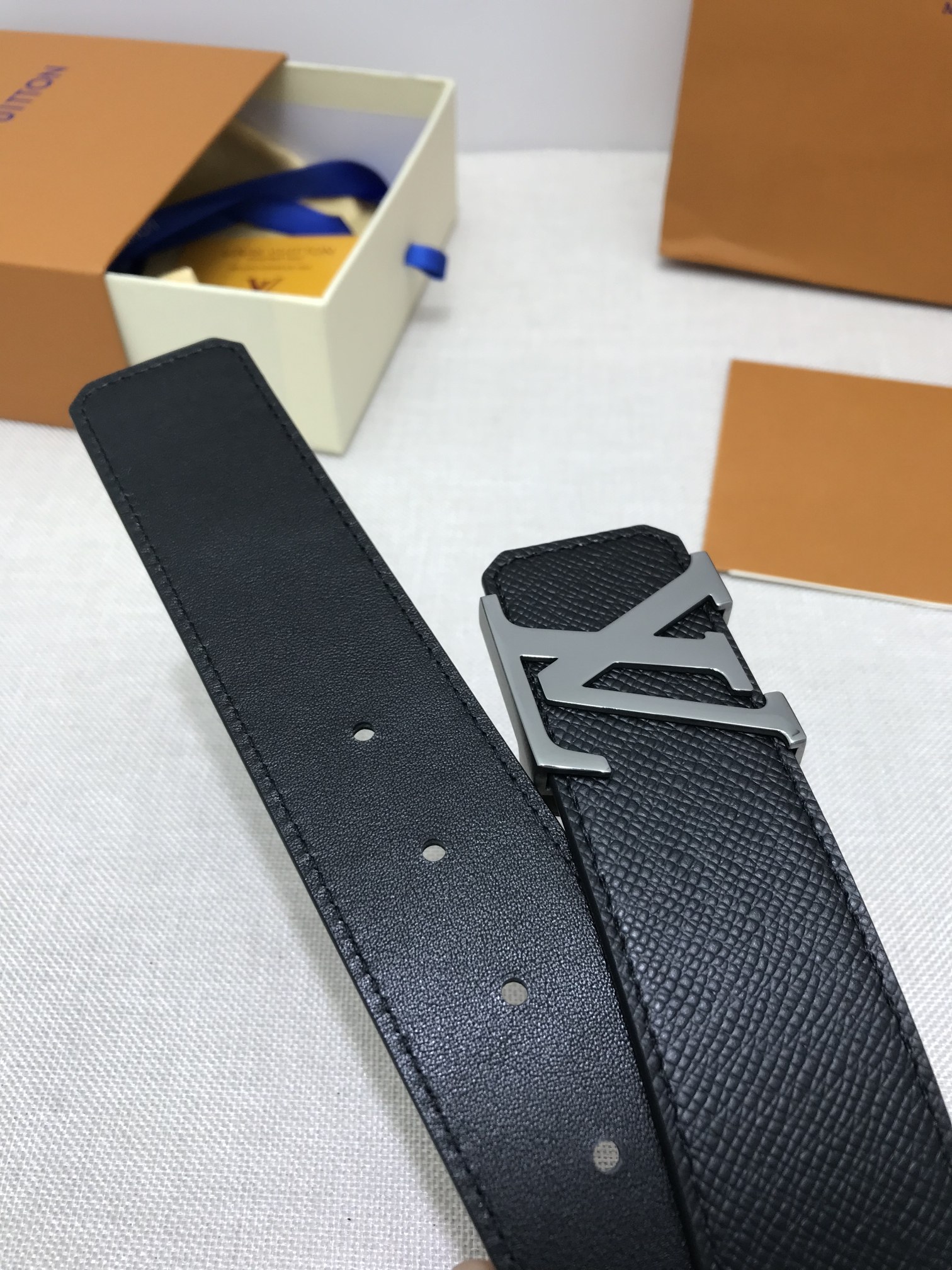 这款皮带是AAAAA 1:1 质量 (非常棒). 使用了和原版一模一样的材料. 商标部分也保持了和路易威登/Louis Vuitton一样. 图片拍摄是实物皮带拍摄, 您所收到的实物保证和我们图片一模一样.