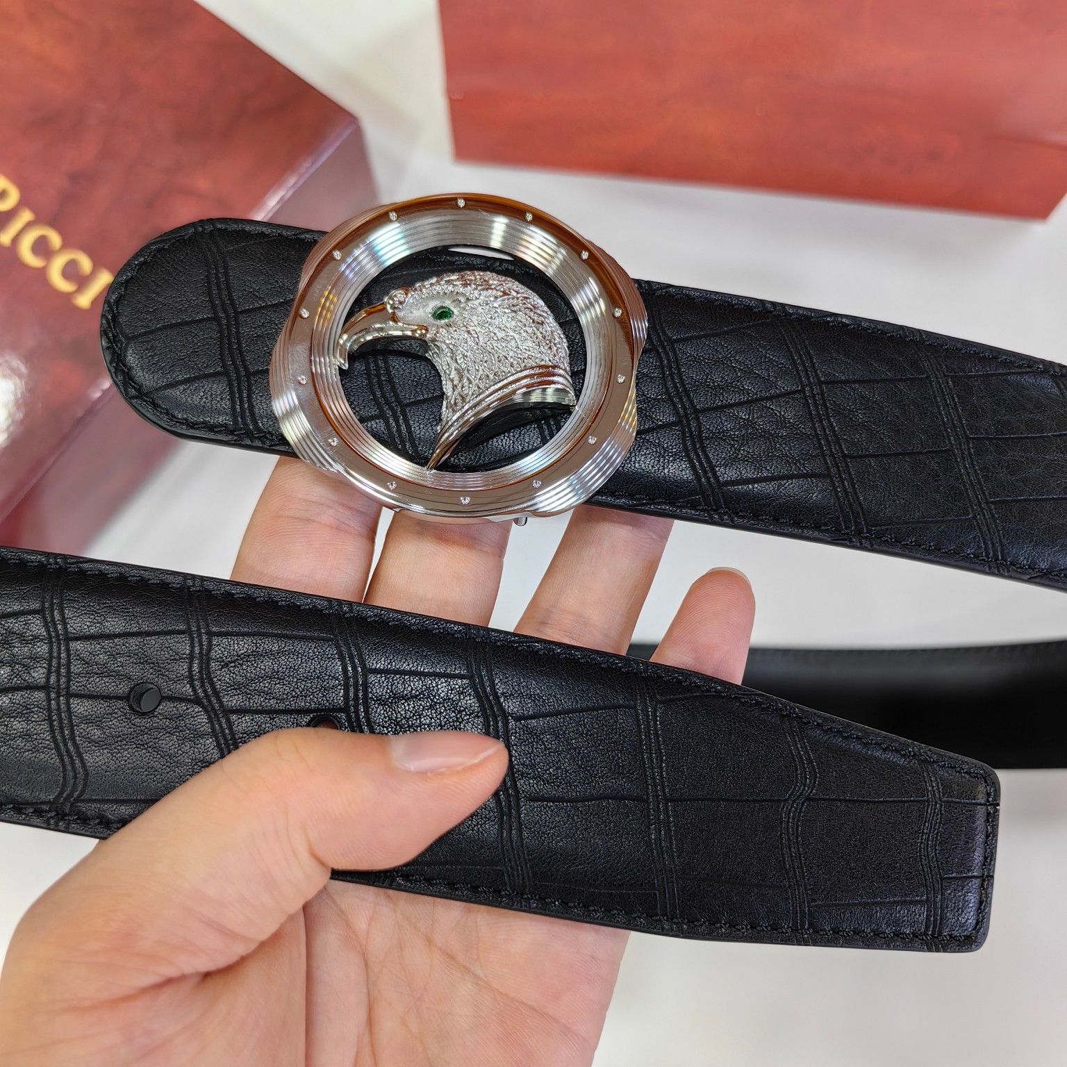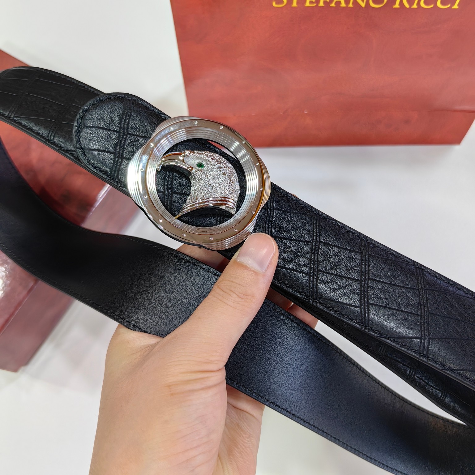 这款皮带是AAAAA 1:1 质量 (非常棒). 使用了和原版一模一样的材料. 商标部分也保持了和史蒂芬劳.尼治/Stefano Ricci一样. 图片拍摄是实物皮带拍摄, 您所收到的实物保证和我们图片一模一样.