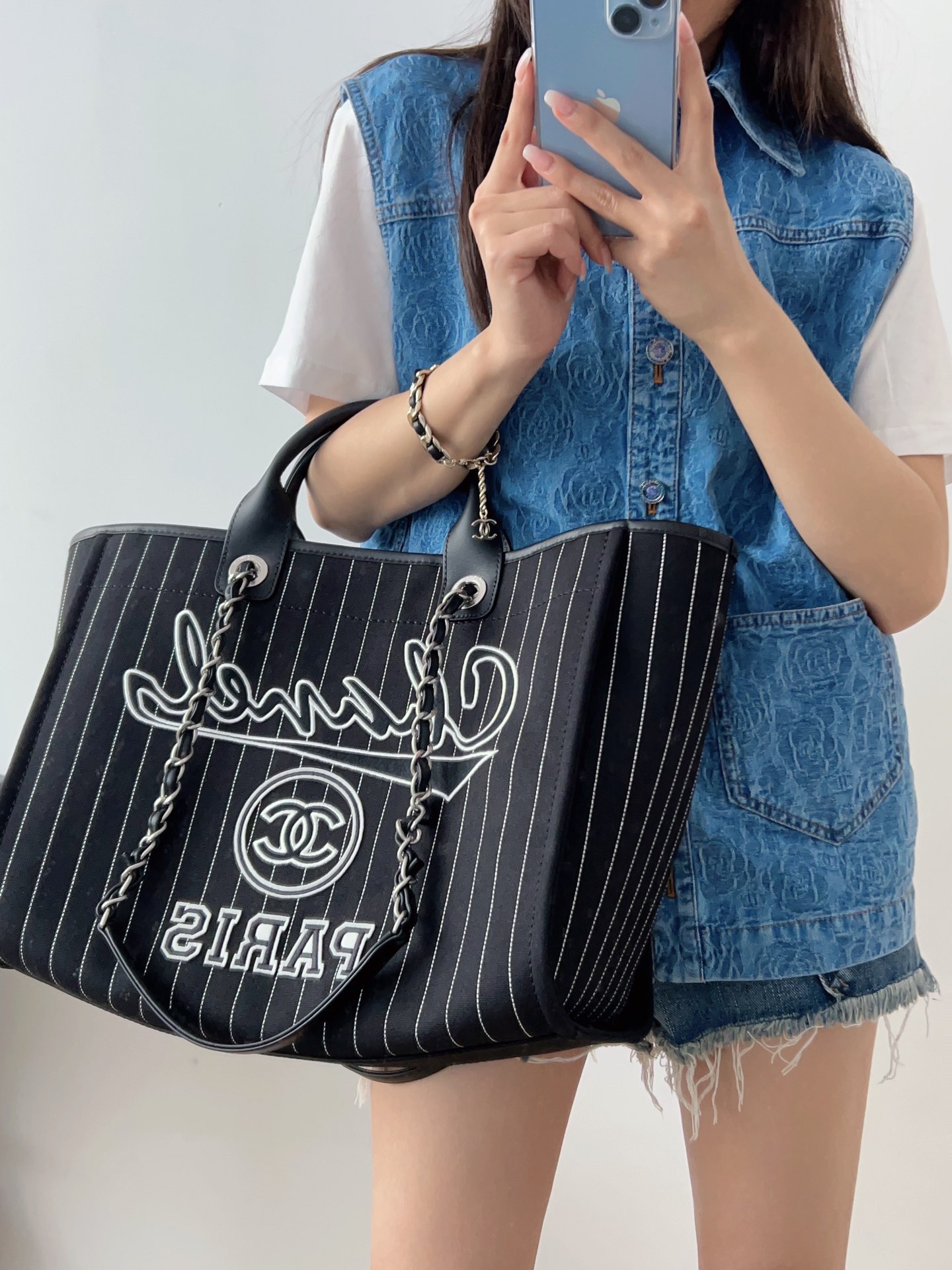 这款包包是AAAAA 1:1 质量 (非常棒). 使用了和原版一模一样的材料. 商标部分也保持了和香奈儿/Chanel一样. 图片拍摄是实物包包拍摄, 您所收到的实物保证和我们图片一模一样.