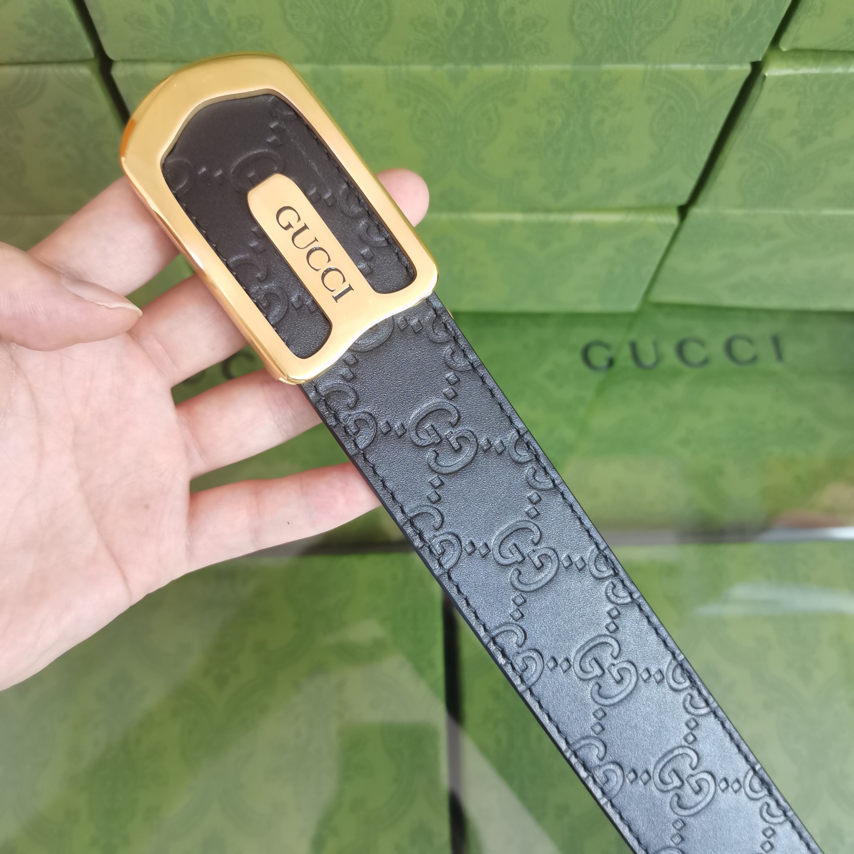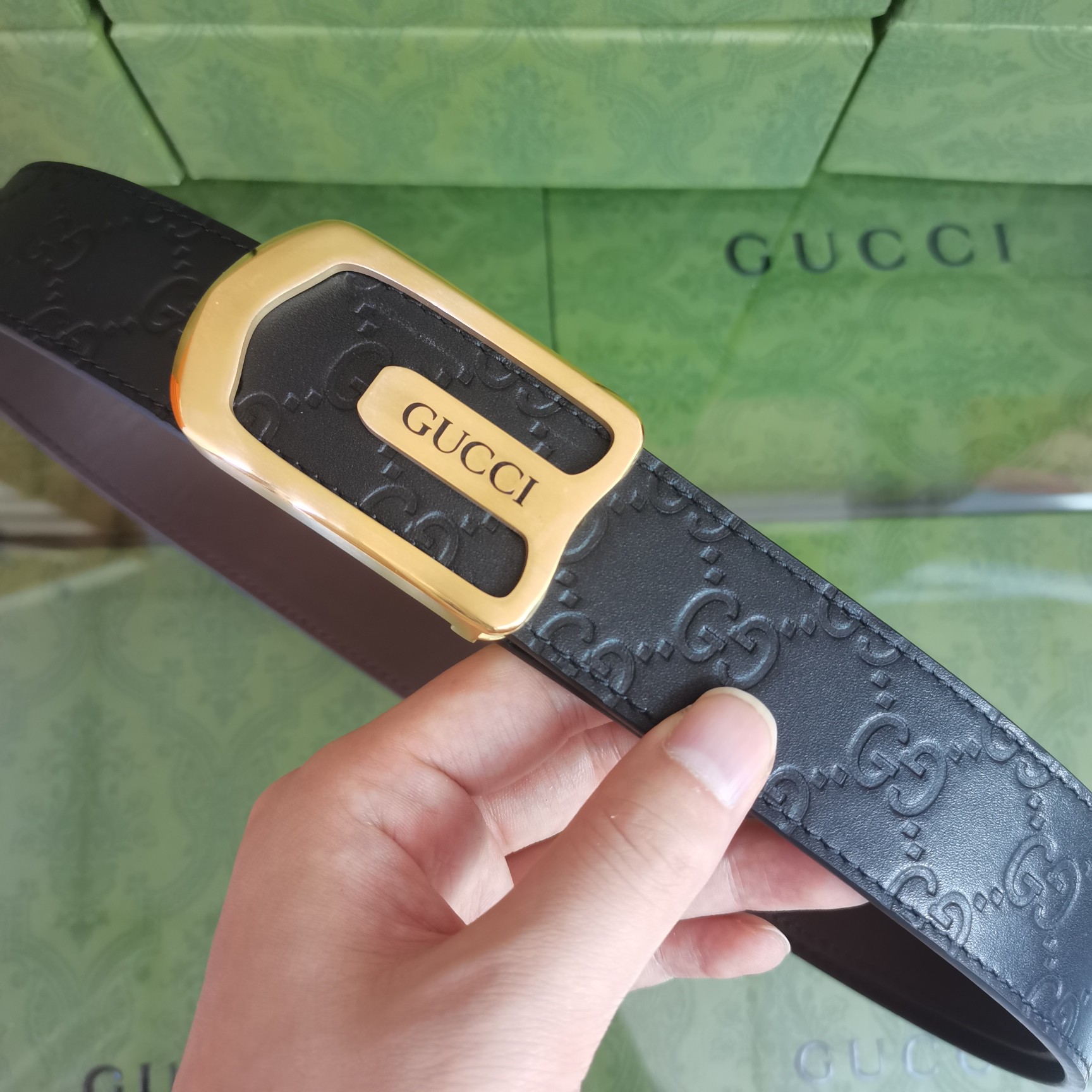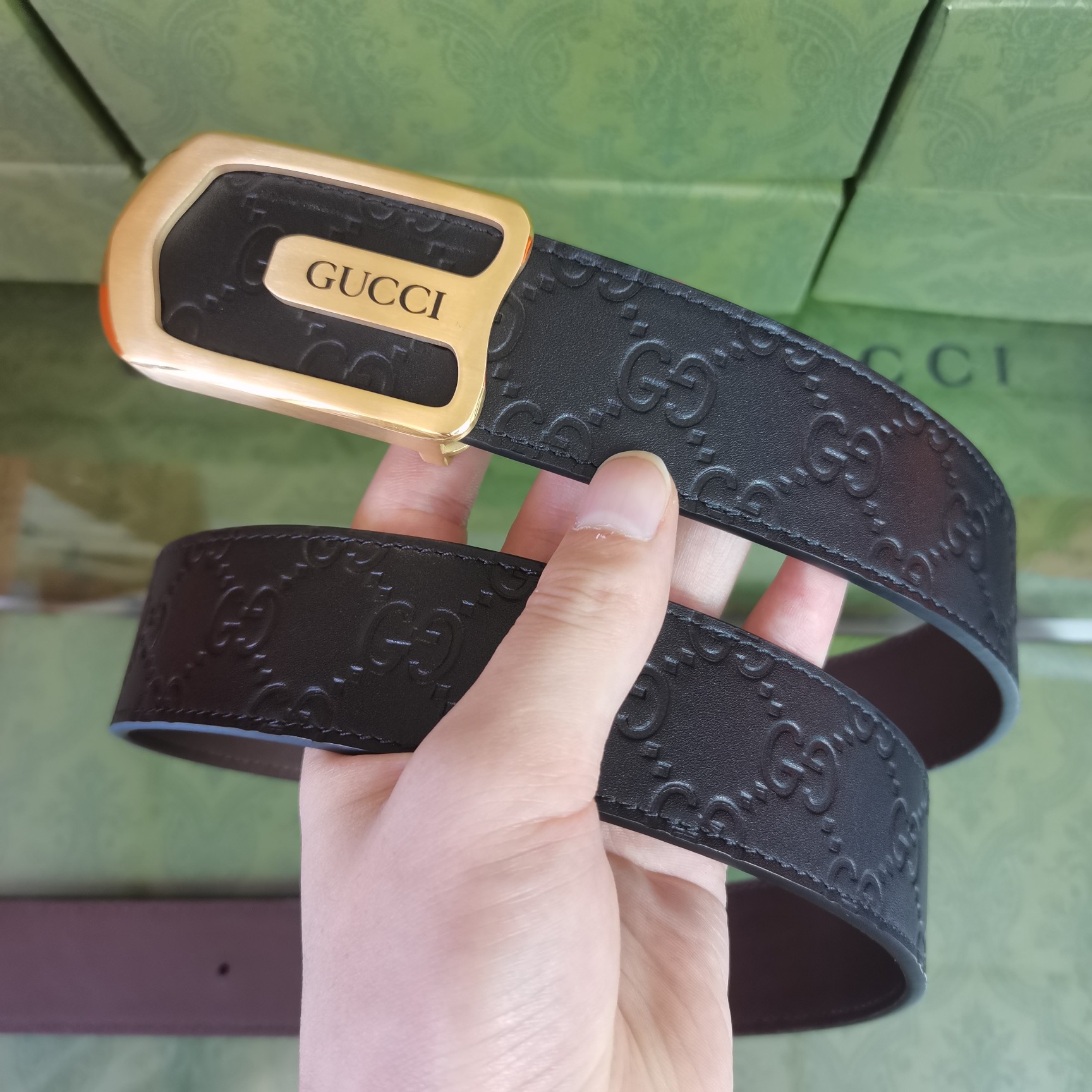这款皮带是AAAAA 1:1 质量 (非常棒). 使用了和原版一模一样的材料. 商标部分也保持了和古奇/Gucci一样. 图片拍摄是实物皮带拍摄, 您所收到的实物保证和我们图片一模一样.