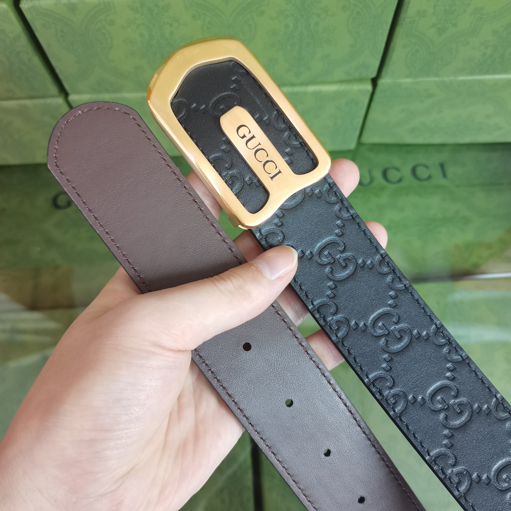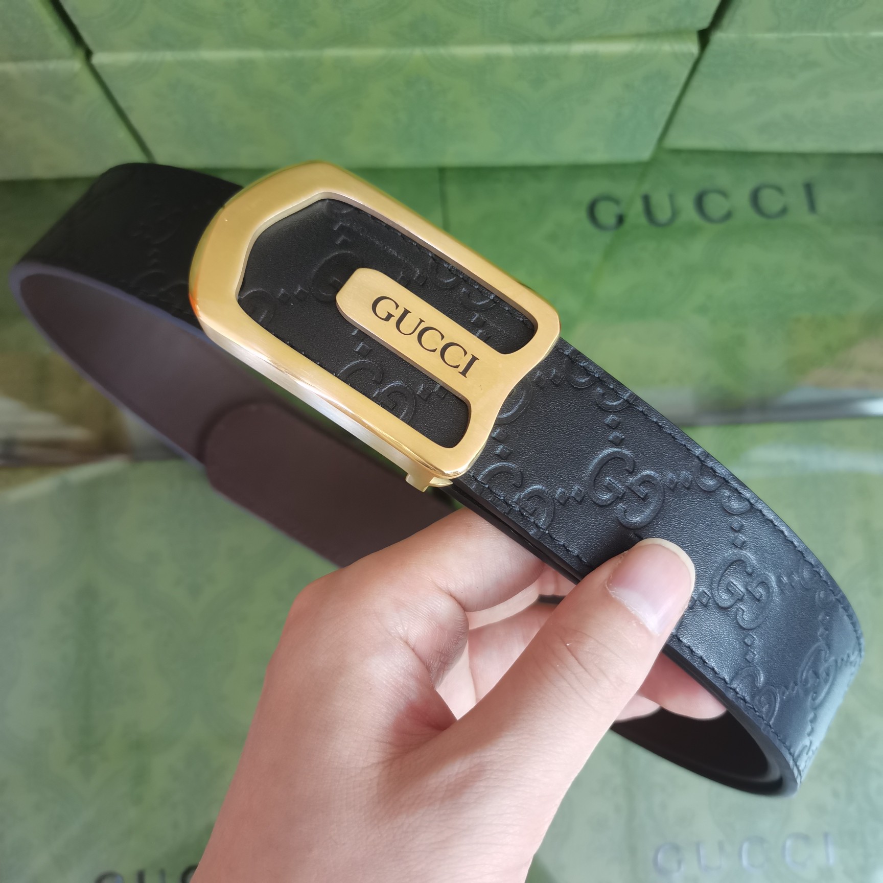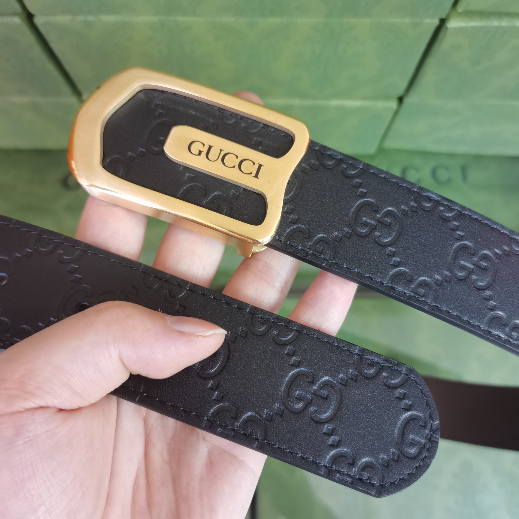 这款皮带是AAAAA 1:1 质量 (非常棒). 使用了和原版一模一样的材料. 商标部分也保持了和古奇/Gucci一样. 图片拍摄是实物皮带拍摄, 您所收到的实物保证和我们图片一模一样.