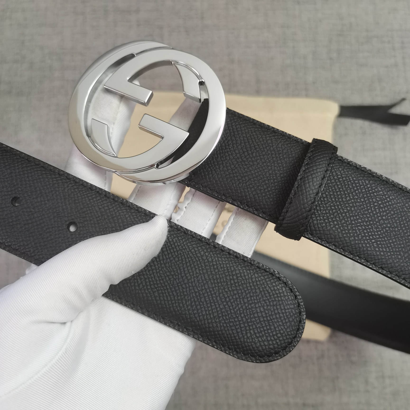 这款皮带是AAAAA 1:1 质量 (非常棒). 使用了和原版一模一样的材料. 商标部分也保持了和古奇/Gucci一样. 图片拍摄是实物皮带拍摄, 您所收到的实物保证和我们图片一模一样.