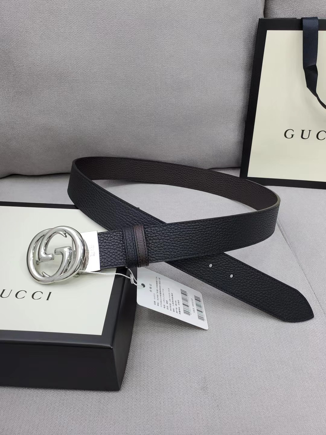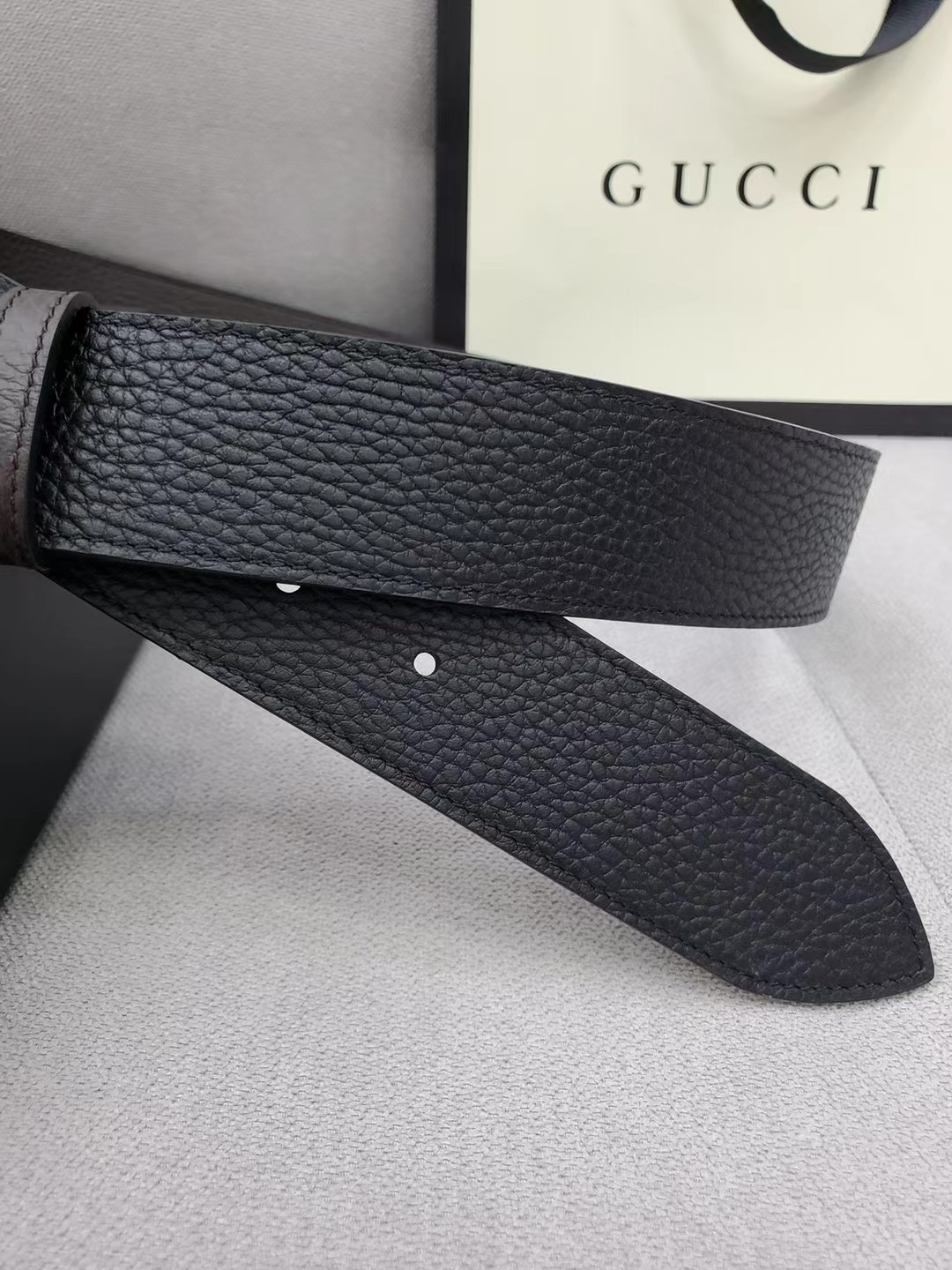 这款皮带是AAAAA 1:1 质量 (非常棒). 使用了和原版一模一样的材料. 商标部分也保持了和古奇/Gucci一样. 图片拍摄是实物皮带拍摄, 您所收到的实物保证和我们图片一模一样.