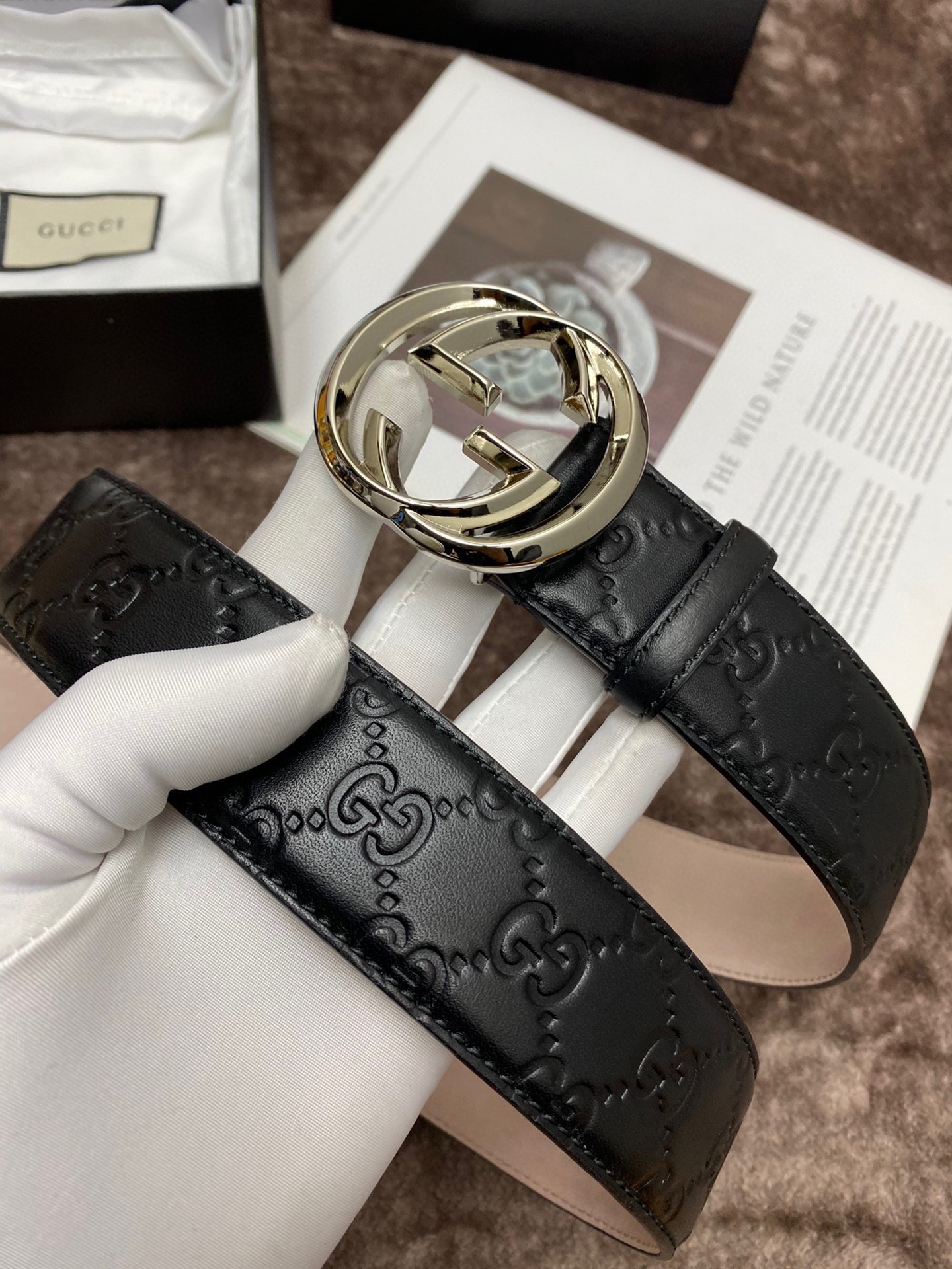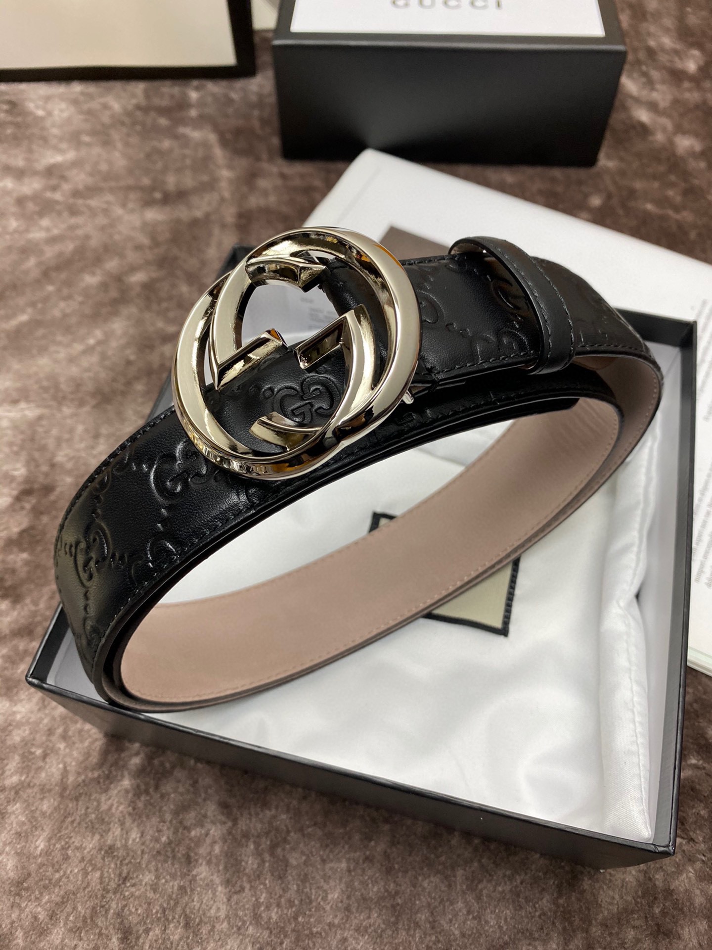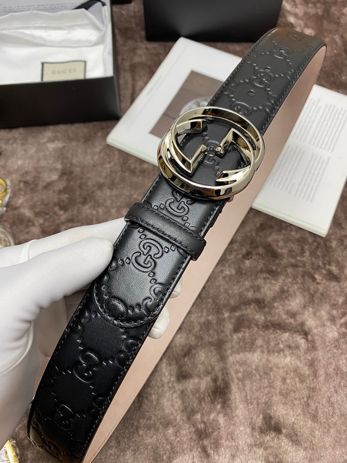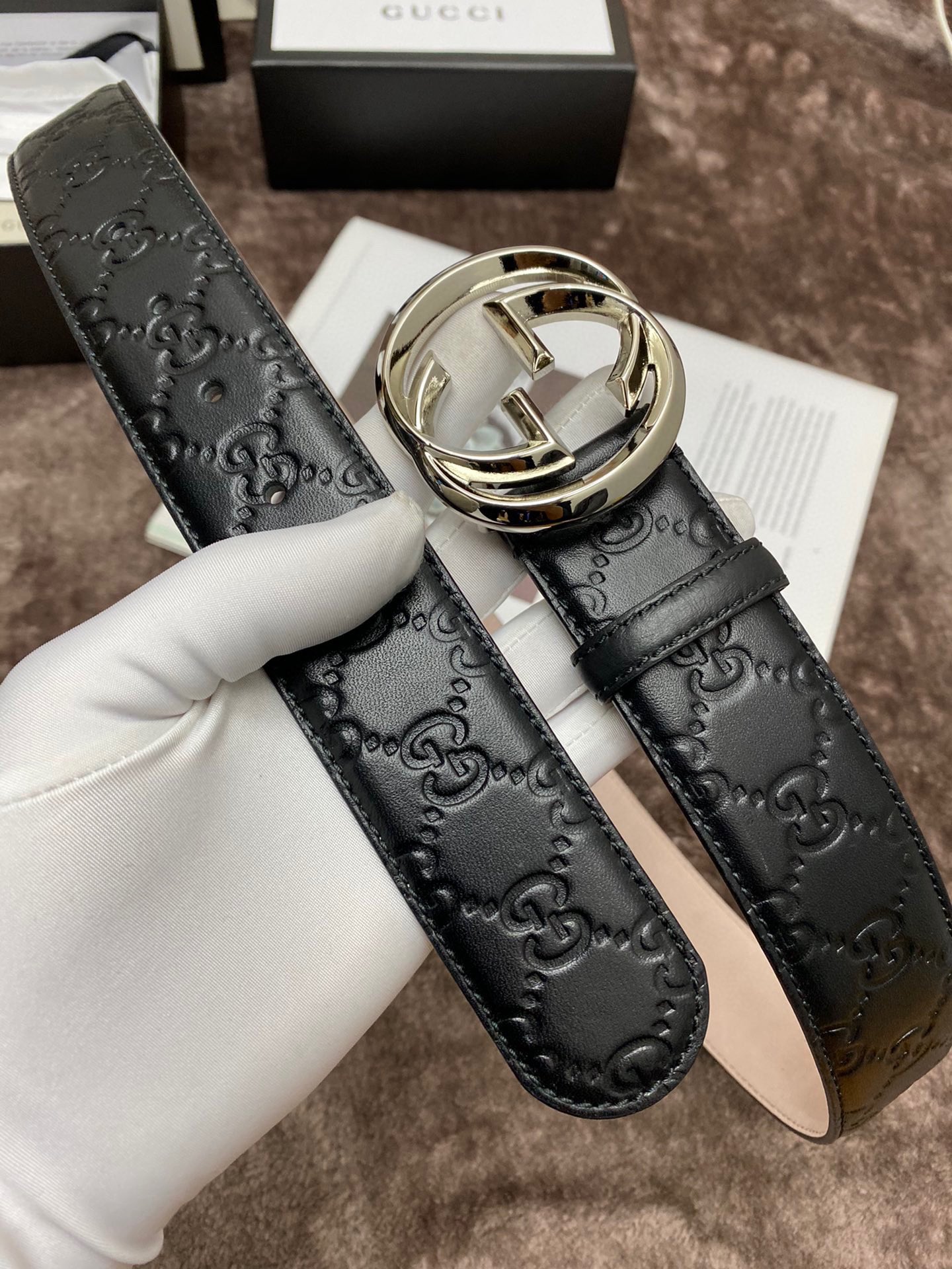 这款皮带是AAAAA 1:1 质量 (非常棒). 使用了和原版一模一样的材料. 商标部分也保持了和古奇/Gucci一样. 图片拍摄是实物皮带拍摄, 您所收到的实物保证和我们图片一模一样.