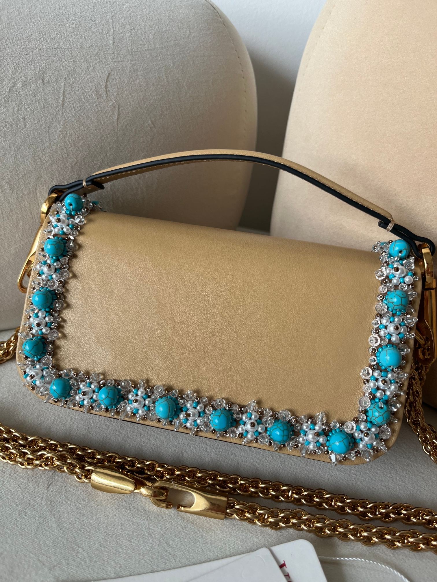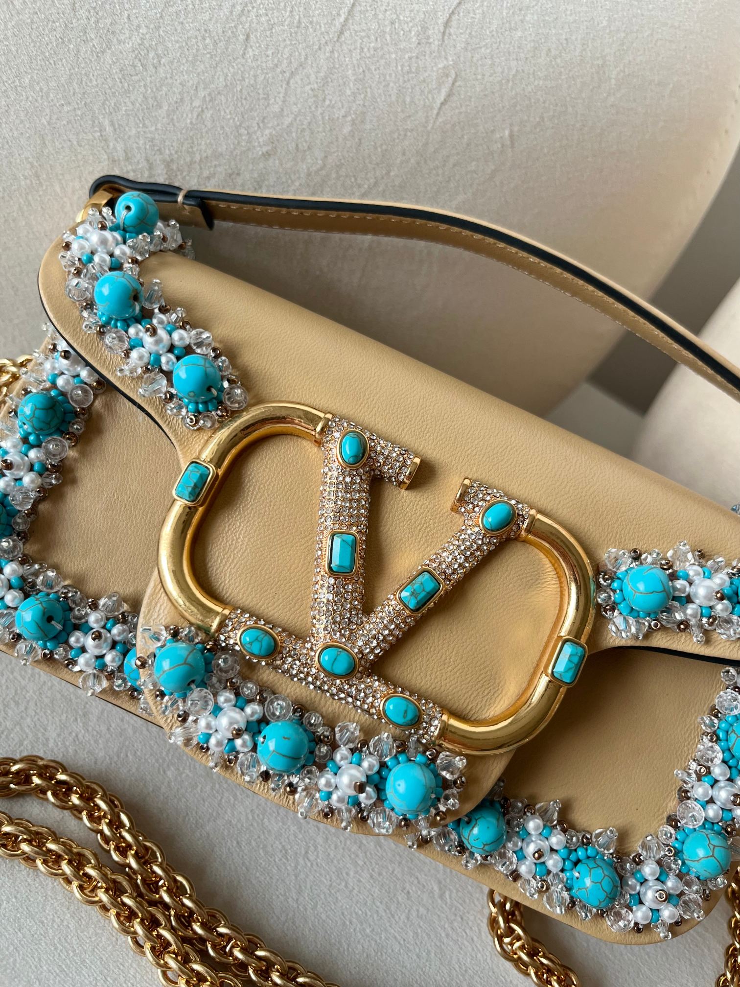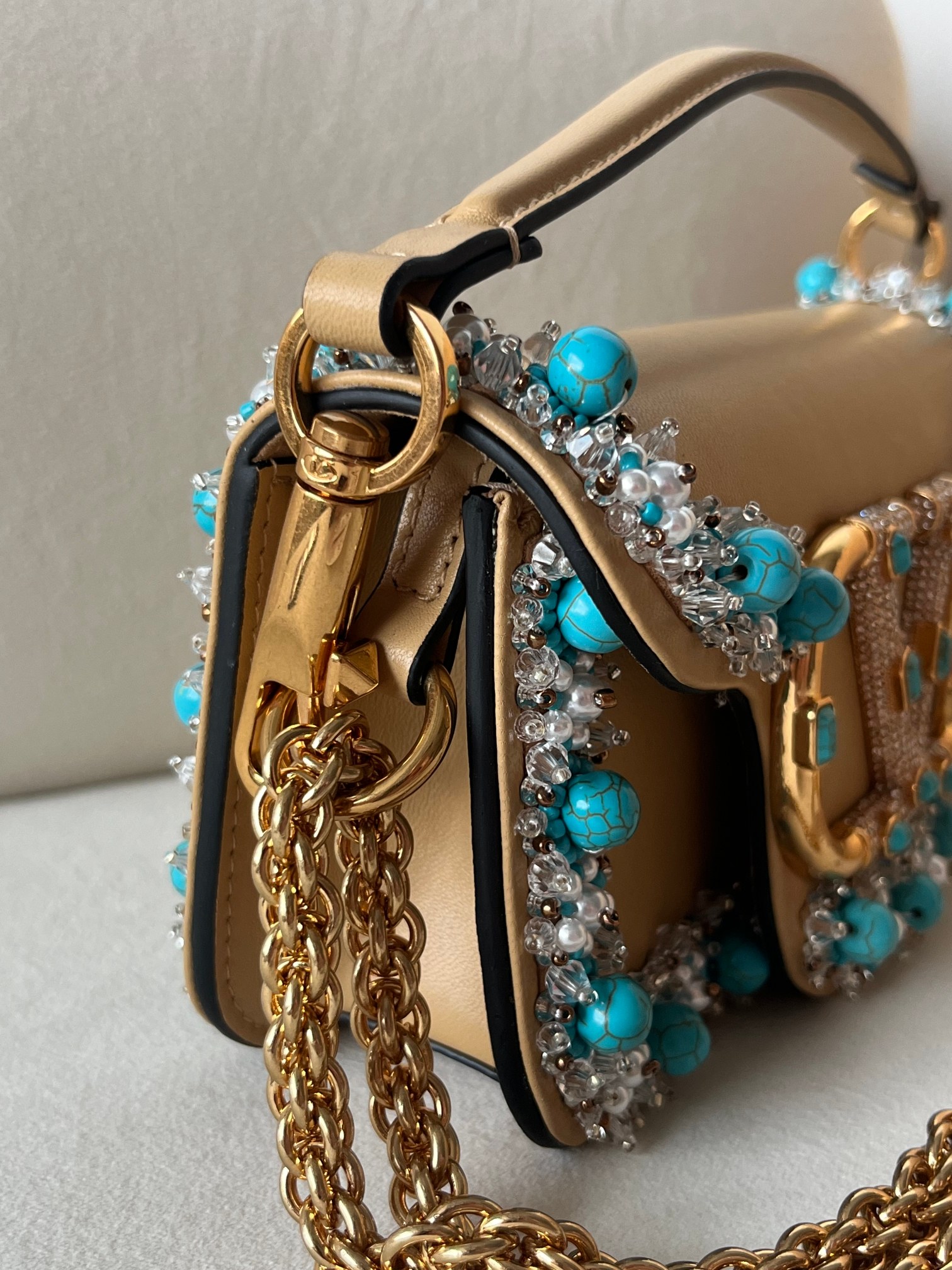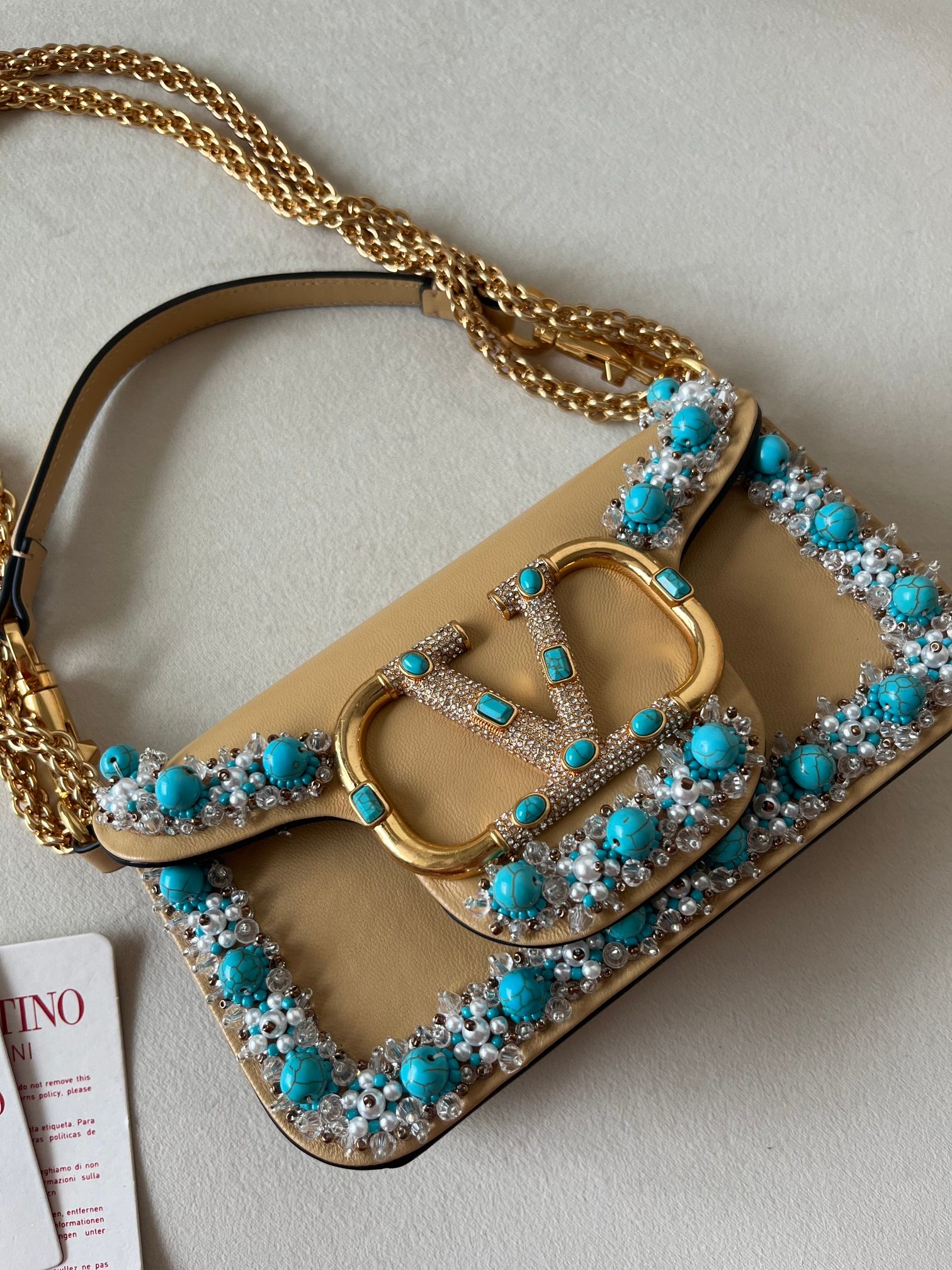 这款包包是AAAAA 1:1 质量 (非常棒). 使用了和原版一模一样的材料. 商标部分也保持了和华伦天奴/Valentino一样. 图片拍摄是实物包包拍摄, 您所收到的实物保证和我们图片一模一样.