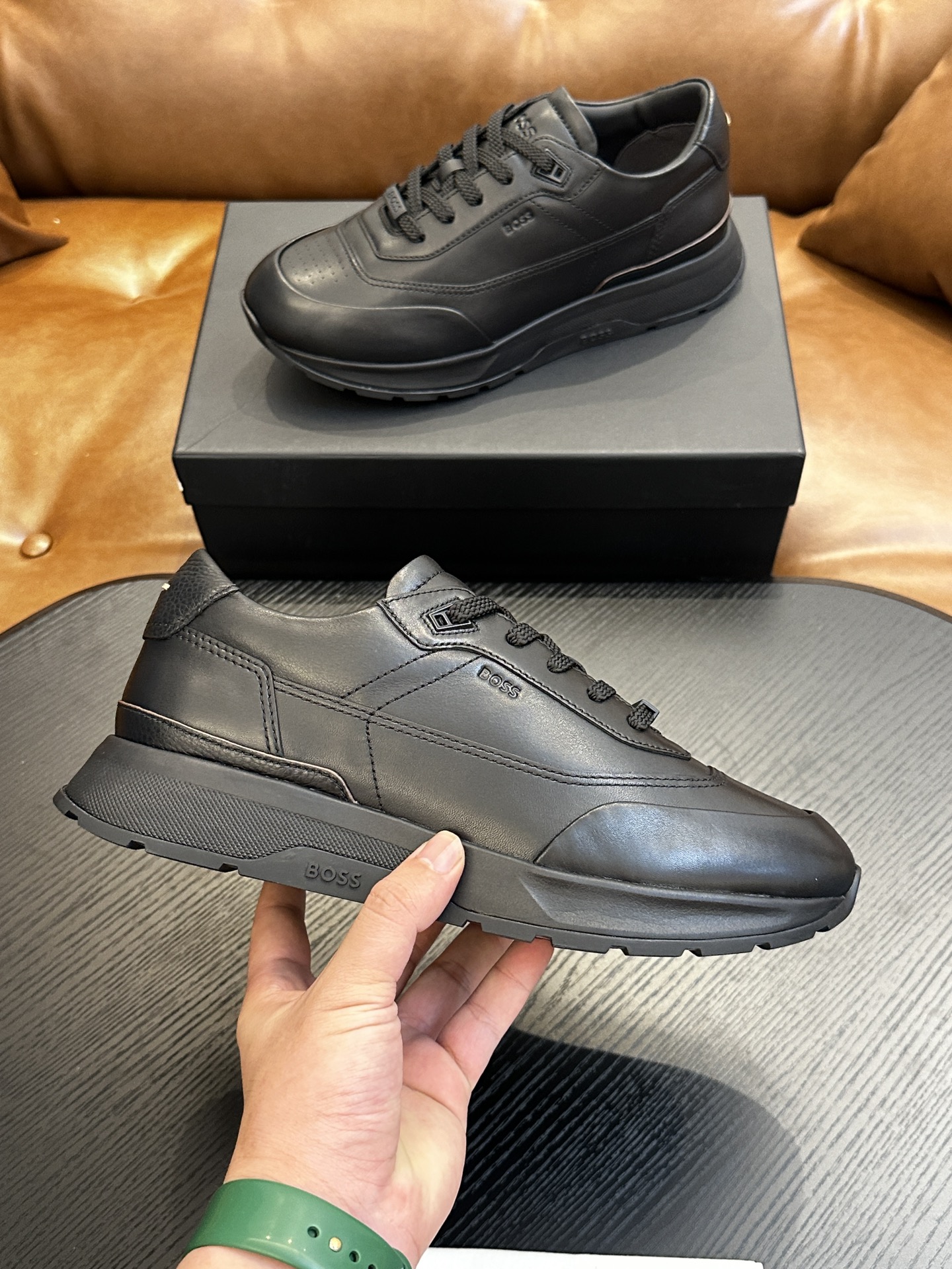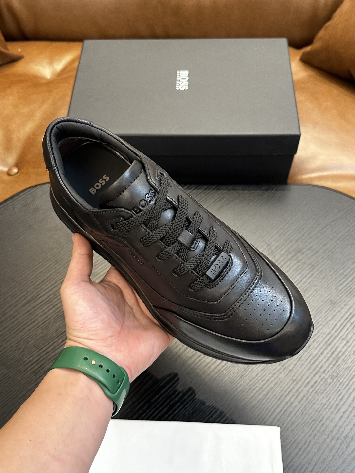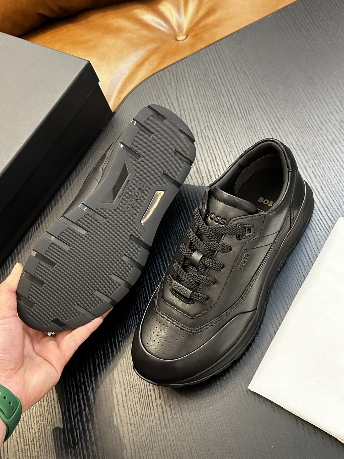 这款鞋子是AAAAA 1:1 质量 (非常棒). 使用了和原版一模一样的材料. 商标部分也保持了和BOSS一样. 图片拍摄是实物鞋子拍摄, 您所收到的实物保证和我们图片一模一样.
