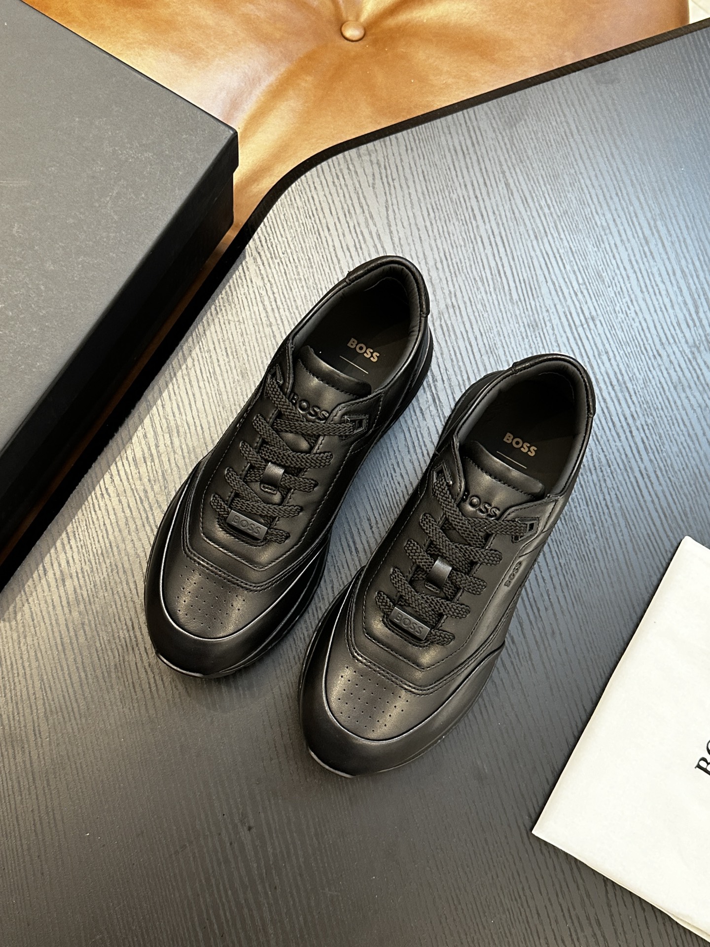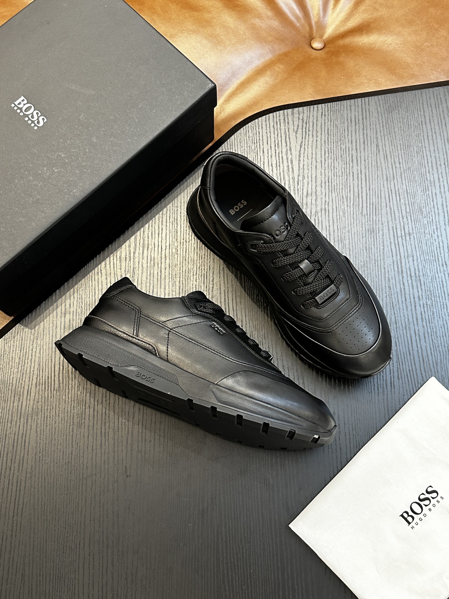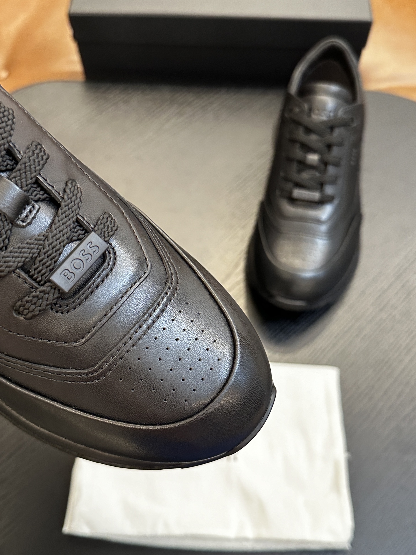 这款鞋子是AAAAA 1:1 质量 (非常棒). 使用了和原版一模一样的材料. 商标部分也保持了和BOSS一样. 图片拍摄是实物鞋子拍摄, 您所收到的实物保证和我们图片一模一样.
