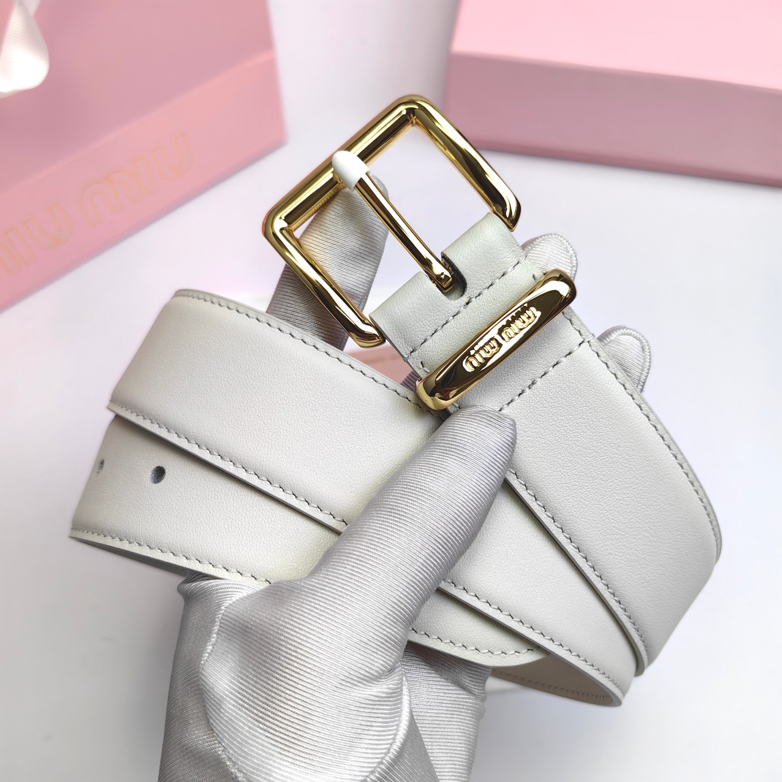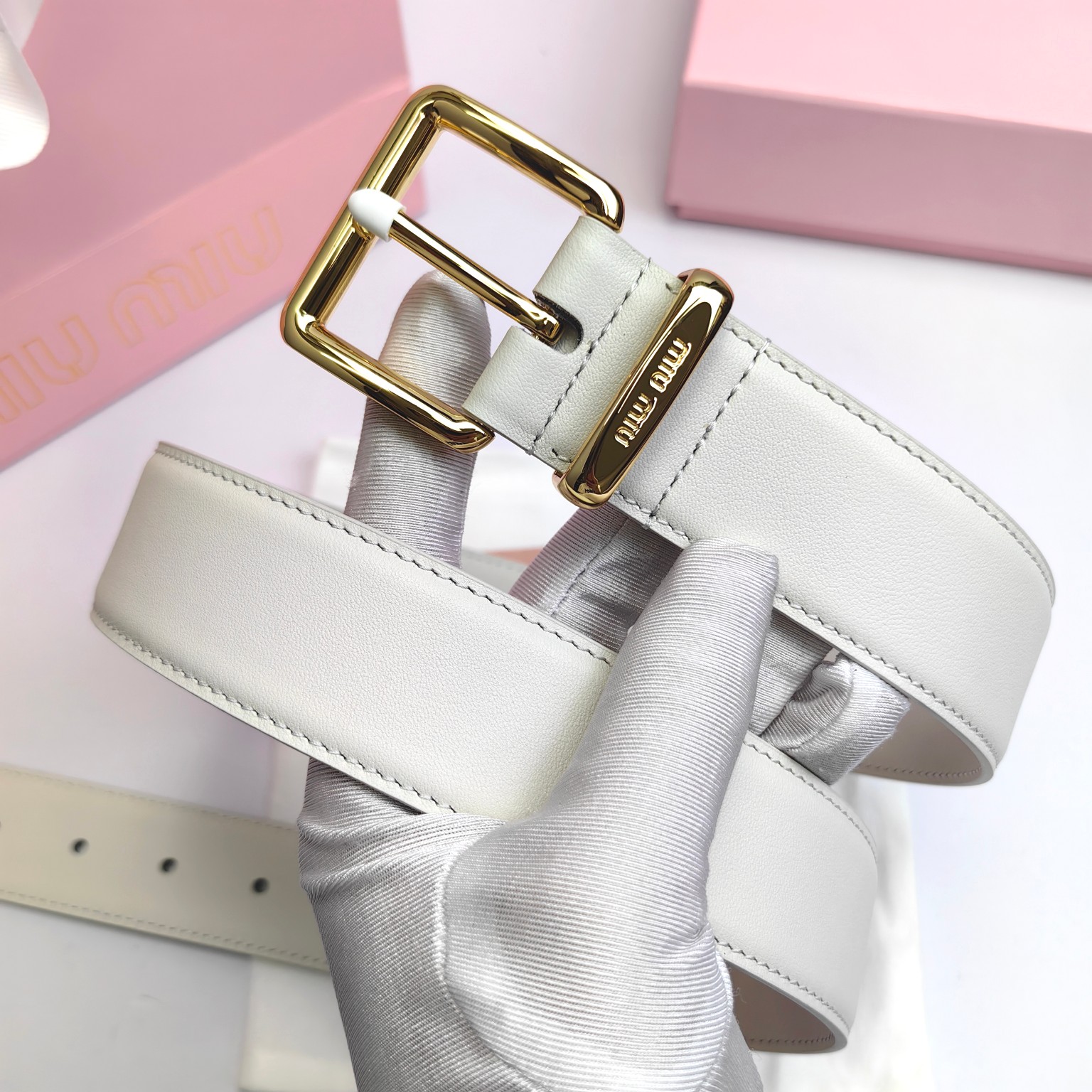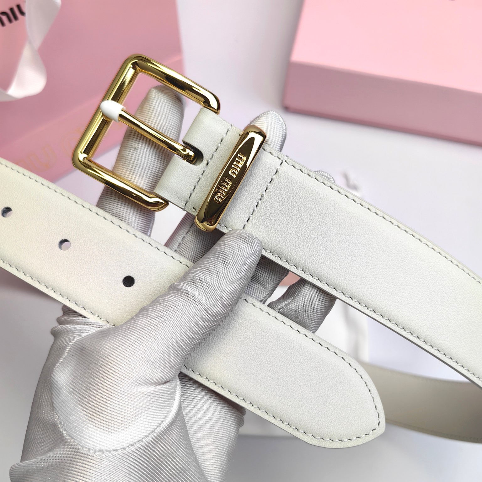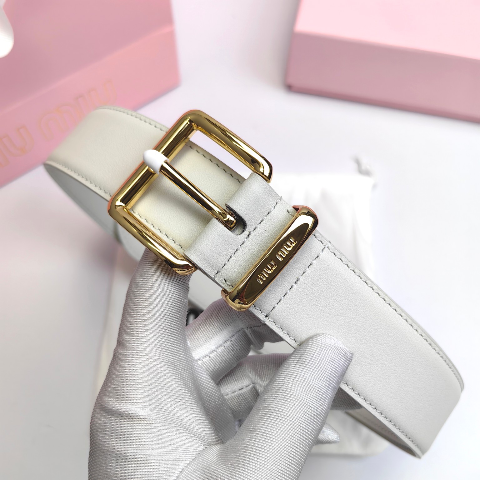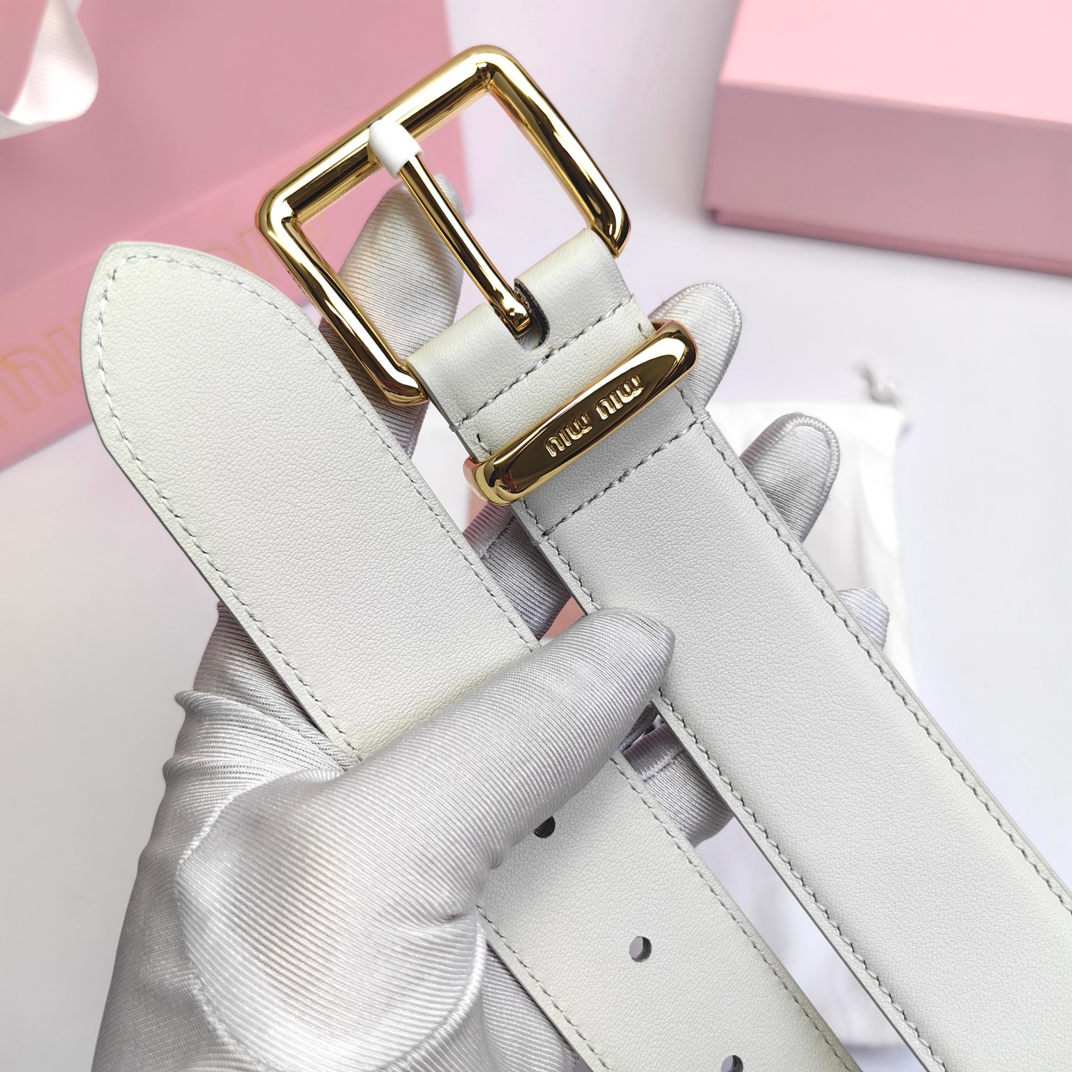 这款皮带是AAAAA 1:1 质量 (非常棒). 使用了和原版一模一样的材料. 商标部分也保持了和缪缪/Miu Miu一样. 图片拍摄是实物皮带拍摄, 您所收到的实物保证和我们图片一模一样.