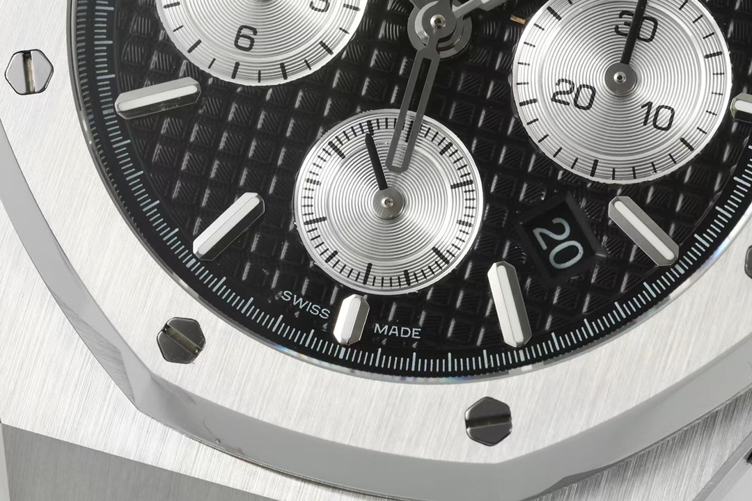 这款手表是AAAAA 1:1 质量 (非常棒). 使用了和原版一模一样的材料. 商标部分也保持了和爱彼/Audemars Piguet一样. 图片拍摄是实物手表拍摄, 您所收到的实物保证和我们图片一模一样.