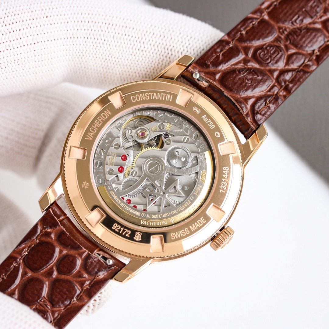 这款手表是AAAAA 1:1 质量 (非常棒). 使用了和原版一模一样的材料. 商标部分也保持了和江诗丹顿/Vacheron Constantin一样. 图片拍摄是实物手表拍摄, 您所收到的实物保证和我们图片一模一样.
