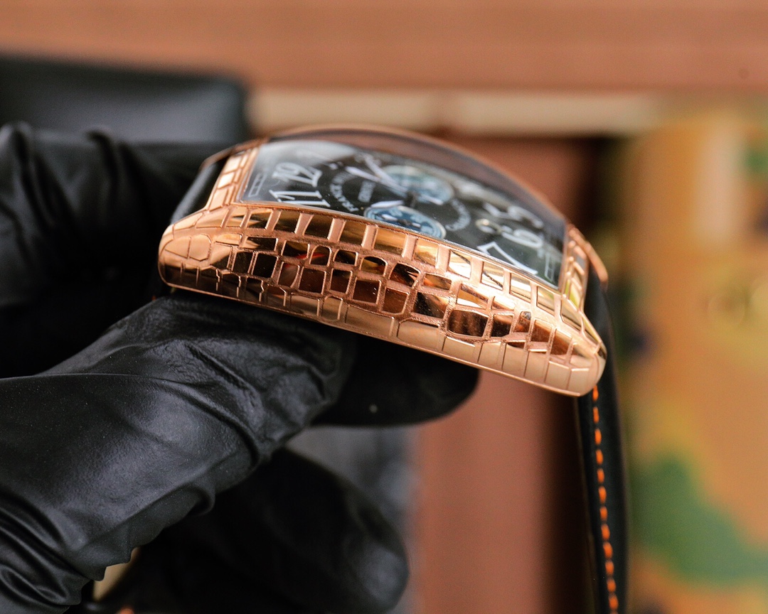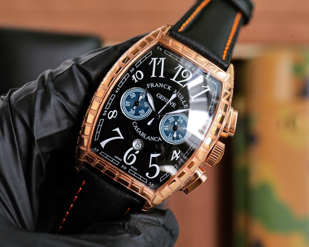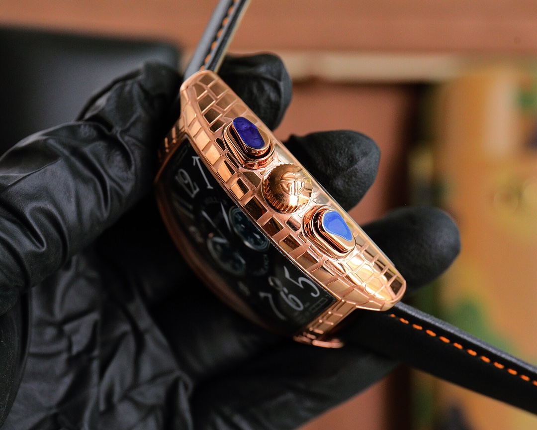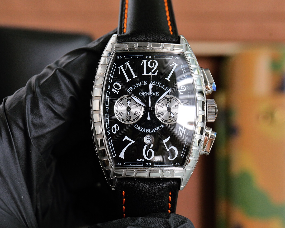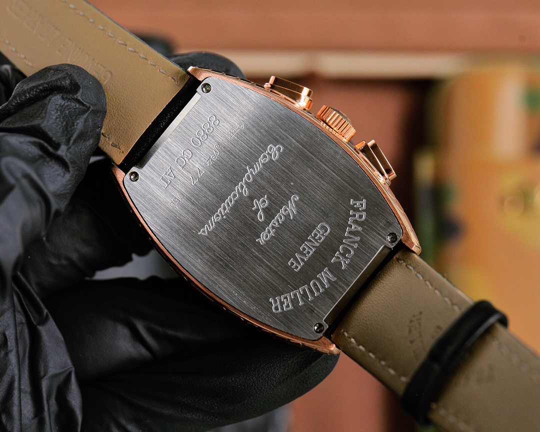 这款手表是AAAAA 1:1 质量 (非常棒). 使用了和原版一模一样的材料. 商标部分也保持了和Franck Mulle一样. 图片拍摄是实物手表拍摄, 您所收到的实物保证和我们图片一模一样.