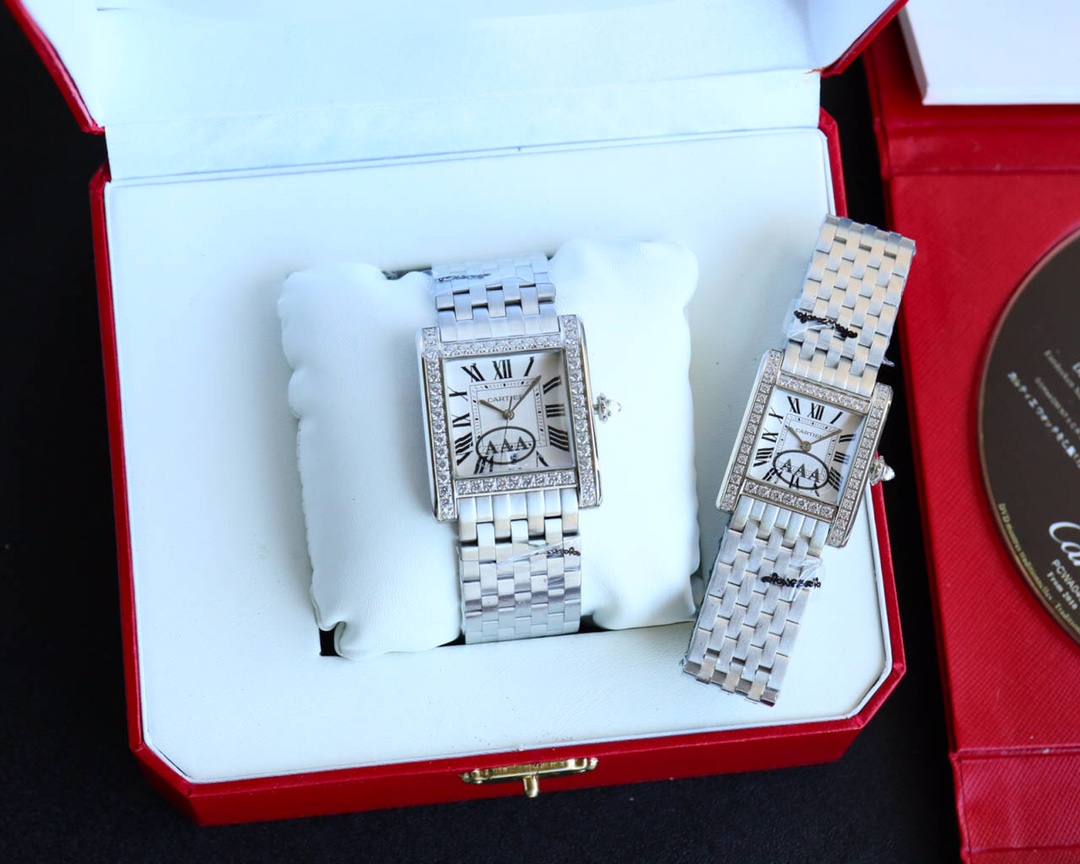 这款手表是AAAAA 1:1 质量 (非常棒). 使用了和原版一模一样的材料. 商标部分也保持了和卡地亚/Cartier一样. 图片拍摄是实物手表拍摄, 您所收到的实物保证和我们图片一模一样.