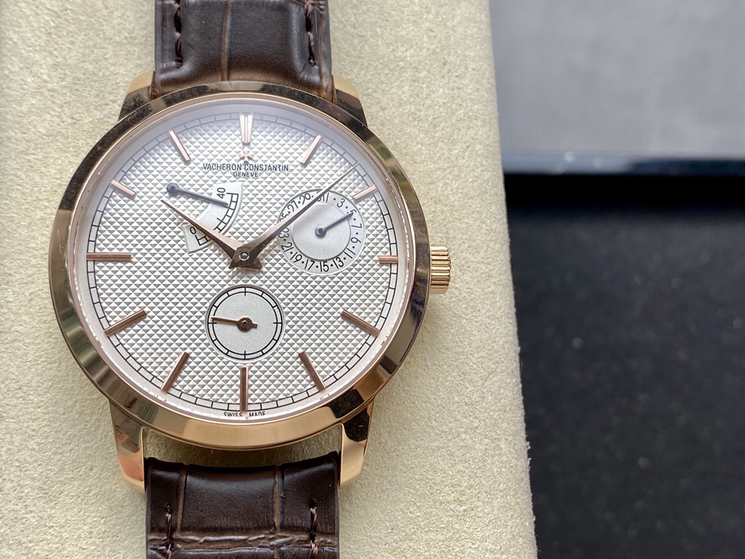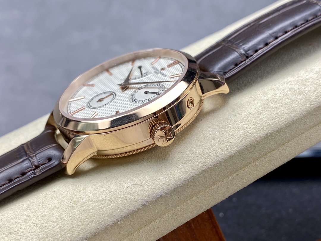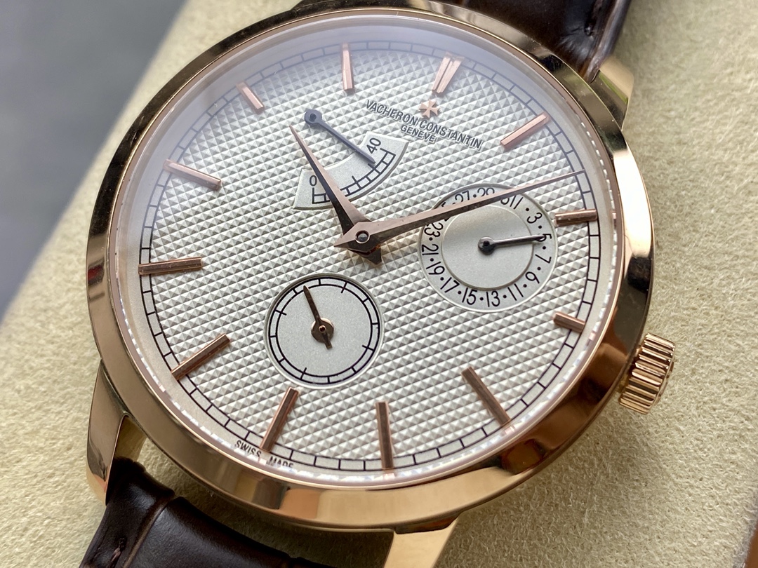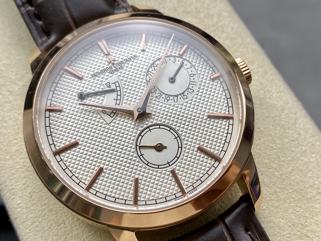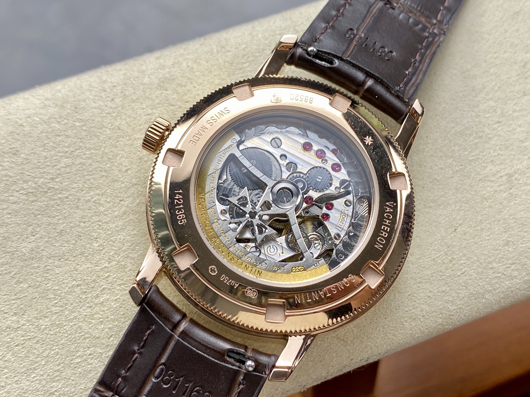 这款手表是AAAAA 1:1 质量 (非常棒). 使用了和原版一模一样的材料. 商标部分也保持了和江诗丹顿/Vacheron Constantin一样. 图片拍摄是实物手表拍摄, 您所收到的实物保证和我们图片一模一样.