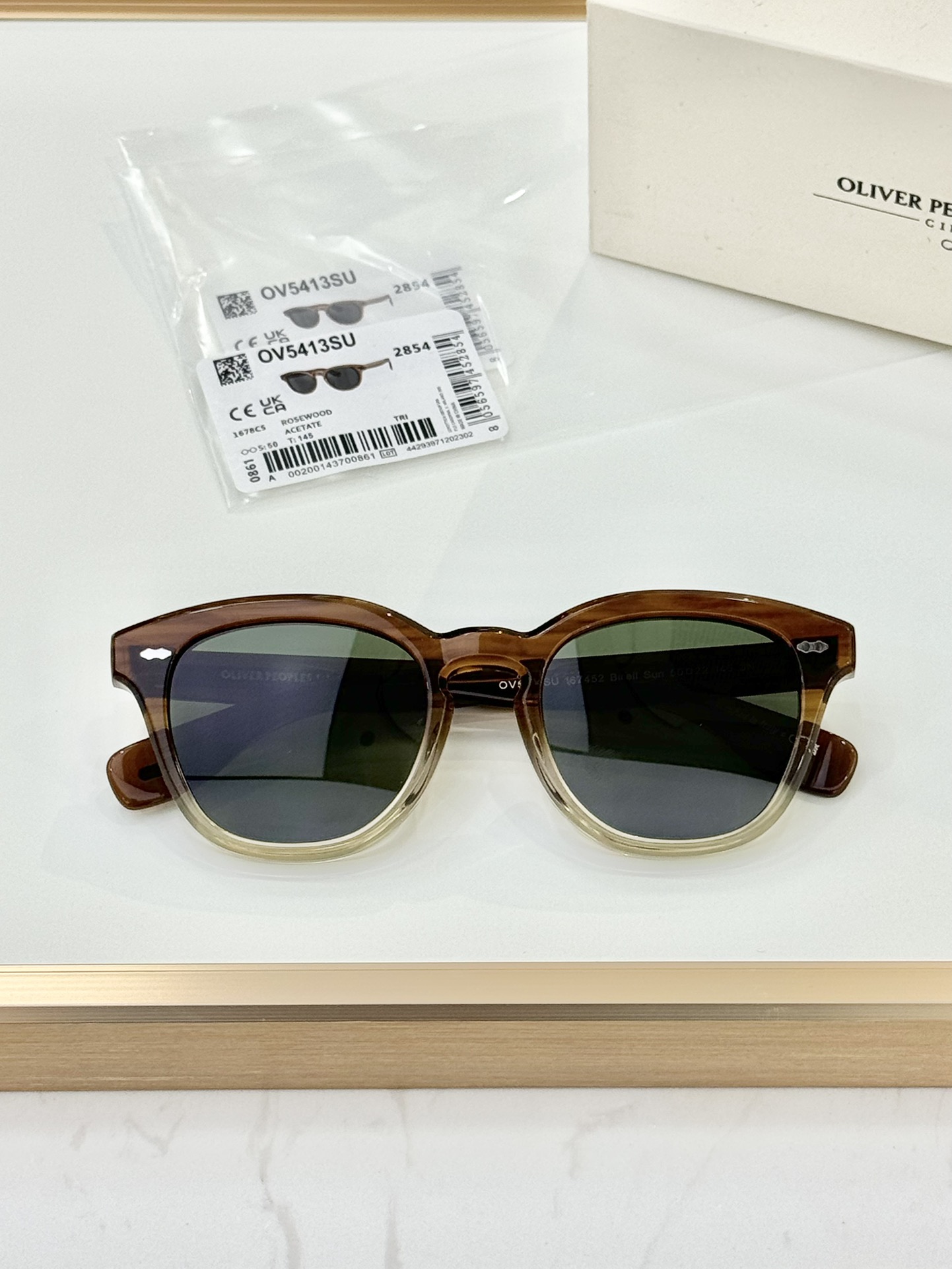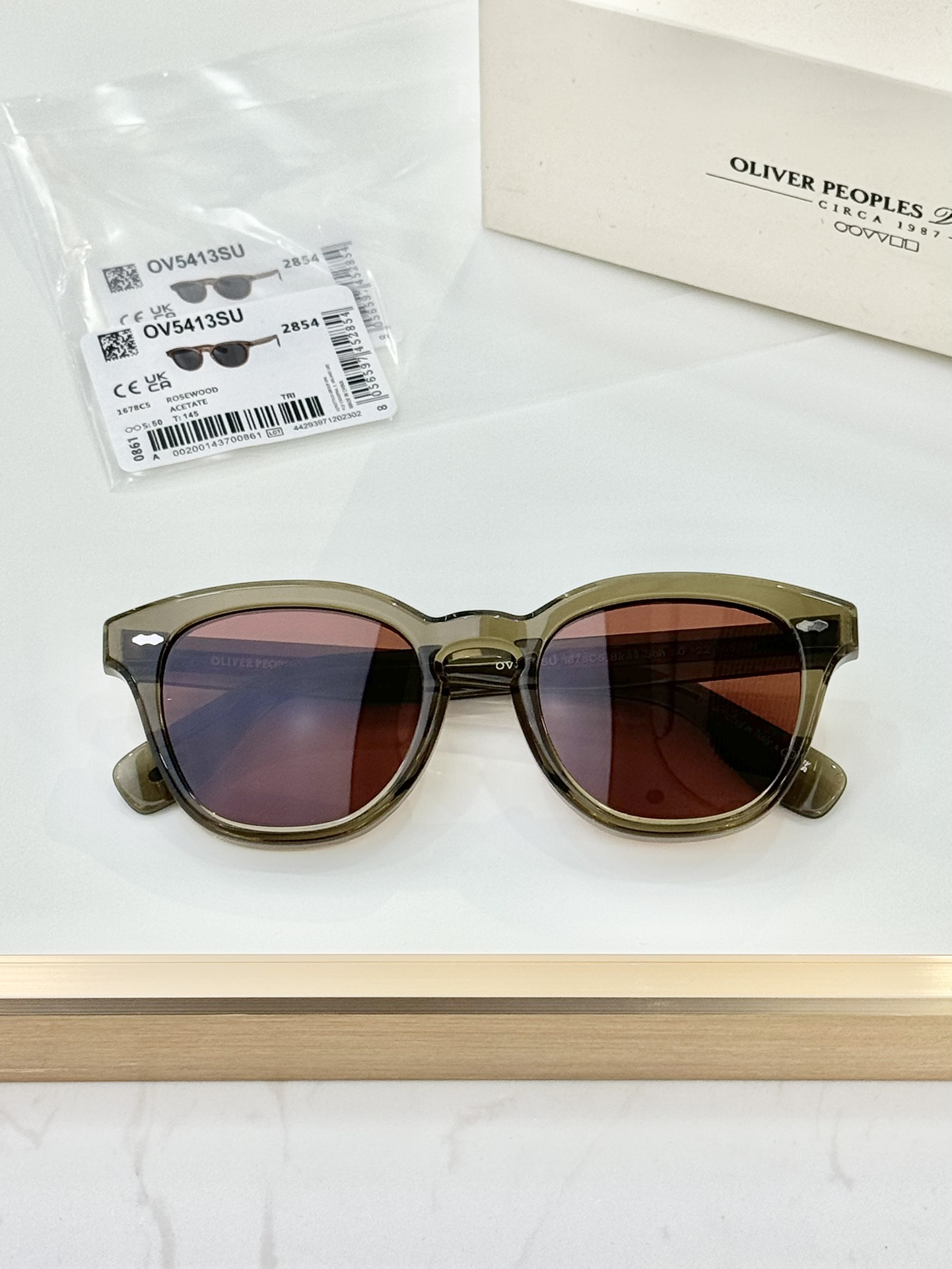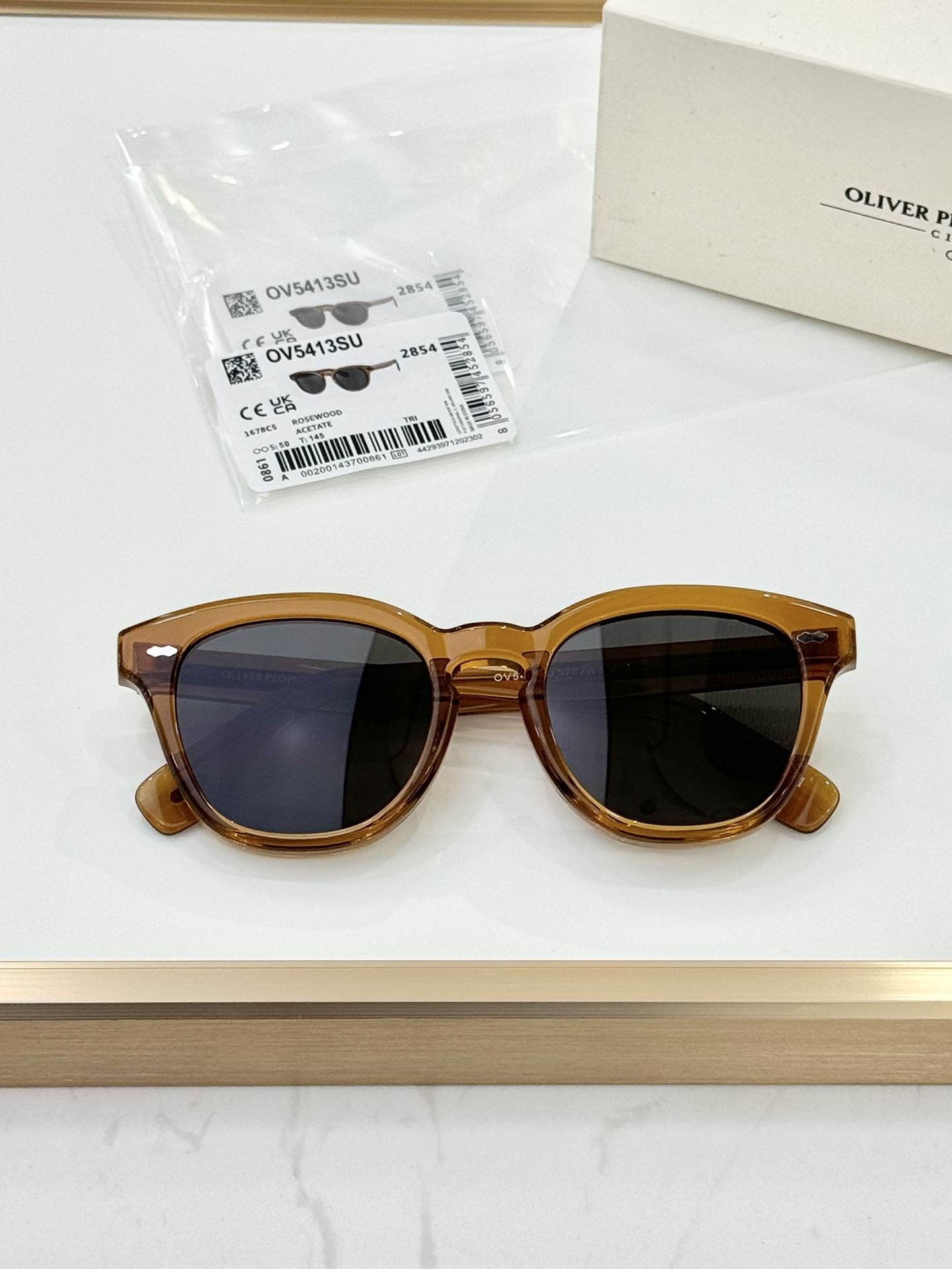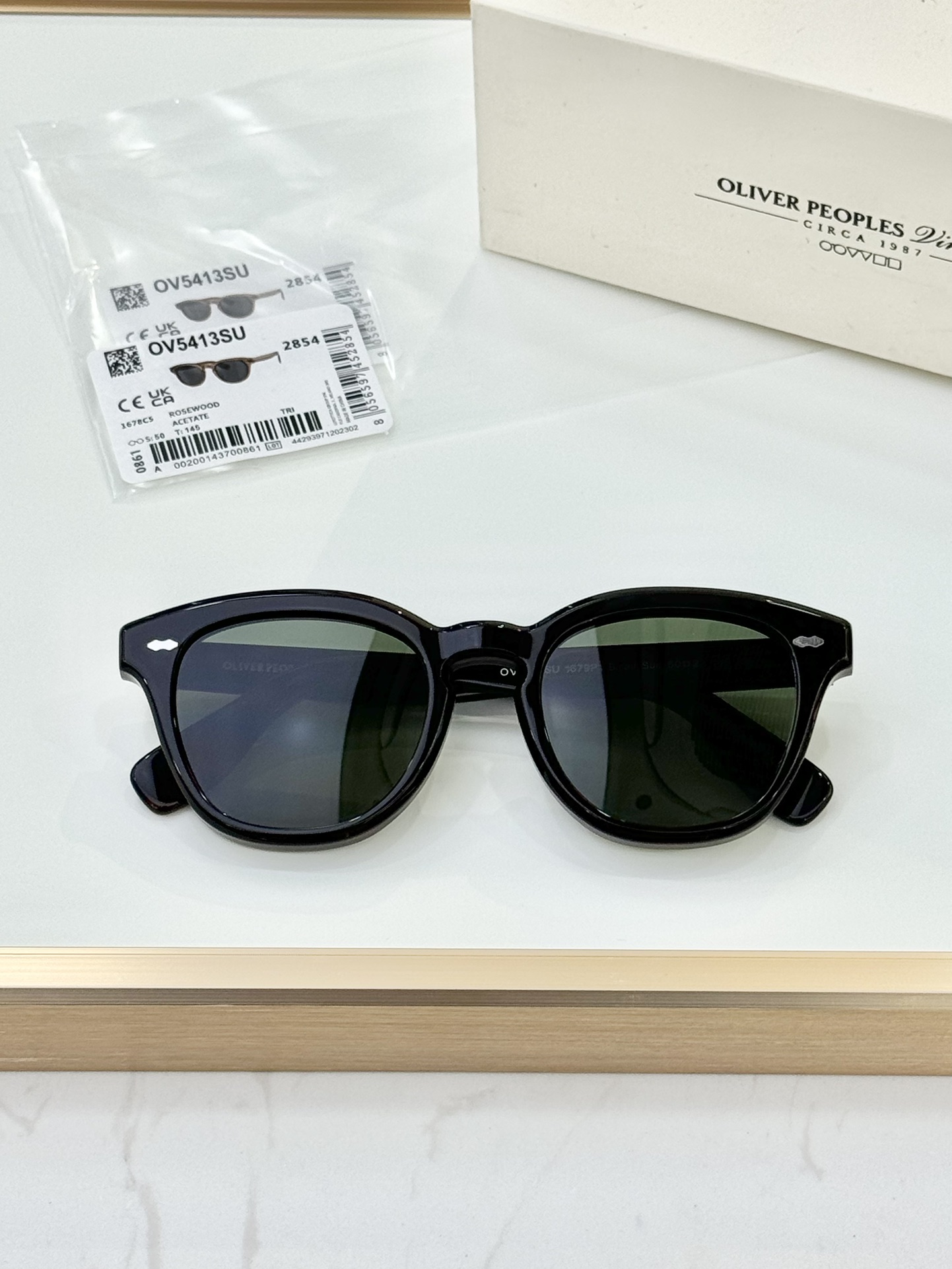 这款太阳眼镜是AAAAA 1:1 质量 (非常棒). 使用了和原版一模一样的材料. 商标部分也保持了和OLIVER PEOPLES一样. 图片拍摄是实物太阳眼镜拍摄, 您所收到的实物保证和我们图片一模一样.