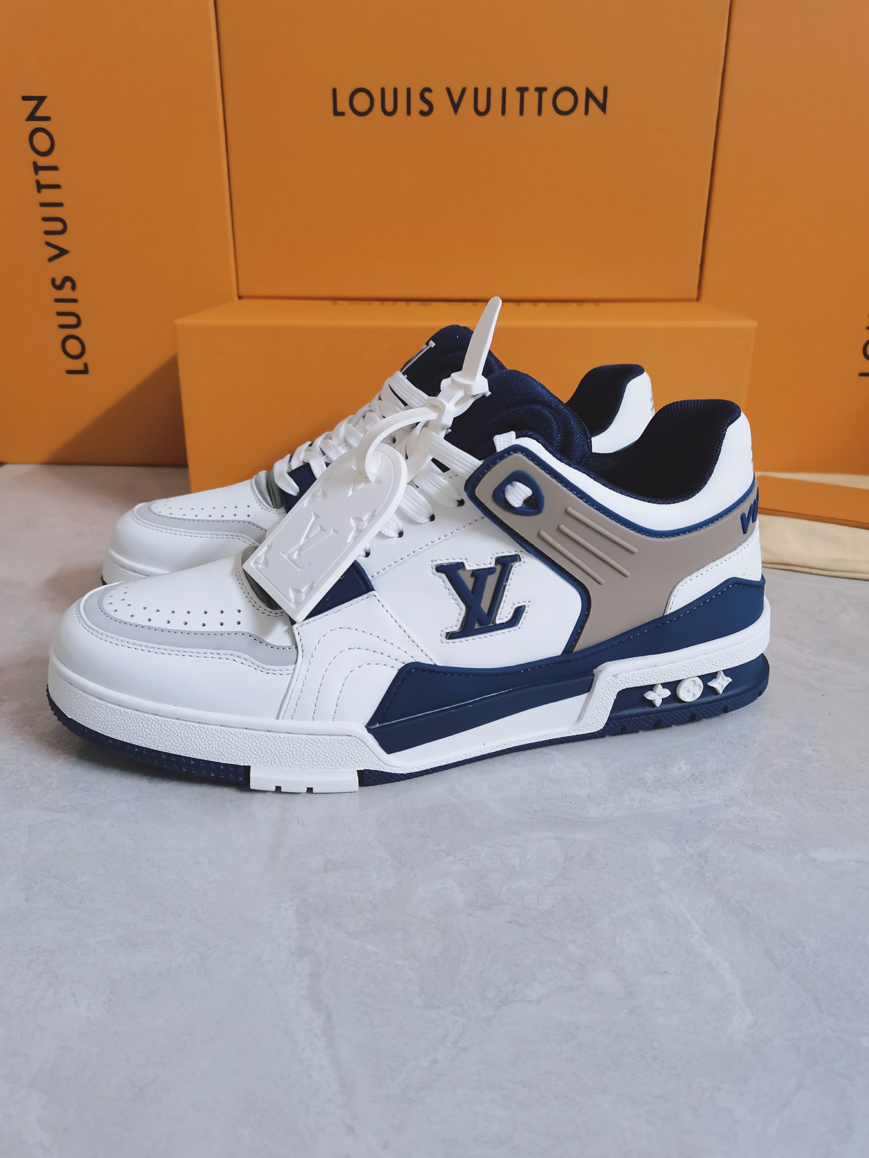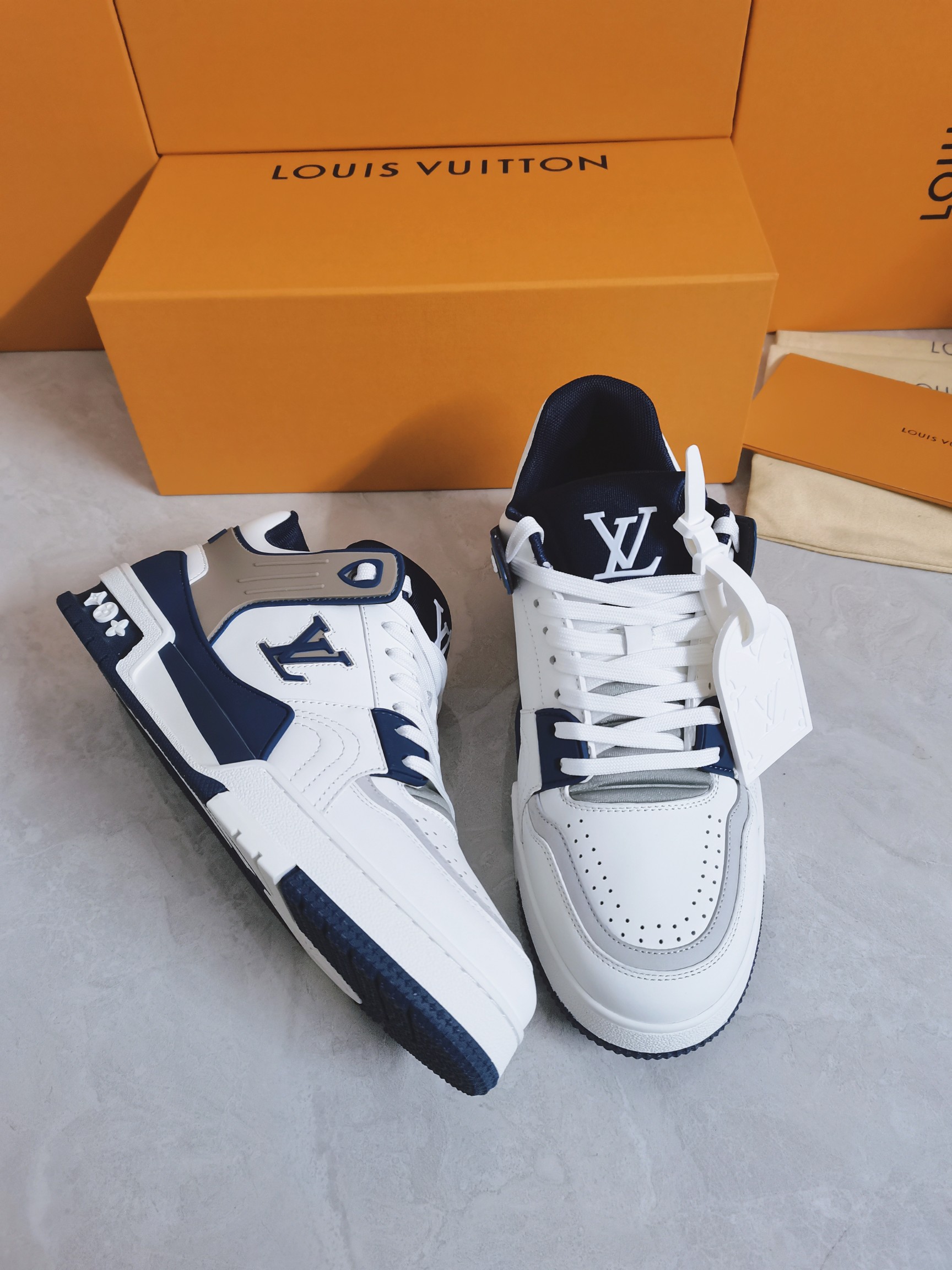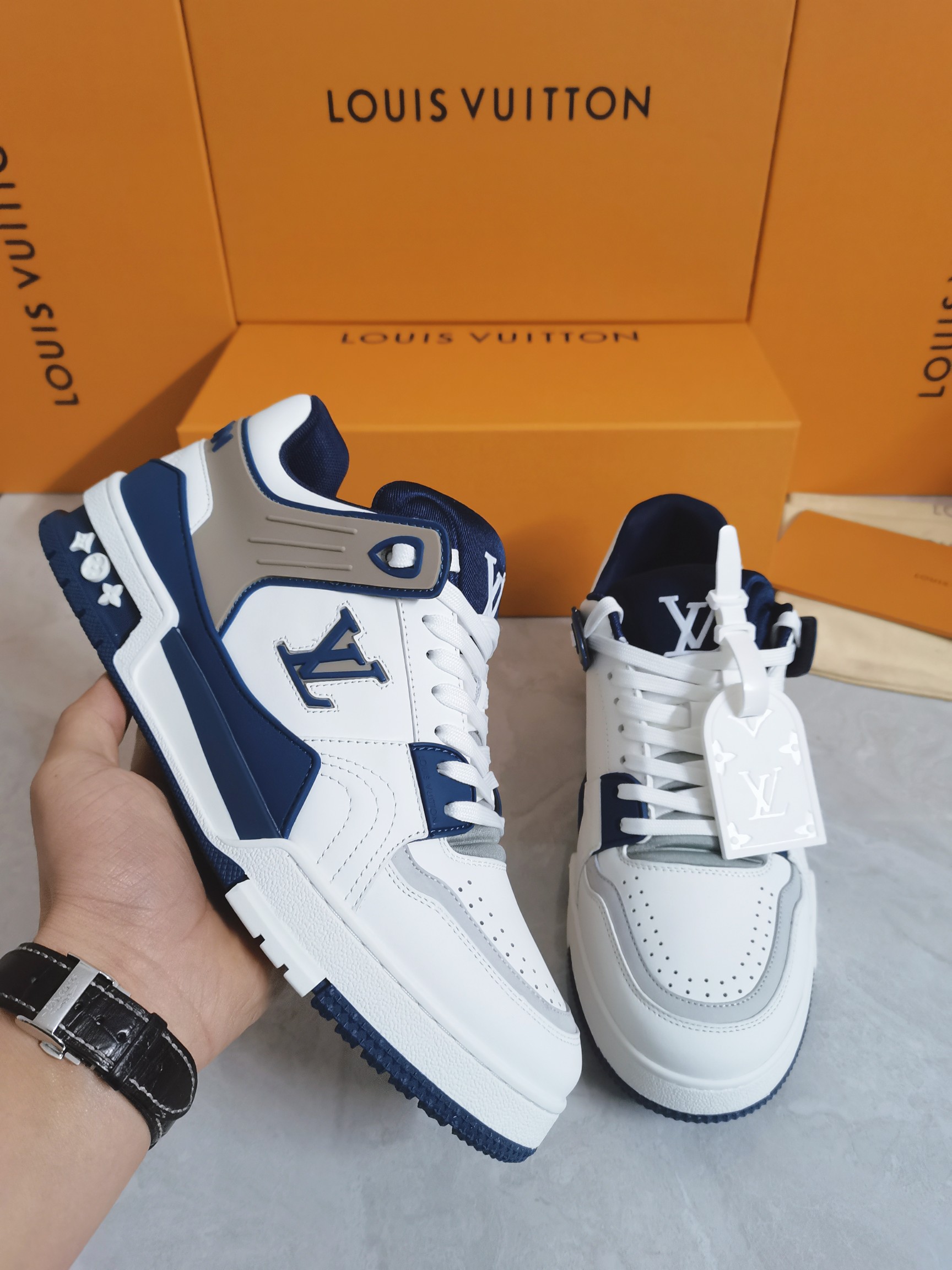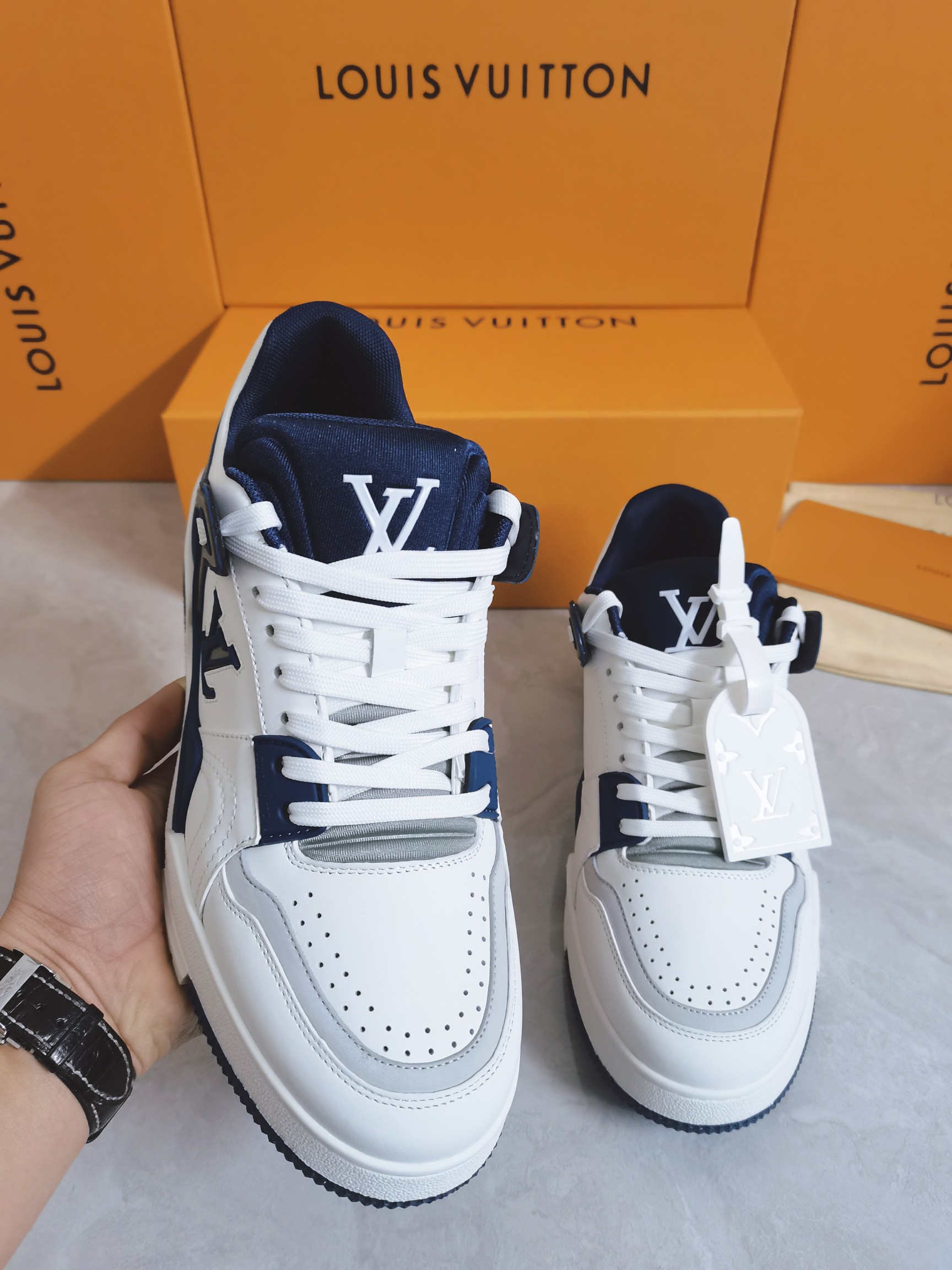 这款鞋子是AAAAA 1:1 质量 (非常棒). 使用了和原版一模一样的材料. 商标部分也保持了和路易威登/Louis Vuitton一样. 图片拍摄是实物鞋子拍摄, 您所收到的实物保证和我们图片一模一样.
