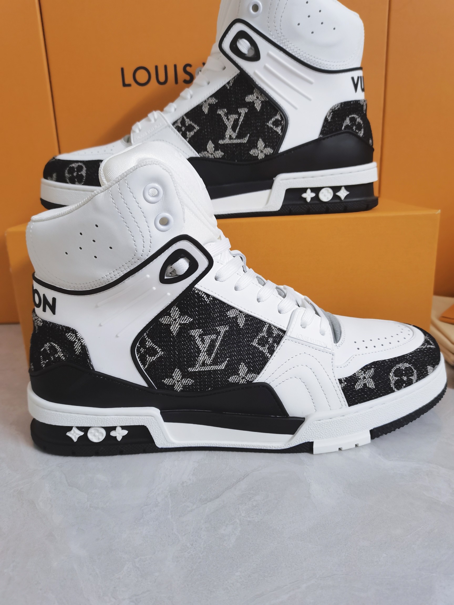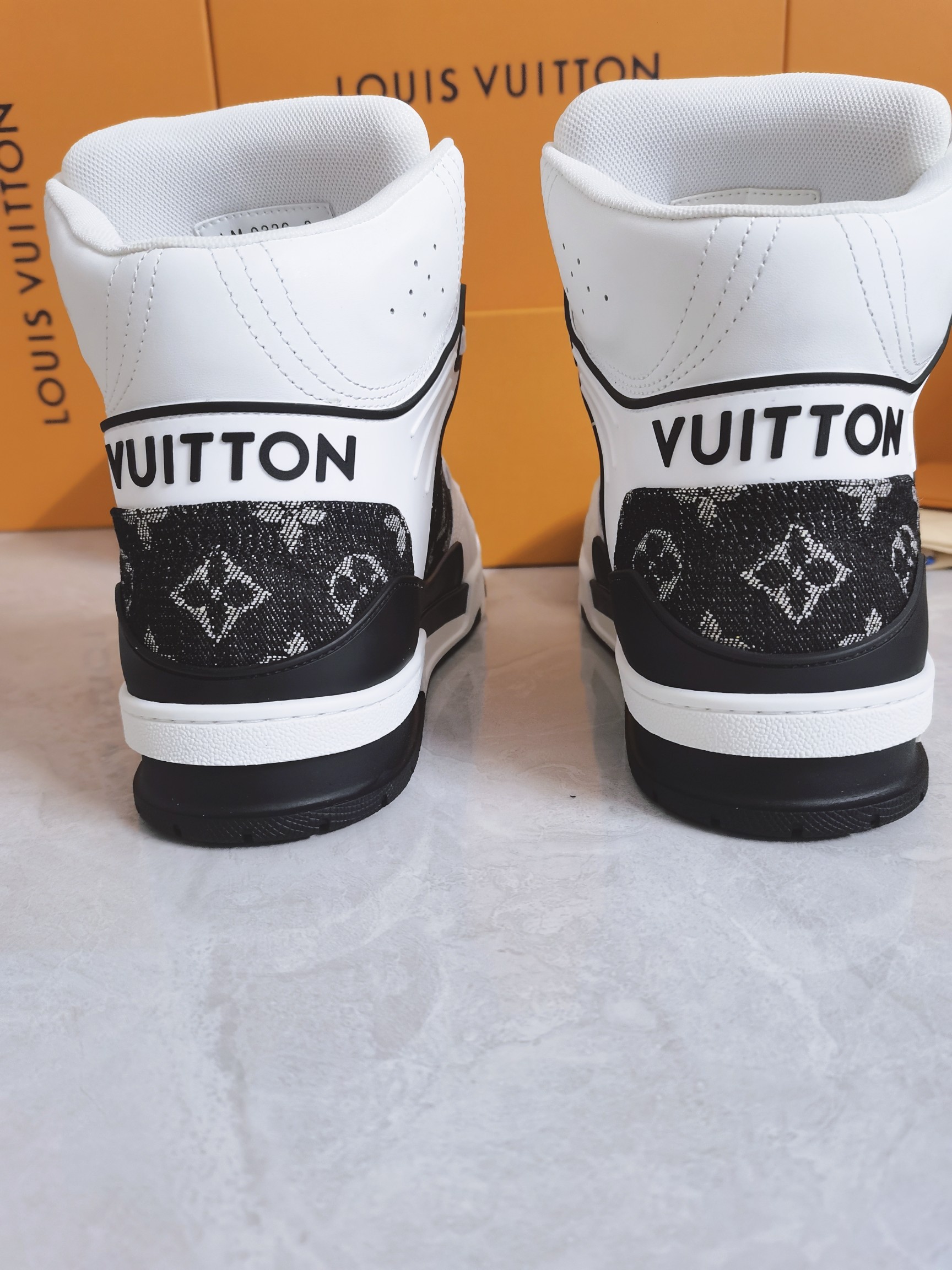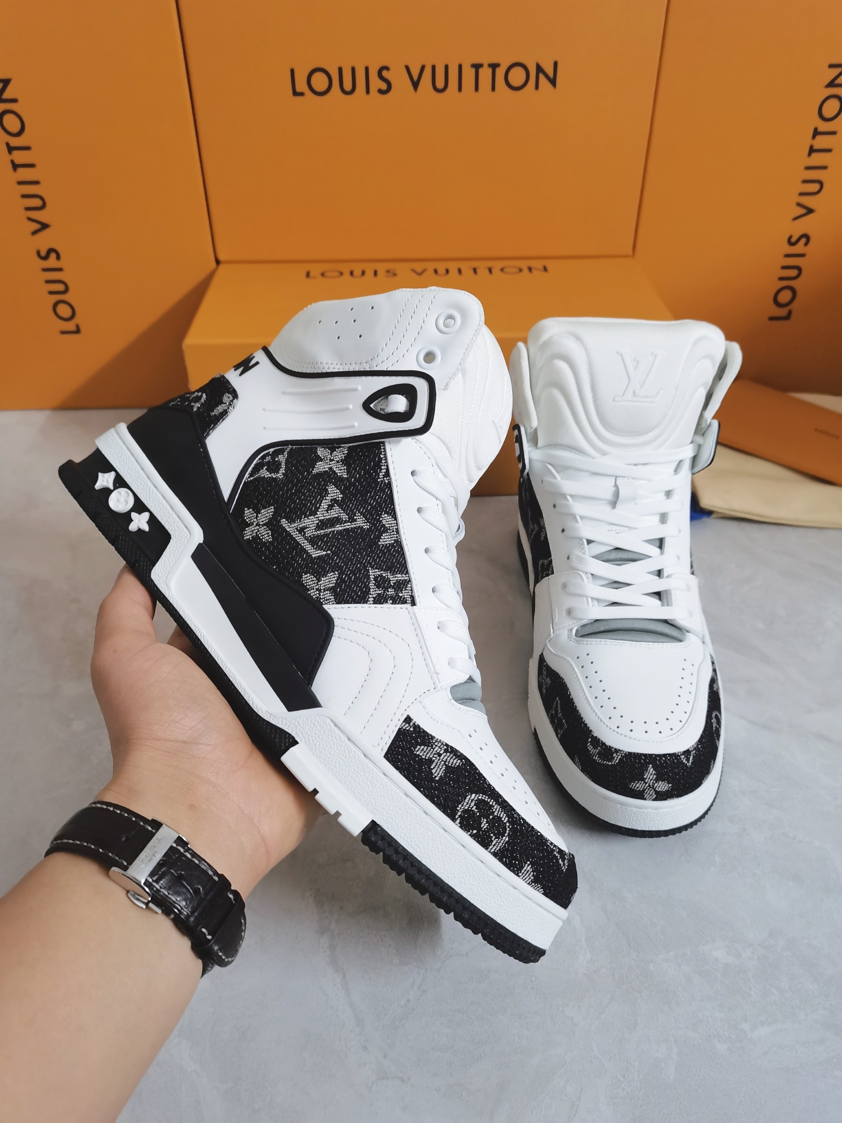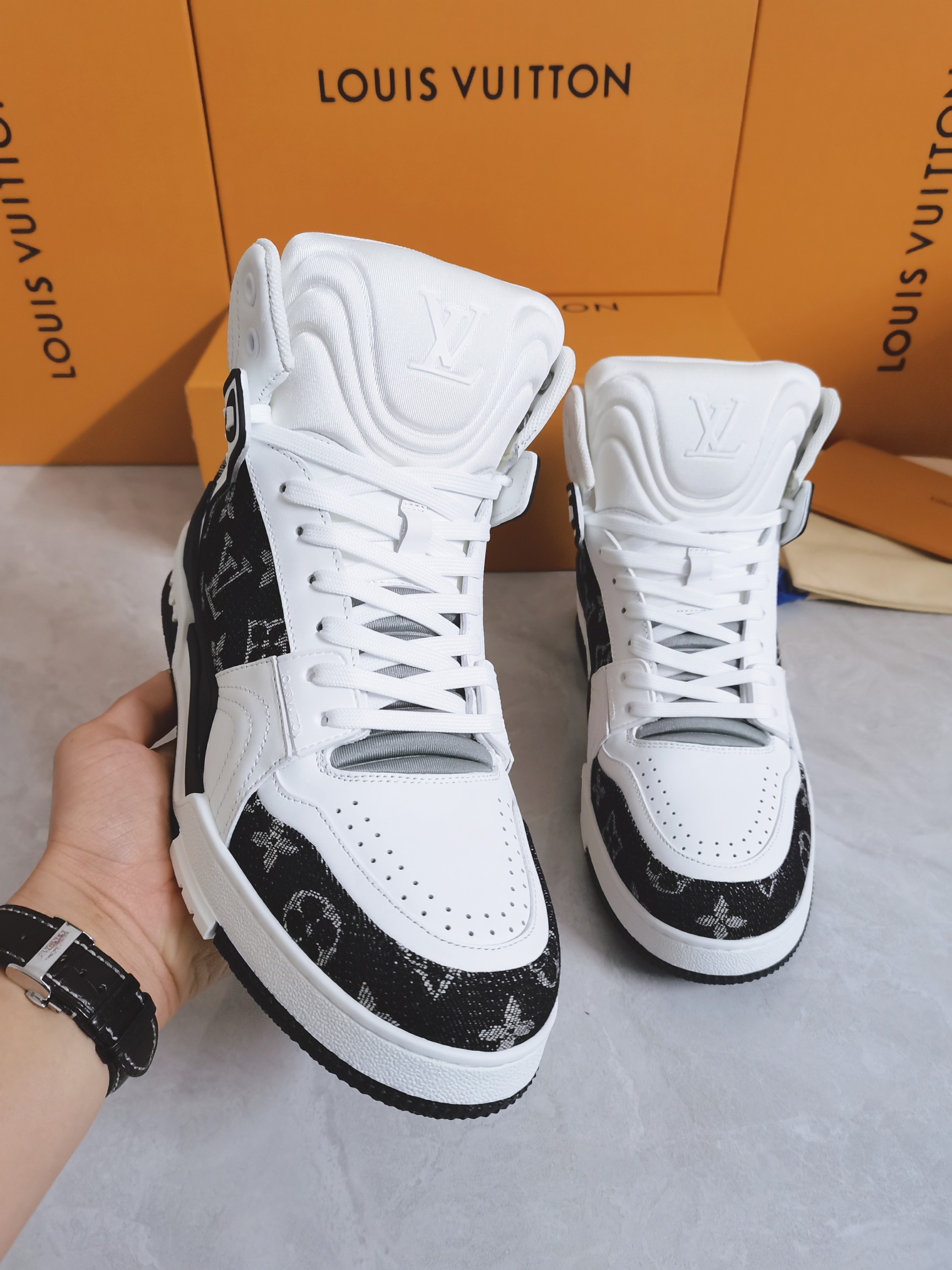 这款鞋子是AAAAA 1:1 质量 (非常棒). 使用了和原版一模一样的材料. 商标部分也保持了和路易威登/Louis Vuitton一样. 图片拍摄是实物鞋子拍摄, 您所收到的实物保证和我们图片一模一样.