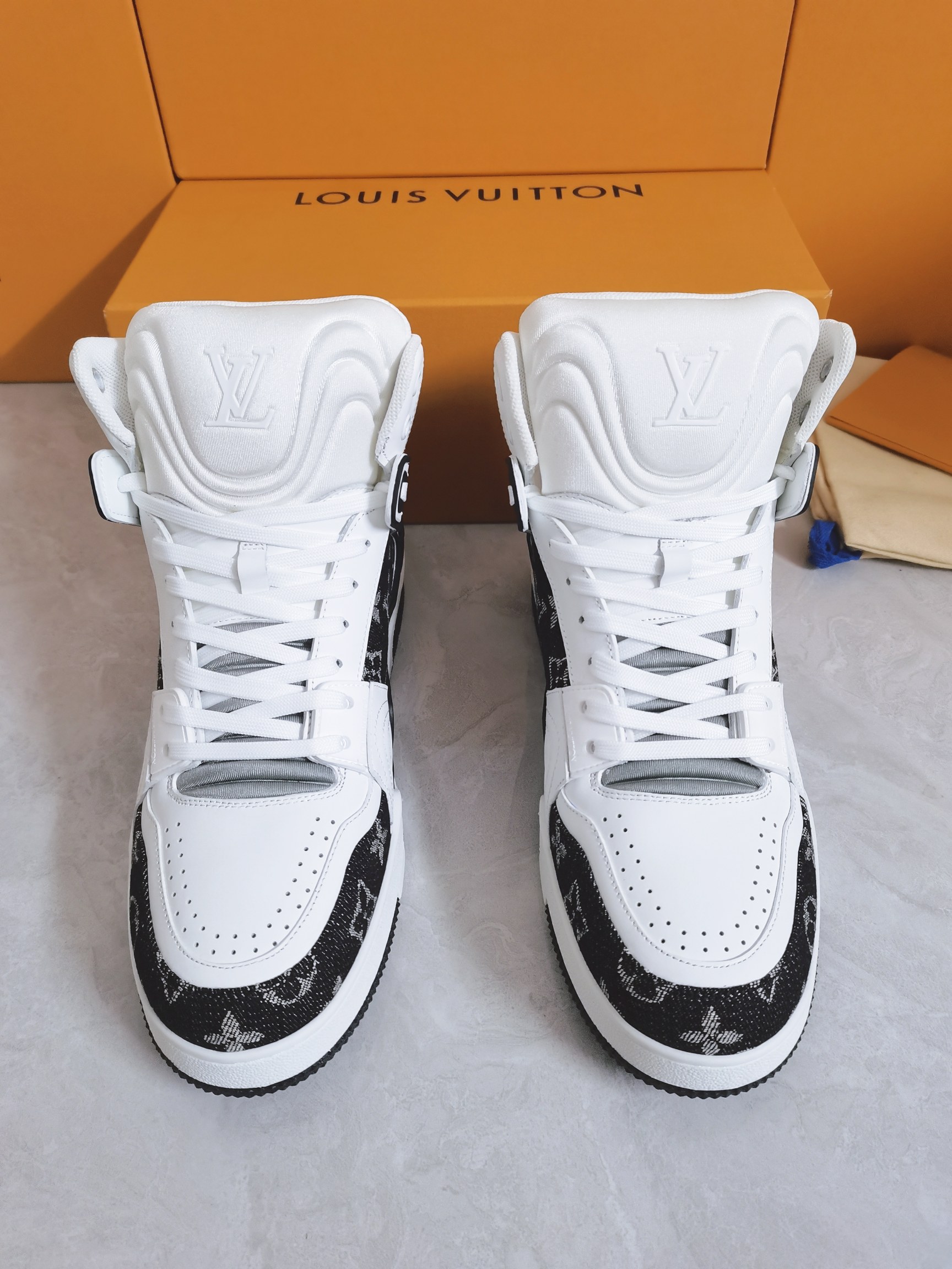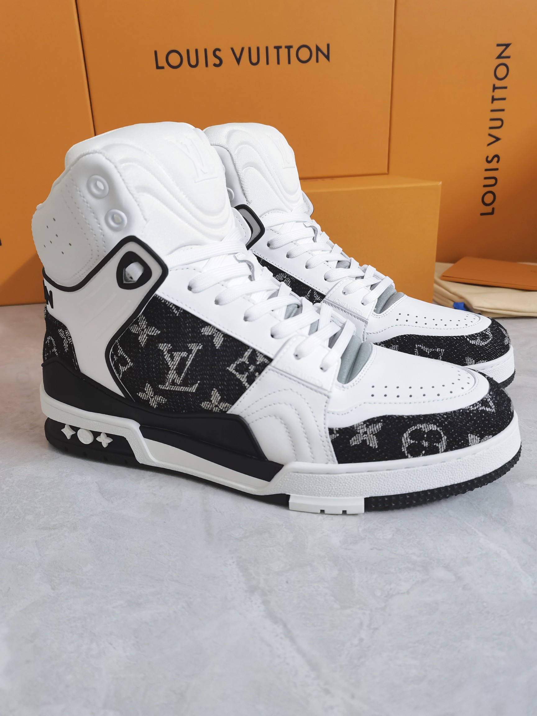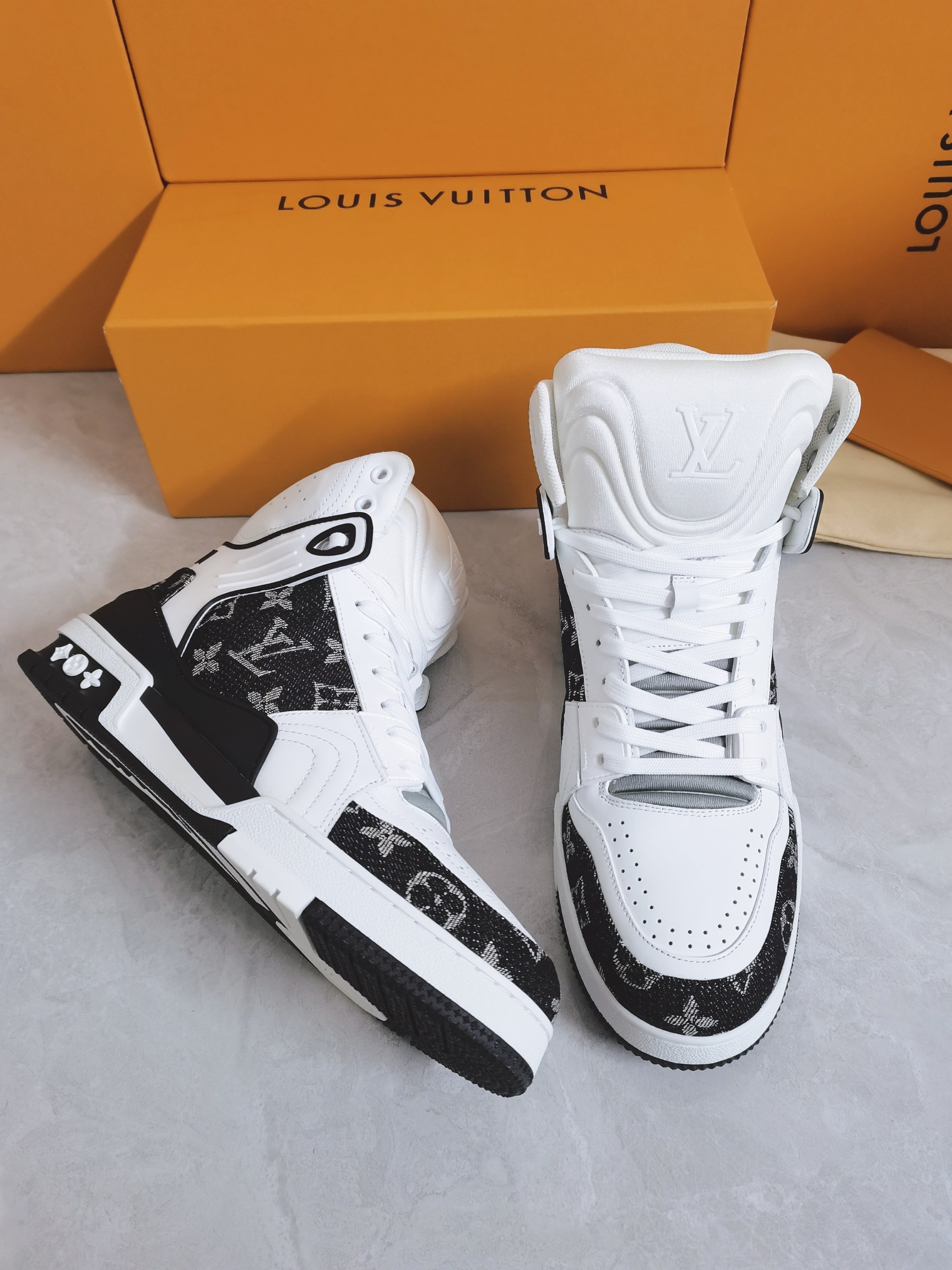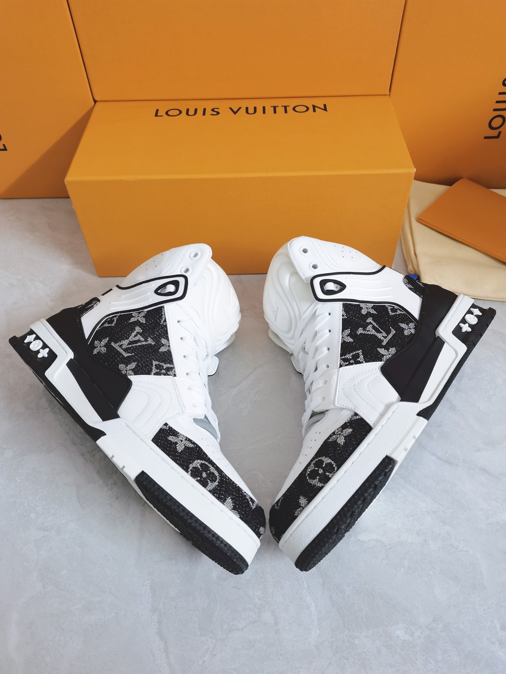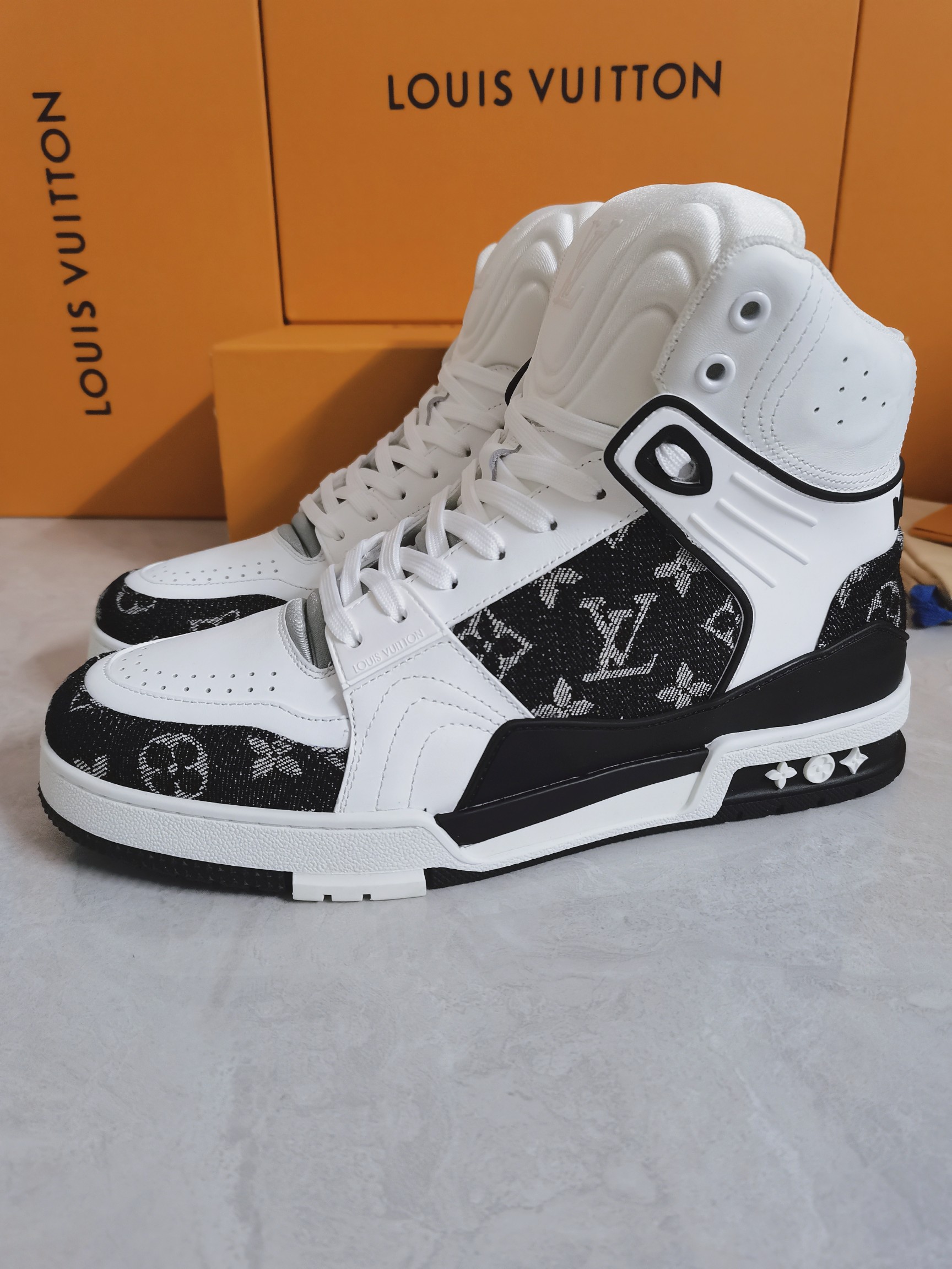 这款鞋子是AAAAA 1:1 质量 (非常棒). 使用了和原版一模一样的材料. 商标部分也保持了和路易威登/Louis Vuitton一样. 图片拍摄是实物鞋子拍摄, 您所收到的实物保证和我们图片一模一样.