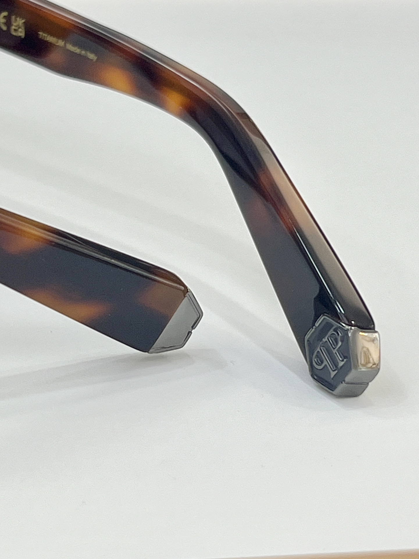 这款太阳眼镜是AAAAA 1:1 质量 (非常棒). 使用了和原版一模一样的材料. 商标部分也保持了和菲利普·普林/Philipp Plein一样. 图片拍摄是实物太阳眼镜拍摄, 您所收到的实物保证和我们图片一模一样.