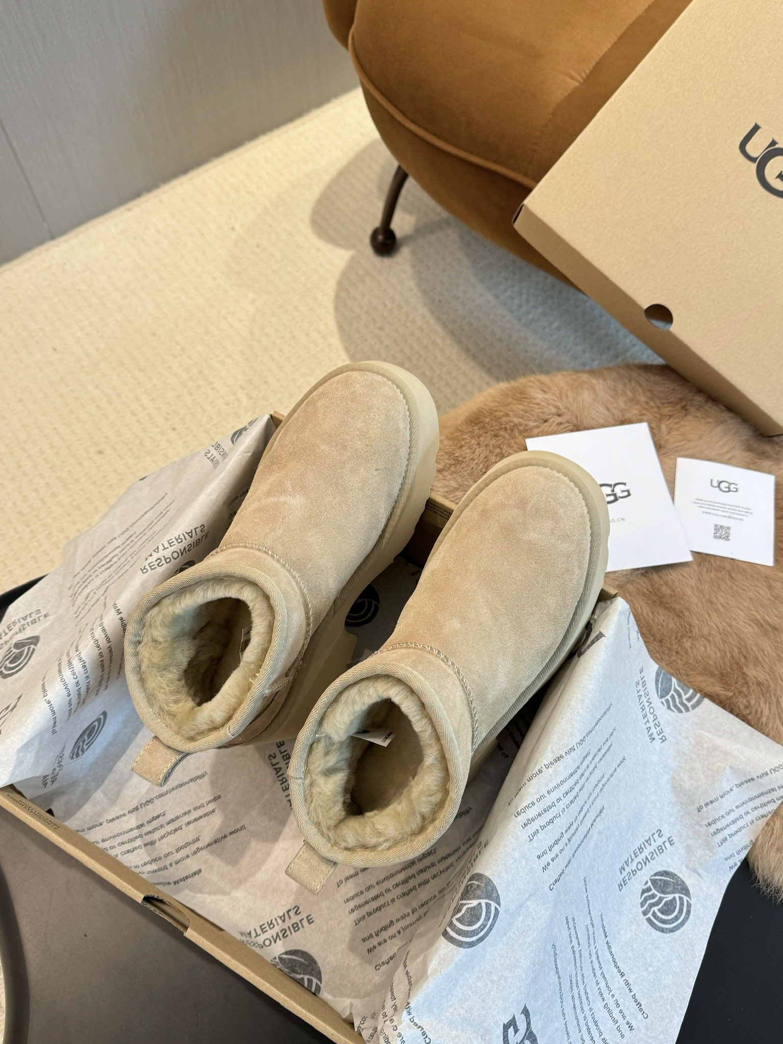 这款鞋子是AAAAA 1:1 质量 (非常棒). 使用了和原版一模一样的材料. 商标部分也保持了和UGG雪地靴一样. 图片拍摄是实物鞋子拍摄, 您所收到的实物保证和我们图片一模一样.