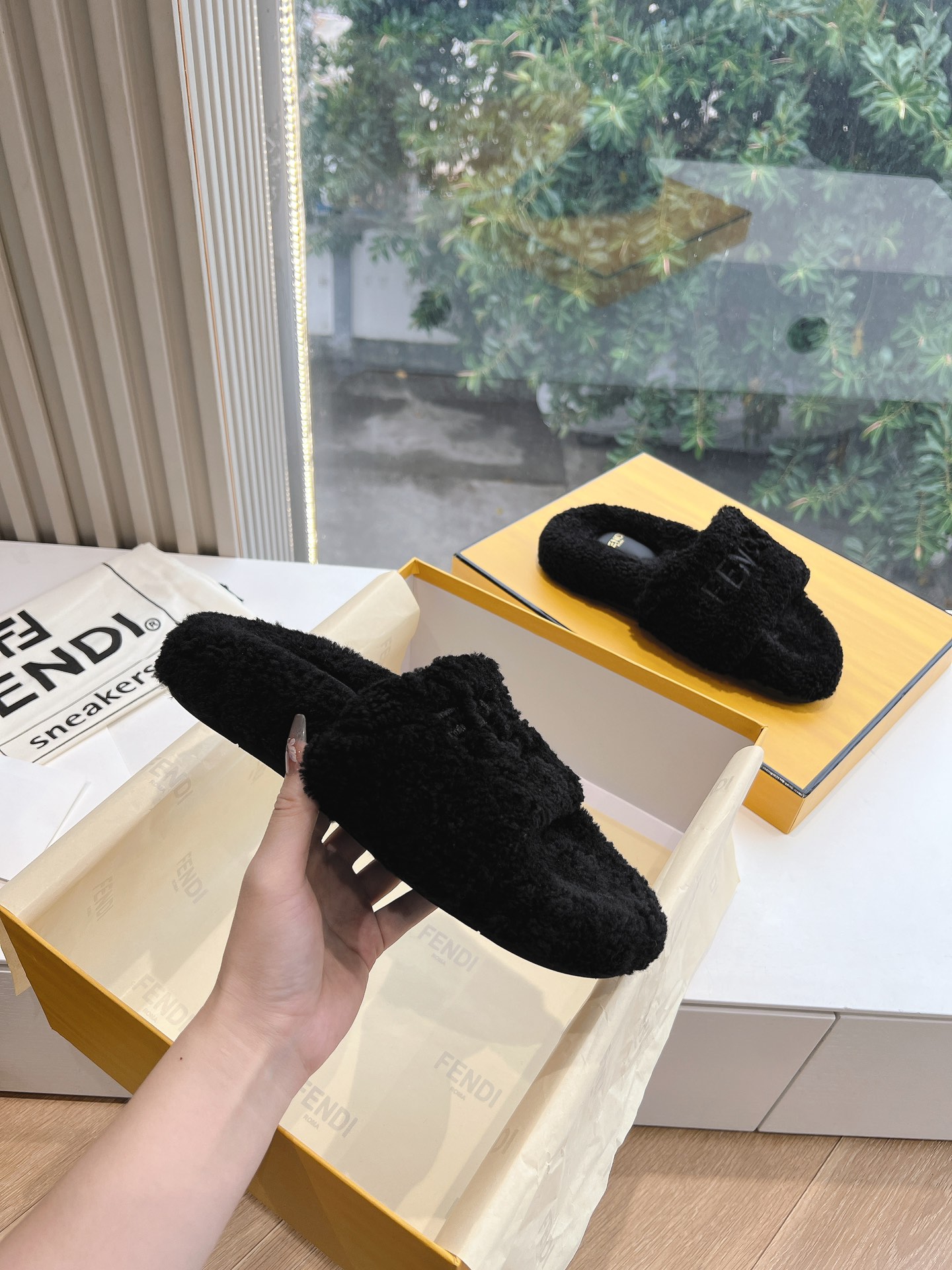 这款鞋子是AAAAA 1:1 质量 (非常棒). 使用了和原版一模一样的材料. 商标部分也保持了和芬迪/Fendi一样. 图片拍摄是实物鞋子拍摄, 您所收到的实物保证和我们图片一模一样.
